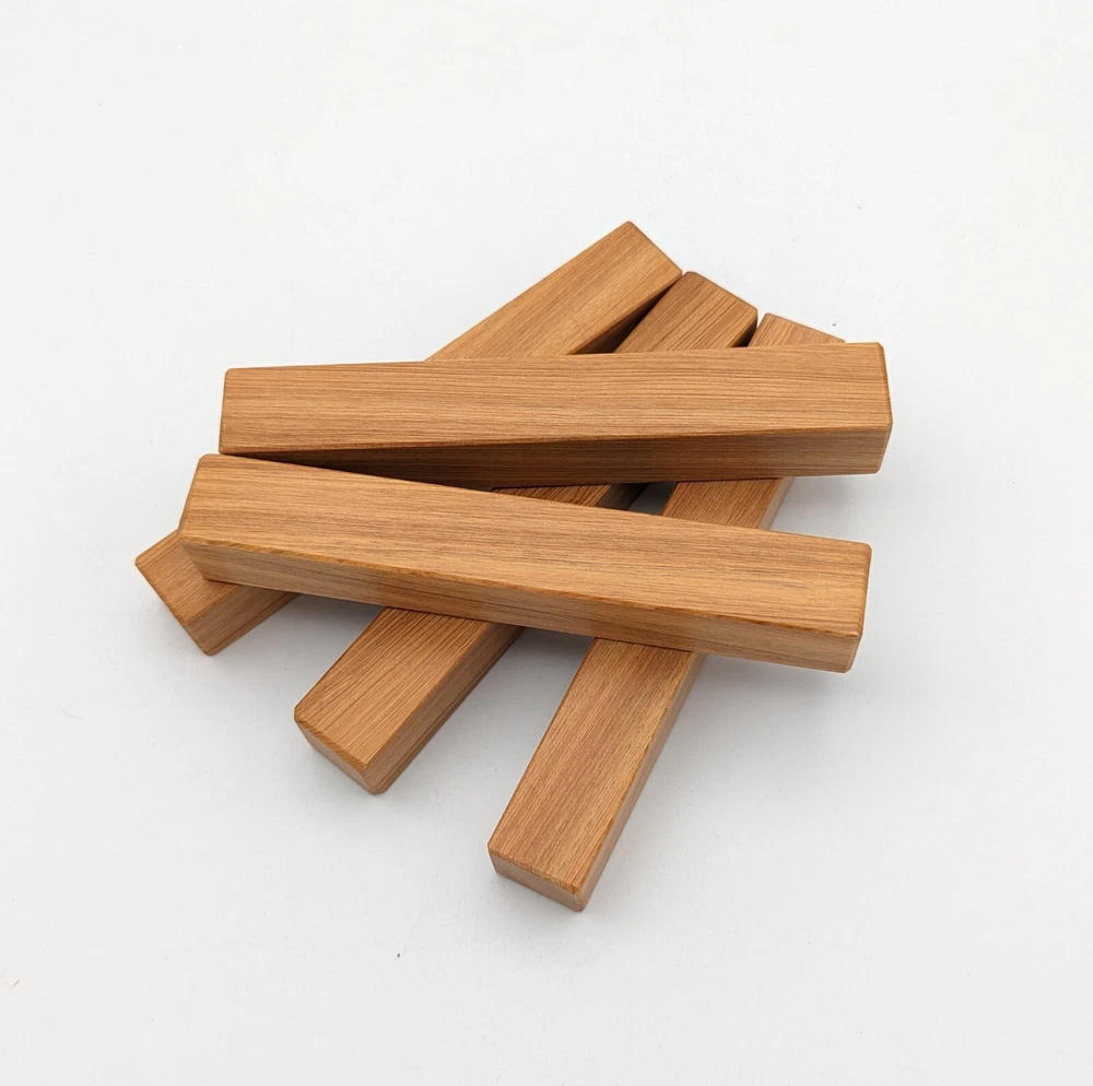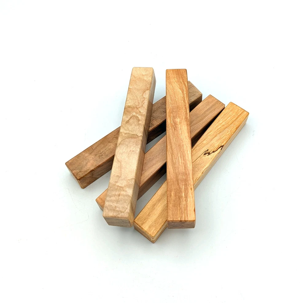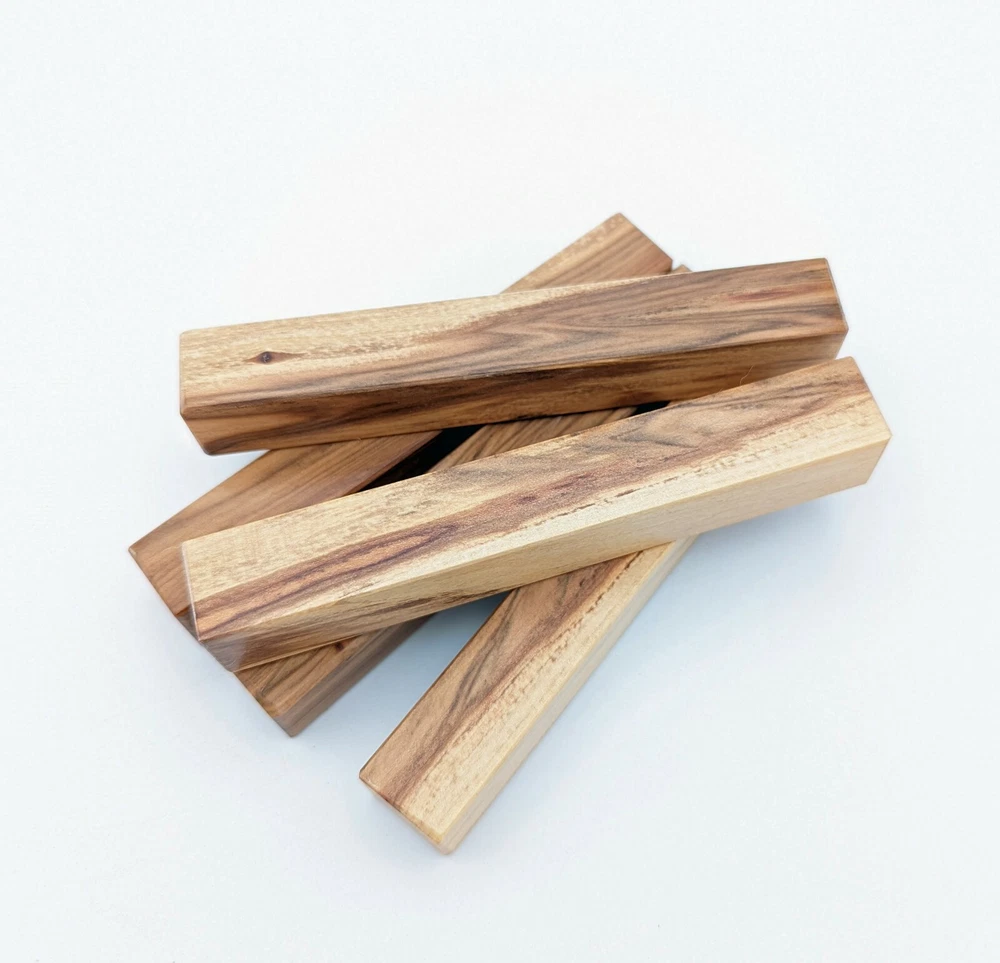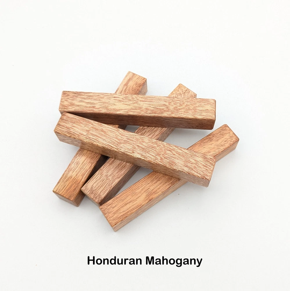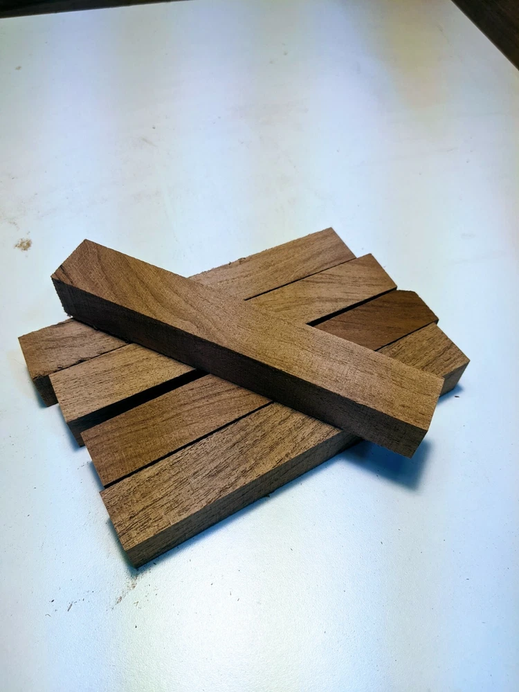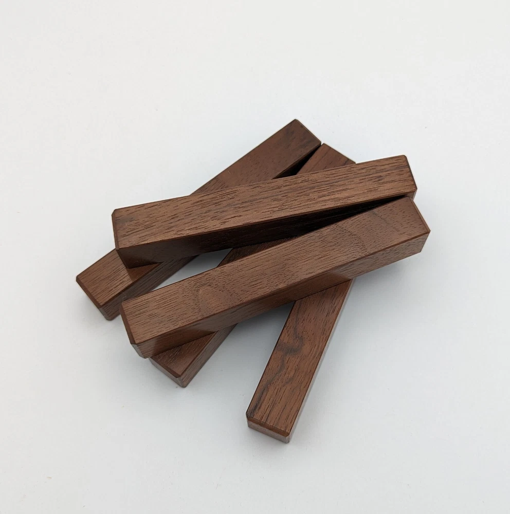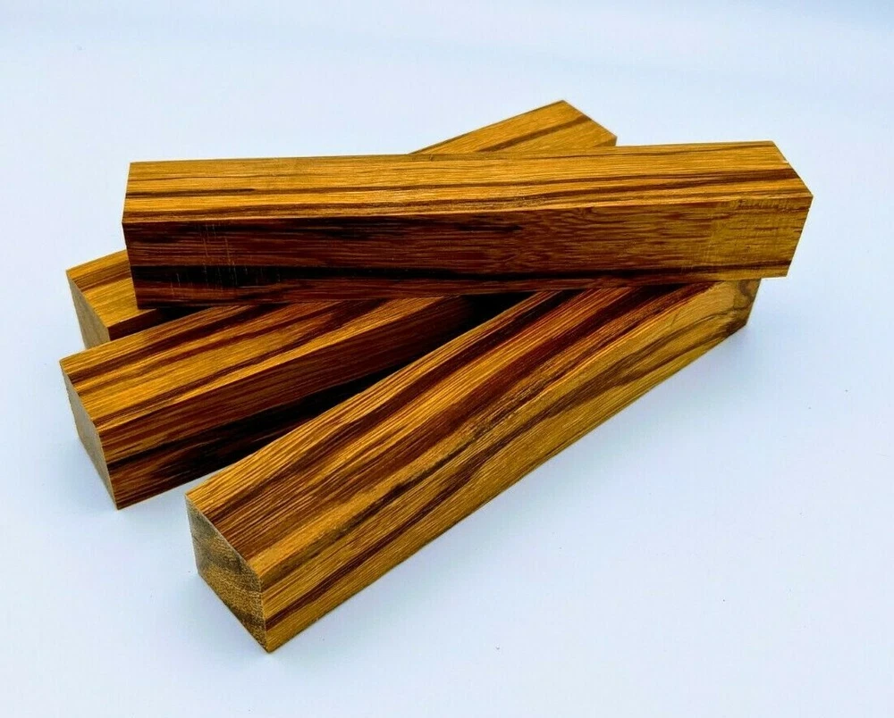Choose the species from the drop-down. Why long blanks? Think about it. How much waste do you generally have using a single 5" blank for a single pen? When turning pens, I almost always cut the blanks 10" so that I can get 3 pens from a single blank. I'm now offering them to you! Price is for a single blank. Shipping starts at $4.99. The photos are from stock I cut, sanded to 320, then buffed with the Beall system. The blanks in the photos are for reference only. The items for sale are generally from the same stock. Measurements are approximate and may vary by +/- 1/8" Some blanks may contain inclusions and voids. Since I cut these myself, other sizes are available. Please message me if you desire another size or shape. If you would like to consider a bulk purchase, please contact me. Here is a list of our available species: Argentine Lignum Vitae: Extremely dense and durable, perfect for crafting high-end, long-lasting pen blanks. Ash - Black: Strong grain pattern, offers a bold and striking appearance for pen blanks. Ash - French: Tight grain with a subtle appearance, great for creating classic and elegant pens. Ash - White: Light color with fine texture, ideal for a clean and polished pen finish. Beli: Distinctive striping, adds visual interest and an exotic look to pen blanks. Bhilwara: Dense and durable with rich hues, suitable for creating long-lasting and visually appealing pens. Birch - African Bog: Dark, aged wood, creates a unique, antique feel for pens with a touch of history. Birch, Caramelized: Warm tones and smooth texture, perfect for crafting elegant and refined pens. Birch - Curly: Beautiful figuring adds dynamic visual movement, making pen blanks stand out. Bloodwood: Deep red color, offers a dramatic and luxurious look for striking pen blanks. Bocote: Eye-catching grain patterns, ideal for creating stunning and exotic pen designs. Boxwood - Castello: Fine-grained and pale, perfect for intricate and detailed pen work. Brazilian Blackheart (Pau Santo): Rich, dark tones, ideal for creating sophisticated and sleek pen blanks. Brazilian Tigerwood: Bold striping, adds a wild and exotic appearance to pen blanks. Brownheart: Smooth texture with a warm hue, perfect for creating understated and elegant pens. Bubinga: Reddish-brown with fine figuring, adds a touch of luxury to pen designs. Bubinga - Figured: Highly figured, making for eye-catching and intricate pen blanks. Camel Thorn: Dense and hard, offers durability with a striking red hue, perfect for long-lasting pens. Canarywood: Bright yellow with red streaks, creates vibrant and lively pen blanks. Catalpa: Light and easy to work with, great for beginners and natural finishes in pen crafting. Cerejeira: Fine texture with a golden hue, offers a classic and refined look for pen blanks. Cerejeira - Crotchwood: Intricate crotch figuring, ideal for creating unique and eye-catching pens. Ceylon Satinwood: Golden sheen with a fine texture, perfect for high-end and luxurious pens. Chakte Viga (Paela): Bright orange with fine grain, creates bold and distinctive pen blanks. Cherry: Warm red tones, classic and popular choice for crafting all types of pens. Cherry - Figured: Dynamic figuring enhances the traditional look, adding depth to cherry wood pens. Cocobolo: Rich color with striking patterns, ideal for crafting luxurious and durable pens. Crepe Myrtle (Pyinma): Fine grain with a warm hue, perfect for detailed and smooth pen work. Crepe Myrtle (Pyinma) - XG: Extra-figured, offers enhanced visual depth and complexity to pens. Ebiara (Red Zebrawood): Striped appearance, perfect for creating exotic and vibrant pen blanks. Ebony, Bolivian (Coffeewood): Dark and dense, ideal for sleek, sophisticated pen designs. Ebony - Brazilian (Gombeira): Deep black color with a smooth texture, excellent for premium pen blanks. Elm: Attractive grain and medium hardness, perfect for creating classic and durable pens. Etimoe: Reddish-brown with a tight grain, adds subtle elegance and richness to pen blanks. Granadillo: Reddish-brown with a fine texture, excellent for detailed and durable pen designs. Granadillo - Figured: Enhanced figuring adds visual interest and depth to Granadillo pen blanks. Hackberry: Light-colored with subtle grain, ideal for custom finishes and versatile pen designs. Hackberry - Spalted: Unique spalting patterns, creates stunning and one-of-a-kind pen blanks. Hickory (reclaimed): Strong and durable with a rustic appearance, perfect for crafting rugged pens. Holly: Bright white, perfect for creating contrasting or detailed work in pens. Imbuia: Rich, dark wood with a pleasant aroma, ideal for creating elegant and luxurious pens. Ipe: Extremely dense and durable, great for crafting heavy-use and long-lasting pens. Ironwood - Moluccan: Incredibly hard with a deep brown color, perfect for creating durable and long-lasting pens. Itauba: Golden-brown with a smooth texture, ideal for creating warm and elegant pen blanks. Jarrah: Reddish with a rich grain, great for classic and refined pen designs. Jatoba (Brazilian Cherry): Extremely hard with a deep red hue, perfect for high-durability and striking pen blanks. Kentucky Coffee Tree: Light color with a fine grain, ideal for easy finishing and classic pen designs. Kiaat (Muninga): Attractive golden-brown with interlocking grain, adds character to pen blanks. Koa: Rich color with fine figuring, perfect for creating beautiful, high-end pens. Lacewood: Distinctive flecked grain, ideal for crafting eye-catching and textured pen blanks. Leopardwood: Spotted appearance, perfect for creating unique and striking pen designs. Limba - White: Light-colored wood with a subtle grain, perfect for creating clean and minimalist pens. Locust - Honey: Warm golden hue, ideal for creating pens with a rustic and natural charm. Louro Preto: Dark, rich wood with fine texture, perfect for creating elegant and polished pens. Louro Preto - Figured (wormy): Unique figuring adds character and depth to Louro Pret