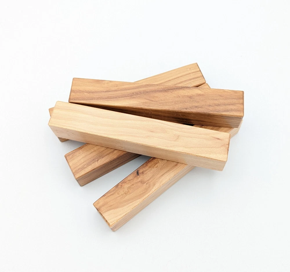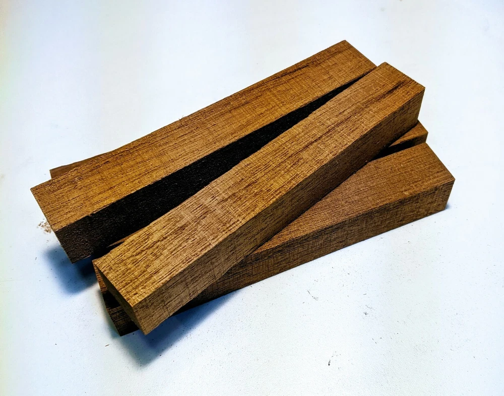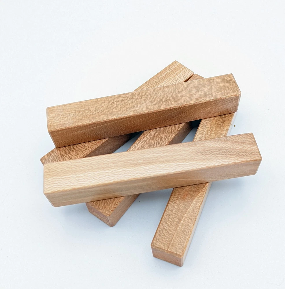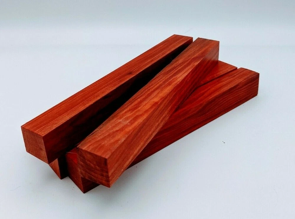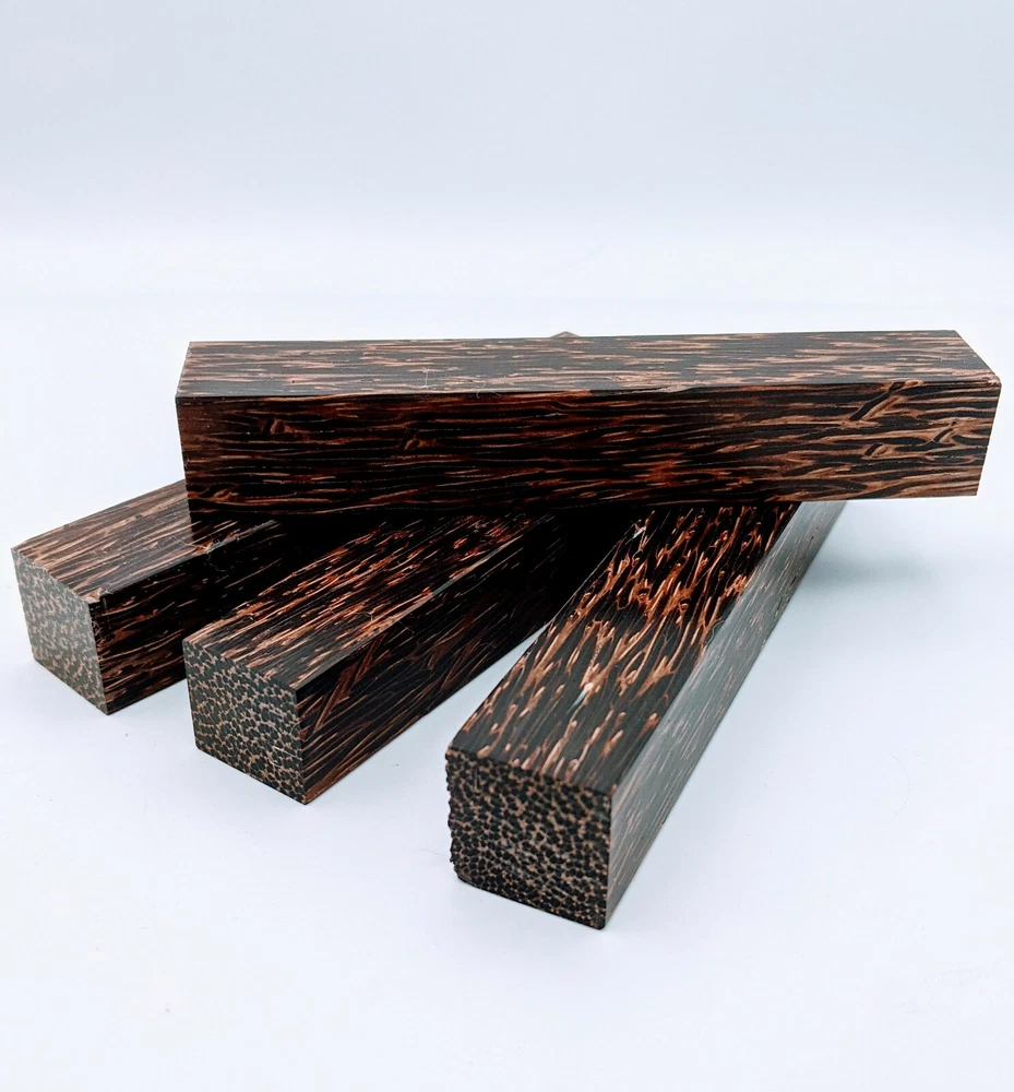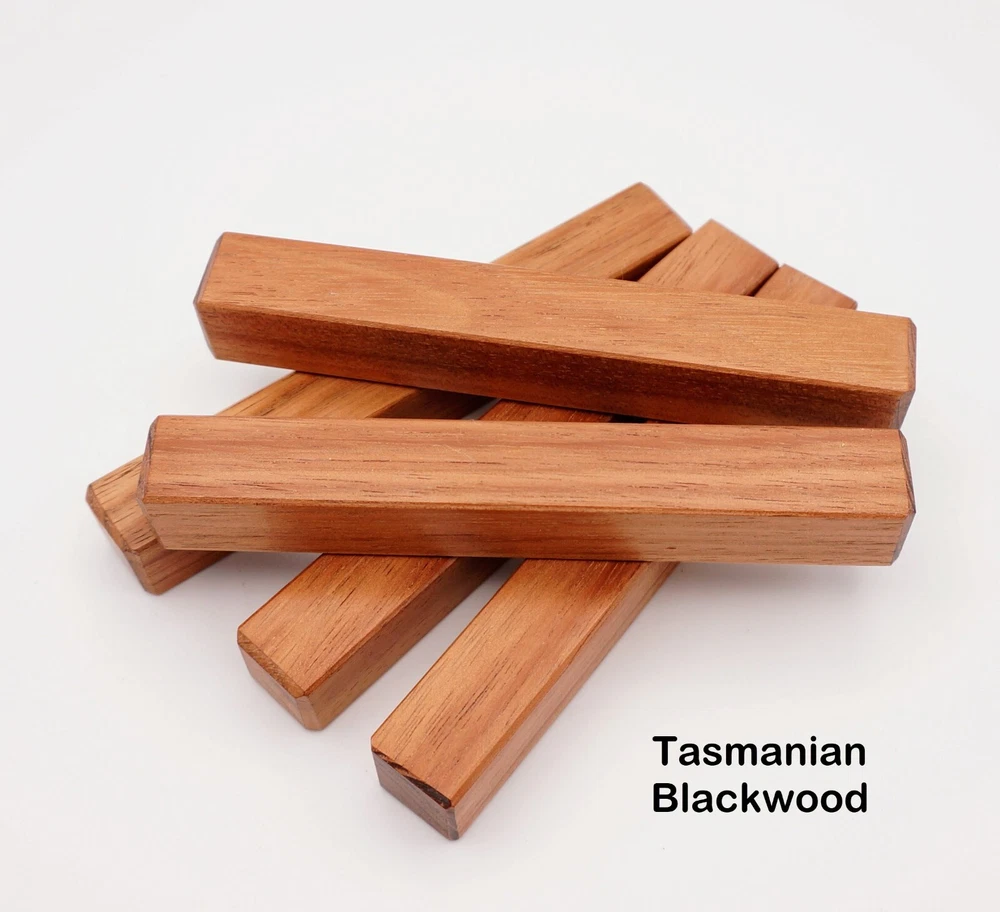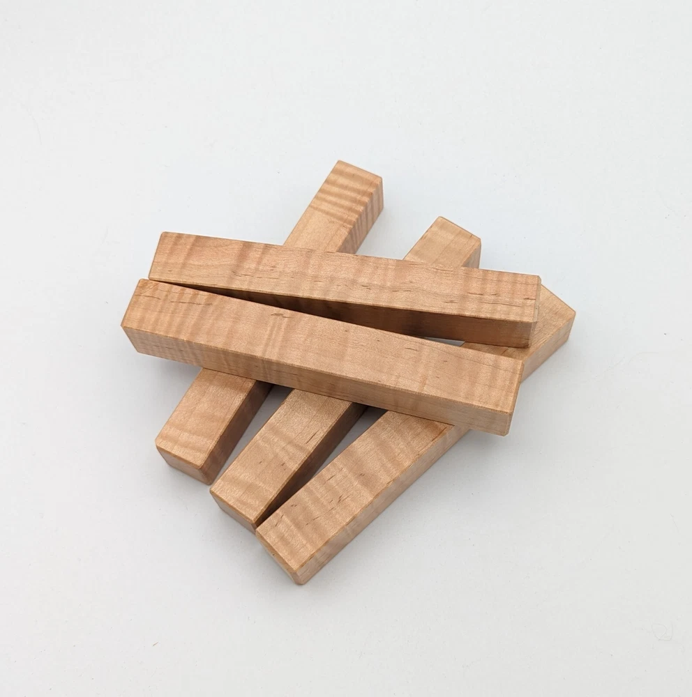 Choose the species from the drop-down. Why long blanks? Think about it. How much waste do you generally have using a single 5" blank for a single pen? When turning pens, I almost always cut the blanks 10" so that I can get 3 pens from a single blank. I'm now offering them to you! Price is for a single blank. Shipping starts at $4.99. The photos are from stock I cut, sanded to 320, then buffed with the Beall system. The blanks in the photos are for reference only. The items for sale are generally from the same stock. Measurements are approximate and may vary by +/- 1/8" Some blanks may contain inclusions and voids. Since I cut these myself, other sizes are available. Please message me if you desire another size or shape. If you would like to consider a bulk purchase, please contact me. Here is a list of our available species: Argentine Lignum Vitae: Extremely dense and durable, perfect for crafting high-end, long-lasting pen blanks. Ash - Black: Strong grain pattern, offers a bold and striking appearance for pen blanks. Ash - French: Tight grain with a subtle appearance, great for creating classic and elegant pens. Ash - White: Light color with fine texture, ideal for a clean and polished pen finish. Beli: Distinctive striping, adds visual interest and an exotic look to pen blanks. Bhilwara: Dense and durable with rich hues, suitable for creating long-lasting and visually appealing pens. Birch - African Bog: Dark, aged wood, creates a unique, antique feel for pens with a touch of history. Birch, Caramelized: Warm tones and smooth texture, perfect for crafting elegant and refined pens. Birch - Curly: Beautiful figuring adds dynamic visual movement, making pen blanks stand out. Bloodwood: Deep red color, offers a dramatic and luxurious look for striking pen blanks. Bocote: Eye-catching grain patterns, ideal for creating stunning and exotic pen designs. Boxwood - Castello: Fine-grained and pale, perfect for intricate and detailed pen work. Brazilian Blackheart (Pau Santo): Rich, dark tones, ideal for creating sophisticated and sleek pen blanks. Brazilian Tigerwood: Bold striping, adds a wild and exotic appearance to pen blanks. Brownheart: Smooth texture with a warm hue, perfect for creating understated and elegant pens. Bubinga: Reddish-brown with fine figuring, adds a touch of luxury to pen designs. Bubinga - Figured: Highly figured, making for eye-catching and intricate pen blanks. Camel Thorn: Dense and hard, offers durability with a striking red hue, perfect for long-lasting pens. Canarywood: Bright yellow with red streaks, creates vibrant and lively pen blanks. Catalpa: Light and easy to work with, great for beginners and natural finishes in pen crafting. Cerejeira: Fine texture with a golden hue, offers a classic and refined look for pen blanks. Cerejeira - Crotchwood: Intricate crotch figuring, ideal for creating unique and eye-catching pens. Ceylon Satinwood: Golden sheen with a fine texture, perfect for high-end and luxurious pens. Chakte Viga (Paela): Bright orange with fine grain, creates bold and distinctive pen blanks. Cherry: Warm red tones, classic and popular choice for crafting all types of pens. Cherry - Figured: Dynamic figuring enhances the traditional look, adding depth to cherry wood pens. Cocobolo: Rich color with striking patterns, ideal for crafting luxurious and durable pens. Crepe Myrtle (Pyinma): Fine grain with a warm hue, perfect for detailed and smooth pen work. Crepe Myrtle (Pyinma) - XG: Extra-figured, offers enhanced visual depth and complexity to pens. Ebiara (Red Zebrawood): Striped appearance, perfect for creating exotic and vibrant pen blanks. Ebony, Bolivian (Coffeewood): Dark and dense, ideal for sleek, sophisticated pen designs. Ebony - Brazilian (Gombeira): Deep black color with a smooth texture, excellent for premium pen blanks. Elm: Attractive grain and medium hardness, perfect for creating classic and durable pens. Etimoe: Reddish-brown with a tight grain, adds subtle elegance and richness to pen blanks. Granadillo: Reddish-brown with a fine texture, excellent for detailed and durable pen designs. Granadillo - Figured: Enhanced figuring adds visual interest and depth to Granadillo pen blanks. Hackberry: Light-colored with subtle grain, ideal for custom finishes and versatile pen designs. Hackberry - Spalted: Unique spalting patterns, creates stunning and one-of-a-kind pen blanks. Hickory (reclaimed): Strong and durable with a rustic appearance, perfect for crafting rugged pens. Holly: Bright white, perfect for creating contrasting or detailed work in pens. Imbuia: Rich, dark wood with a pleasant aroma, ideal for creating elegant and luxurious pens. Ipe: Extremely dense and durable, great for crafting heavy-use and long-lasting pens. Ironwood - Moluccan: Incredibly hard with a deep brown color, perfect for creating durable and long-lasting pens. Itauba: Golden-brown with a smooth texture, ideal for creating warm and elegant pen blanks. Jarrah: Reddish with a rich grain, great for classic and refined pen designs. Jatoba (Brazilian Cherry): Extremely hard with a deep red hue, perfect for high-durability and striking pen blanks. Kentucky Coffee Tree: Light color with a fine grain, ideal for easy finishing and classic pen designs. Kiaat (Muninga): Attractive golden-brown with interlocking grain, adds character to pen blanks. Koa: Rich color with fine figuring, perfect for creating beautiful, high-end pens. Lacewood: Distinctive flecked grain, ideal for crafting eye-catching and textured pen blanks. Leopardwood: Spotted appearance, perfect for creating unique and striking pen designs. Limba - White: Light-colored wood with a subtle grain, perfect for creating clean and minimalist pens. Locust - Honey: Warm golden hue, ideal for creating pens with a rustic and natural charm. Louro Preto: Dark, rich wood with fine texture, perfect for creating elegant and polished pens. Louro Preto - Figured (wormy): Unique figuring adds character and depth to Louro Pret