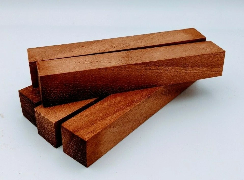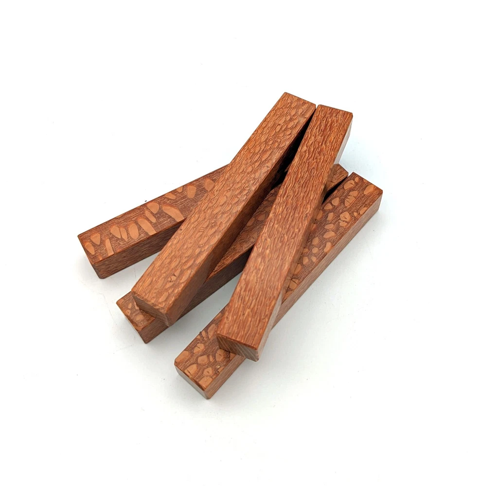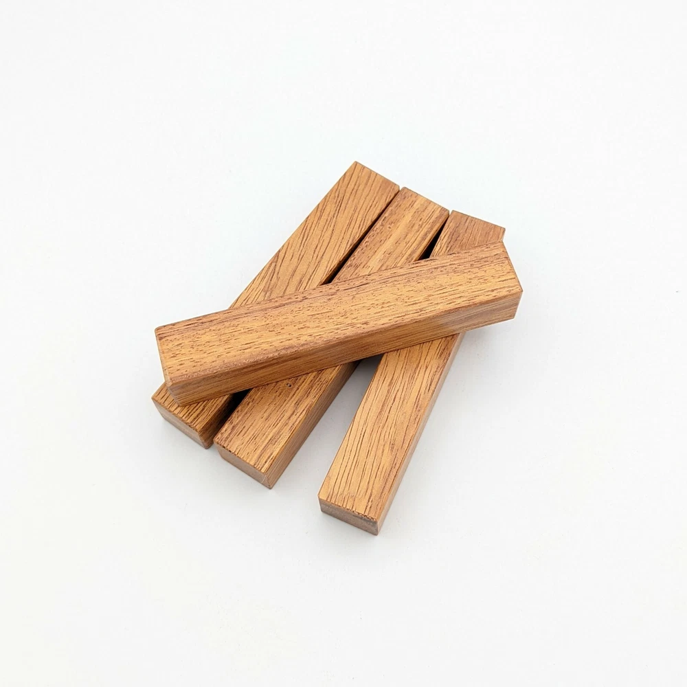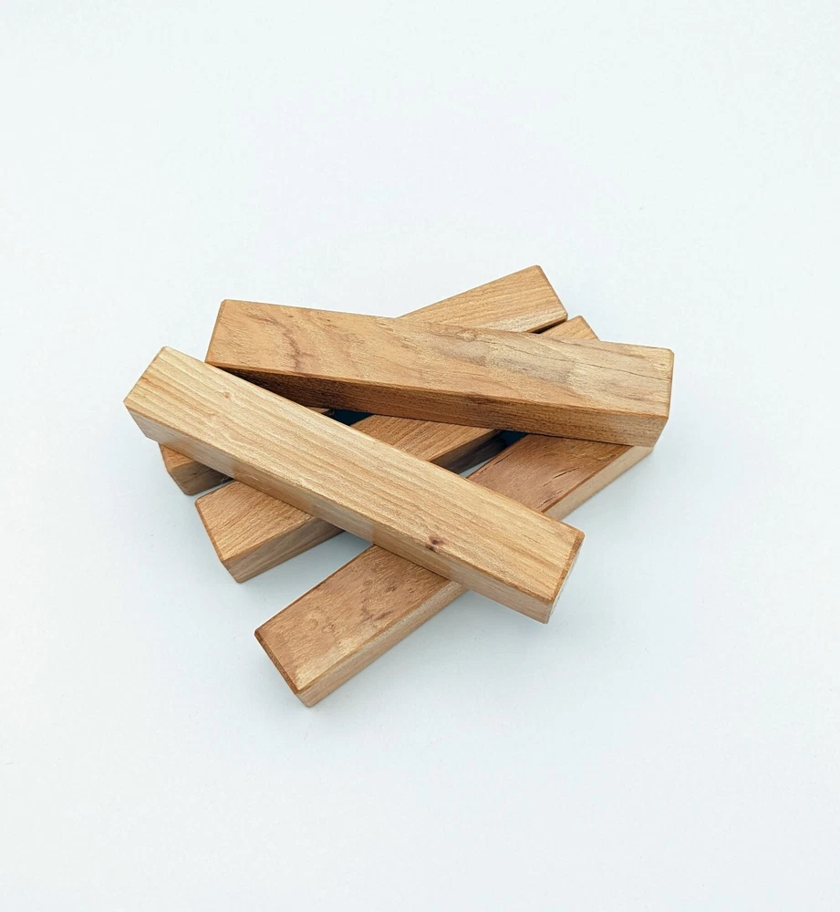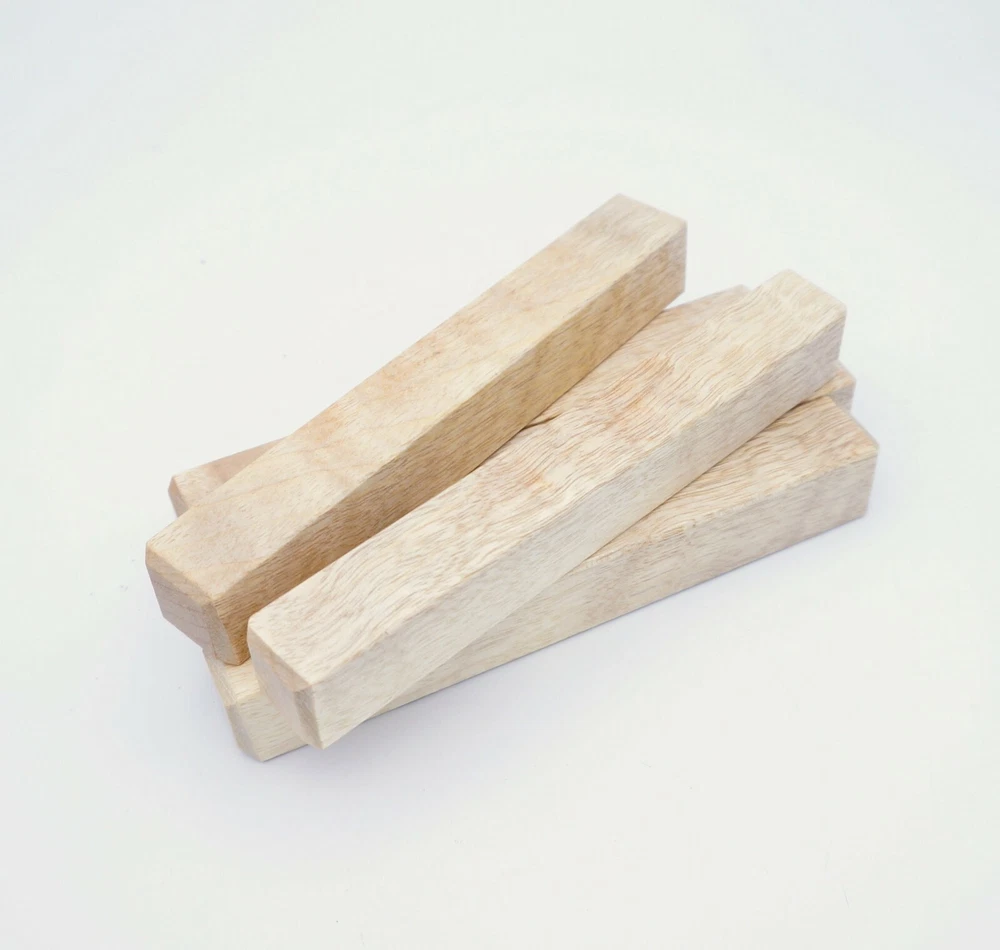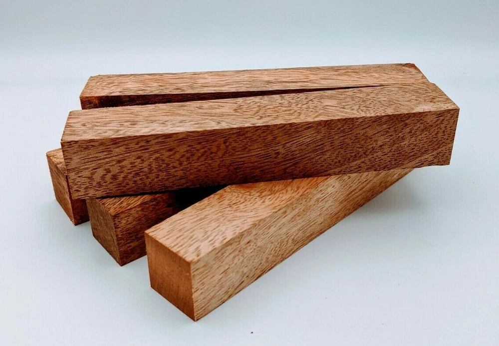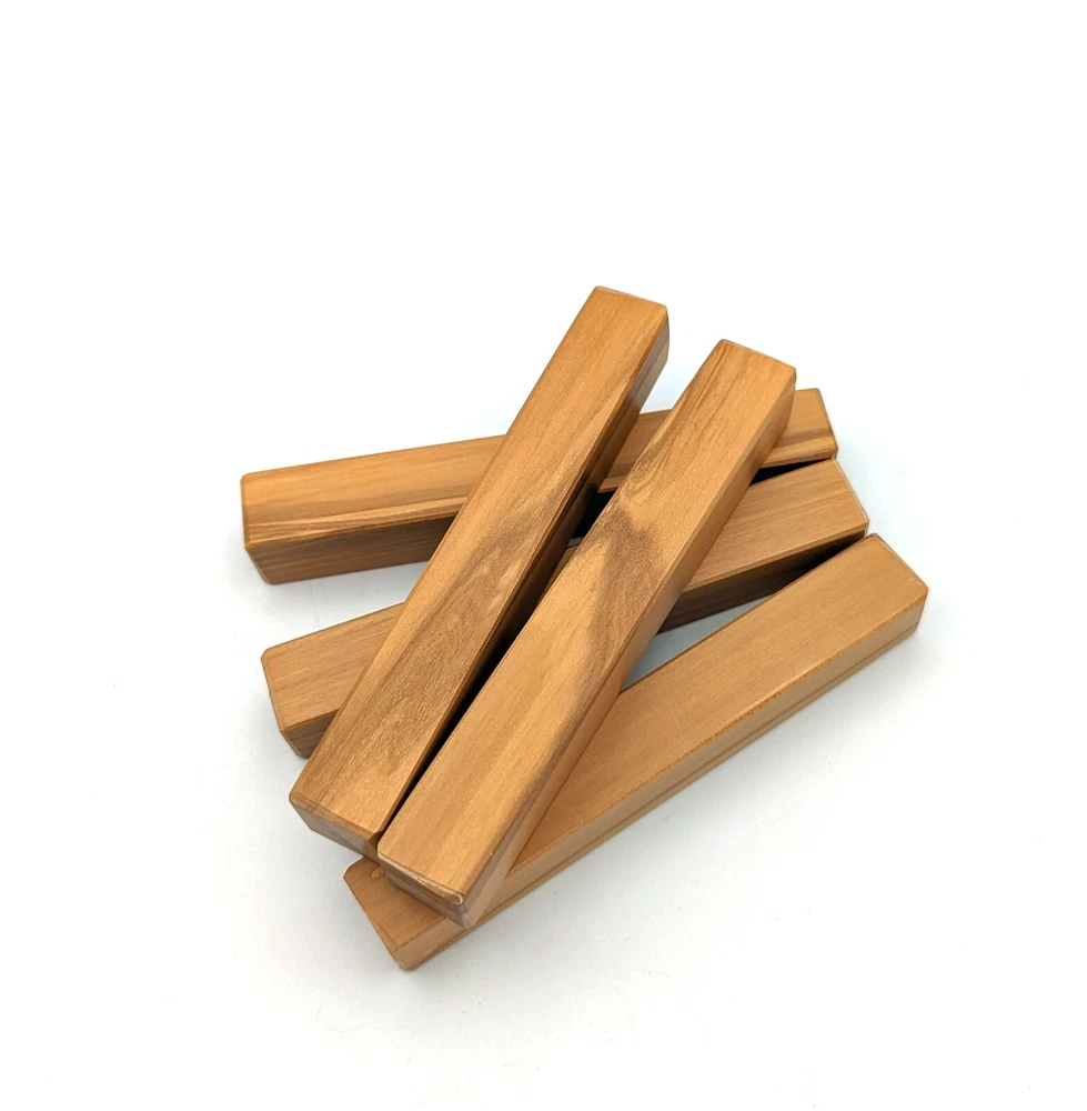 Choose the species from the drop-down. Why long blanks? Think about it. How much waste do you generally have using a single 5" blank for a single pen? When turning pens, I almost always cut the blanks 10" so that I can get 3 pens from a single blank. I'm now offering them to you! Price is for a single blank. Shipping starts at $4.99. The photos are from stock I cut, sanded to 320, then buffed with the Beall system. The blanks in the photos are for reference only. The items for sale are generally from the same stock. Measurements are approximate and may vary by +/- 1/8" Some blanks may contain inclusions and voids. Since I cut these myself, other sizes are available. Please message me if you desire another size or shape. If you would like to consider a bulk purchase, please contact me. Here is a list of our available species: Argentine Lignum Vitae: Extremely dense and durable, perfect for crafting high-end, long-lasting pen blanks. Ash - Black: Strong grain pattern, offers a bold and striking appearance for pen blanks. Ash - French: Tight grain with a subtle appearance, great for creating classic and elegant pens. Ash - White: Light color with fine texture, ideal for a clean and polished pen finish. Beli: Distinctive striping, adds visual interest and an exotic look to pen blanks. Bhilwara: Dense and durable with rich hues, suitable for creating long-lasting and visually appealing pens. Birch - African Bog: Dark, aged wood, creates a unique, antique feel for pens with a touch of history. Birch, Caramelized: Warm tones and smooth texture, perfect for crafting elegant and refined pens. Birch - Curly: Beautiful figuring adds dynamic visual movement, making pen blanks stand out. Bloodwood: Deep red color, offers a dramatic and luxurious look for striking pen blanks. Bocote: Eye-catching grain patterns, ideal for creating stunning and exotic pen designs. Boxwood - Castello: Fine-grained and pale, perfect for intricate and detailed pen work. Brazilian Blackheart (Pau Santo): Rich, dark tones, ideal for creating sophisticated and sleek pen blanks. Brazilian Tigerwood: Bold striping, adds a wild and exotic appearance to pen blanks. Brownheart: Smooth texture with a warm hue, perfect for creating understated and elegant pens. Bubinga: Reddish-brown with fine figuring, adds a touch of luxury to pen designs. Bubinga - Figured: Highly figured, making for eye-catching and intricate pen blanks. Camel Thorn: Dense and hard, offers durability with a striking red hue, perfect for long-lasting pens. Canarywood: Bright yellow with red streaks, creates vibrant and lively pen blanks. Catalpa: Light and easy to work with, great for beginners and natural finishes in pen crafting. Cerejeira: Fine texture with a golden hue, offers a classic and refined look for pen blanks. Cerejeira - Crotchwood: Intricate crotch figuring, ideal for creating unique and eye-catching pens. Ceylon Satinwood: Golden sheen with a fine texture, perfect for high-end and luxurious pens. Chakte Viga (Paela): Bright orange with fine grain, creates bold and distinctive pen blanks. Cherry: Warm red tones, classic and popular choice for crafting all types of pens. Cherry - Figured: Dynamic figuring enhances the traditional look, adding depth to cherry wood pens. Cocobolo: Rich color with striking patterns, ideal for crafting luxurious and durable pens. Crepe Myrtle (Pyinma): Fine grain with a warm hue, perfect for detailed and smooth pen work. Crepe Myrtle (Pyinma) - XG: Extra-figured, offers enhanced visual depth and complexity to pens. Ebiara (Red Zebrawood): Striped appearance, perfect for creating exotic and vibrant pen blanks. Ebony, Bolivian (Coffeewood): Dark and dense, ideal for sleek, sophisticated pen designs. Ebony - Brazilian (Gombeira): Deep black color with a smooth texture, excellent for premium pen blanks. Elm: Attractive grain and medium hardness, perfect for creating classic and durable pens. Etimoe: Reddish-brown with a tight grain, adds subtle elegance and richness to pen blanks. Granadillo: Reddish-brown with a fine texture, excellent for detailed and durable pen designs. Granadillo - Figured: Enhanced figuring adds visual interest and depth to Granadillo pen blanks. Hackberry: Light-colored with subtle grain, ideal for custom finishes and versatile pen designs. Hackberry - Spalted: Unique spalting patterns, creates stunning and one-of-a-kind pen blanks. Hickory (reclaimed): Strong and durable with a rustic appearance, perfect for crafting rugged pens. Holly: Bright white, perfect for creating contrasting or detailed work in pens. Imbuia: Rich, dark wood with a pleasant aroma, ideal for creating elegant and luxurious pens. Ipe: Extremely dense and durable, great for crafting heavy-use and long-lasting pens. Ironwood - Moluccan: Incredibly hard with a deep brown color, perfect for creating durable and long-lasting pens. Itauba: Golden-brown with a smooth texture, ideal for creating warm and elegant pen blanks. Jarrah: Reddish with a rich grain, great for classic and refined pen designs. Jatoba (Brazilian Cherry): Extremely hard with a deep red hue, perfect for high-durability and striking pen blanks. Kentucky Coffee Tree: Light color with a fine grain, ideal for easy finishing and classic pen designs. Kiaat (Muninga): Attractive golden-brown with interlocking grain, adds character to pen blanks. Koa: Rich color with fine figuring, perfect for creating beautiful, high-end pens. Lacewood: Distinctive flecked grain, ideal for crafting eye-catching and textured pen blanks. Leopardwood: Spotted appearance, perfect for creating unique and striking pen designs. Limba - White: Light-colored wood with a subtle grain, perfect for creating clean and minimalist pens. Locust - Honey: Warm golden hue, ideal for creating pens with a rustic and natural charm. Louro Preto: Dark, rich wood with fine texture, perfect for creating elegant and polished pens. Louro Preto - Figured (wormy): Unique figuring adds character and depth to Louro Pret
