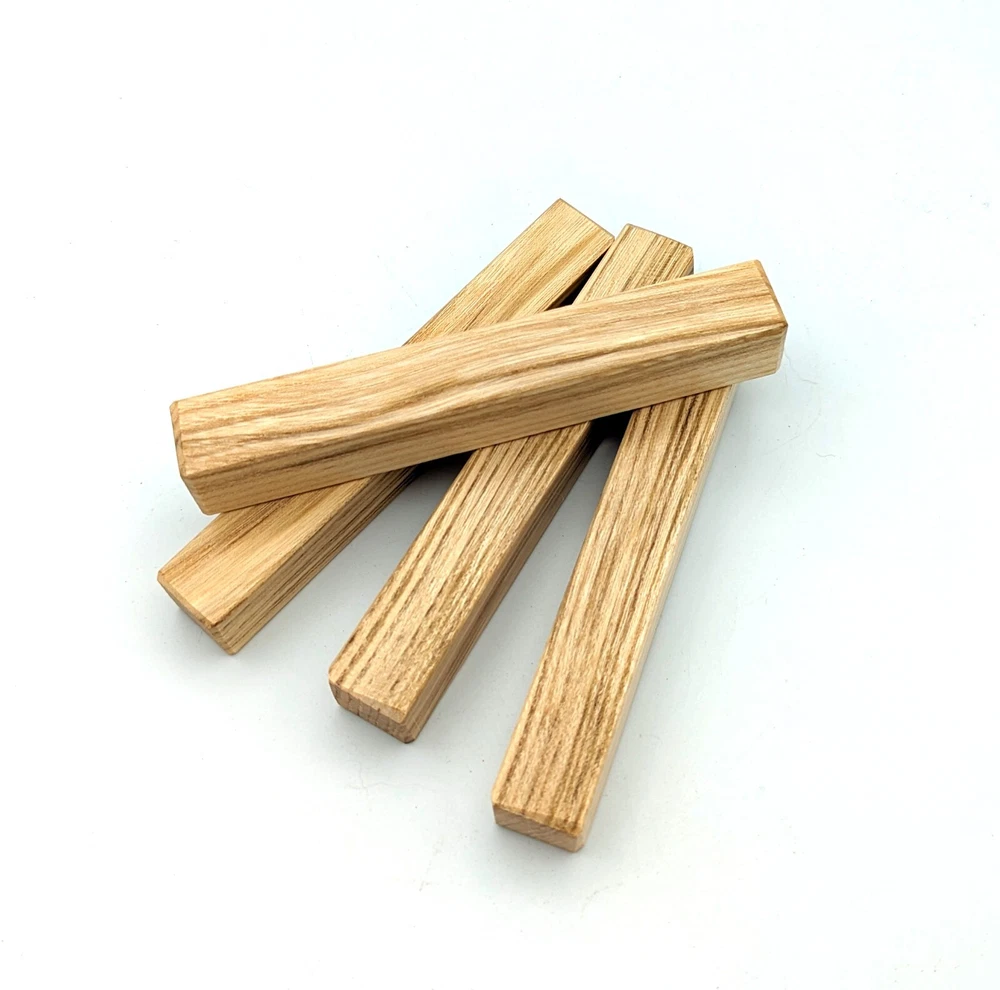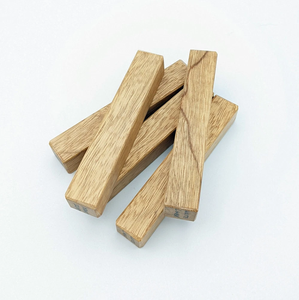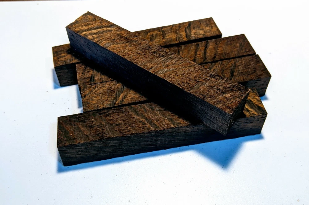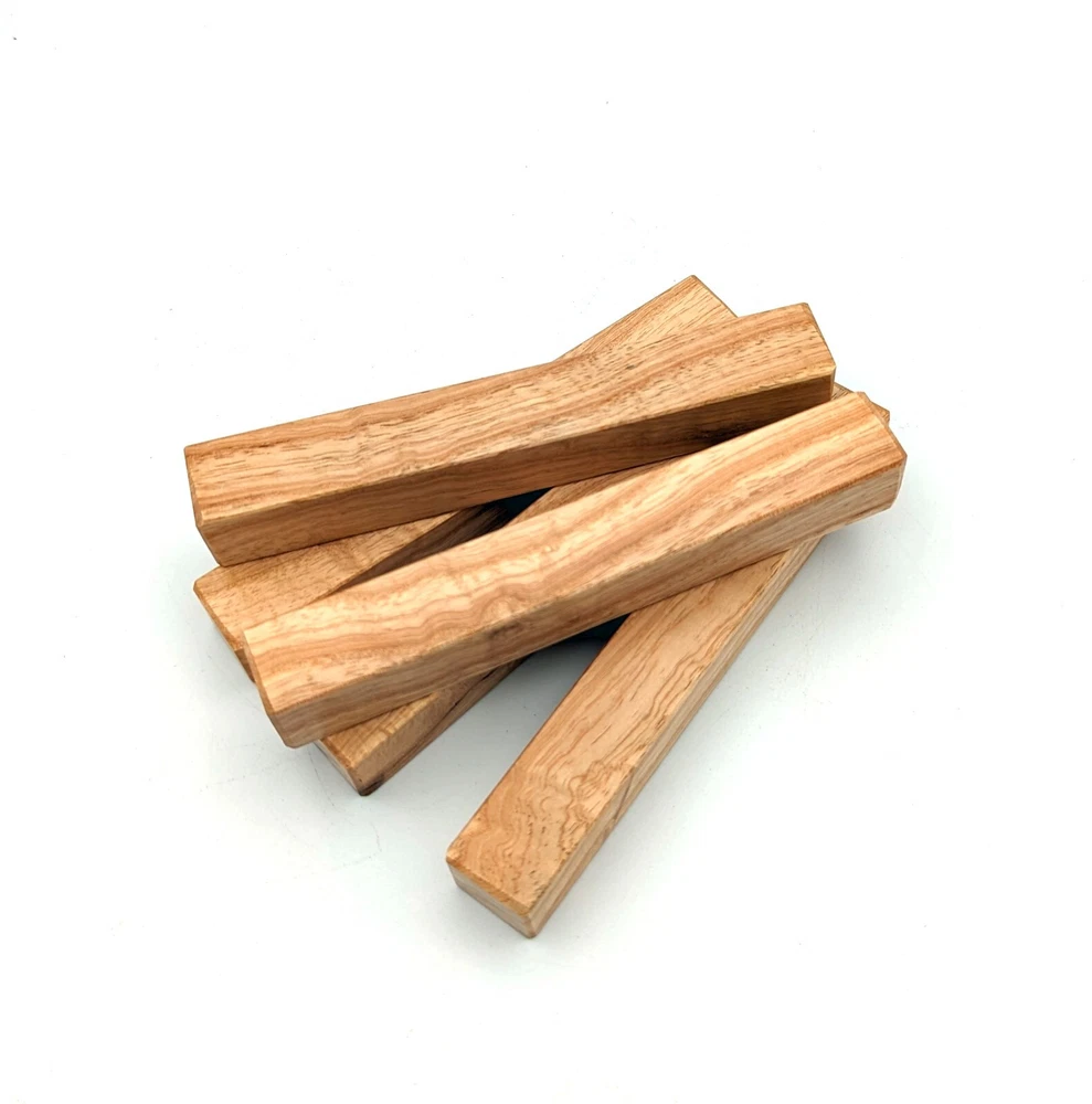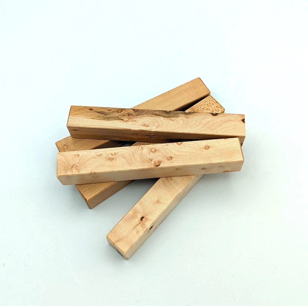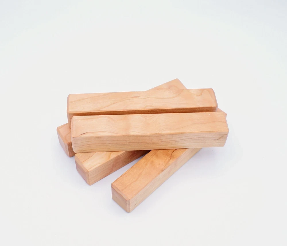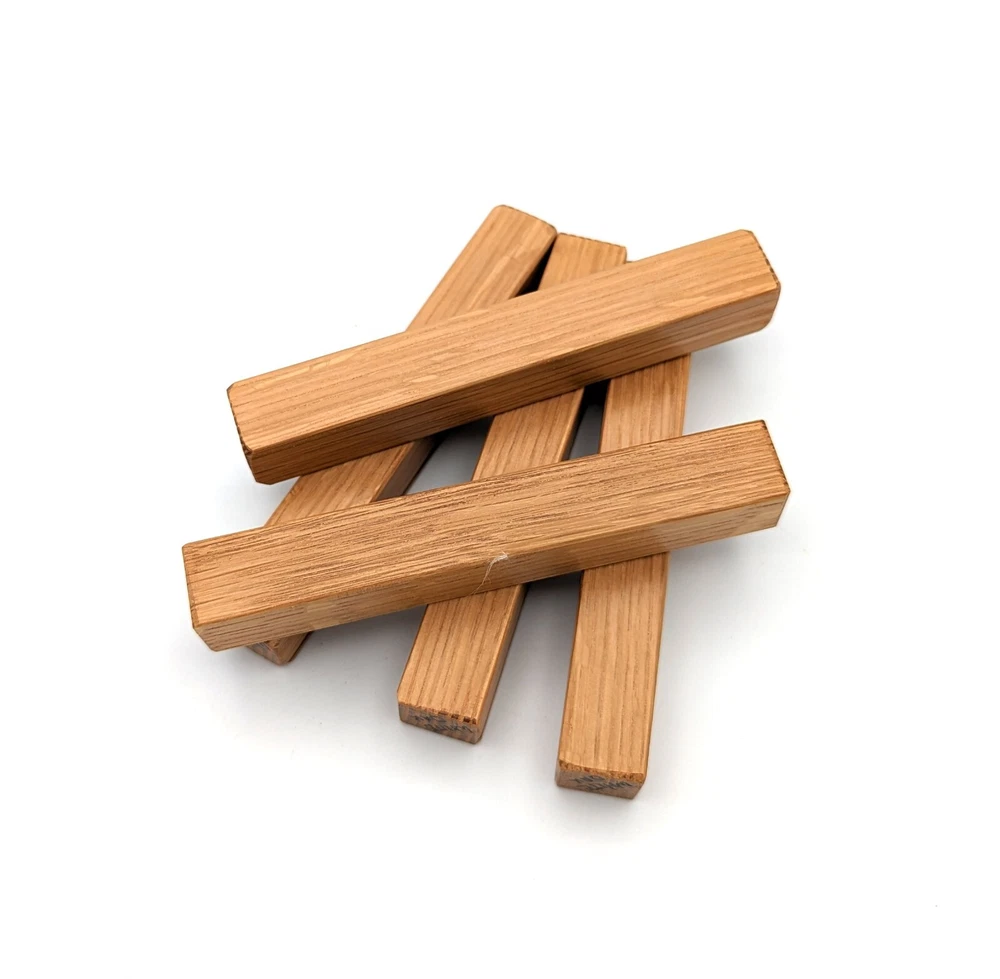 Choose the species from the drop-down. Why long blanks? Think about it. How much waste do you generally have using a single 5" blank for a single pen? When turning pens, I almost always cut the blanks 10" so that I can get 3 pens from a single blank. I'm now offering them to you! Price is for a single blank. Shipping starts at $4.99. The photos are from stock I cut, sanded to 320, then buffed with the Beall system. The blanks in the photos are for reference only. The items for sale are generally from the same stock. Measurements are approximate and may vary by +/- 1/8" Some blanks may contain inclusions and voids. Since I cut these myself, other sizes are available. Please message me if you desire another size or shape. If you would like to consider a bulk purchase, please contact me. Here is a list of our available species: Argentine Lignum Vitae: Extremely dense and durable, perfect for crafting high-end, long-lasting pen blanks. Ash - Black: Strong grain pattern, offers a bold and striking appearance for pen blanks. Ash - French: Tight grain with a subtle appearance, great for creating classic and elegant pens. Ash - White: Light color with fine texture, ideal for a clean and polished pen finish. Beli: Distinctive striping, adds visual interest and an exotic look to pen blanks. Bhilwara: Dense and durable with rich hues, suitable for creating long-lasting and visually appealing pens. Birch - African Bog: Dark, aged wood, creates a unique, antique feel for pens with a touch of history. Birch, Caramelized: Warm tones and smooth texture, perfect for crafting elegant and refined pens. Birch - Curly: Beautiful figuring adds dynamic visual movement, making pen blanks stand out. Bloodwood: Deep red color, offers a dramatic and luxurious look for striking pen blanks. Bocote: Eye-catching grain patterns, ideal for creating stunning and exotic pen designs. Boxwood - Castello: Fine-grained and pale, perfect for intricate and detailed pen work. Brazilian Blackheart (Pau Santo): Rich, dark tones, ideal for creating sophisticated and sleek pen blanks. Brazilian Tigerwood: Bold striping, adds a wild and exotic appearance to pen blanks. Brownheart: Smooth texture with a warm hue, perfect for creating understated and elegant pens. Bubinga: Reddish-brown with fine figuring, adds a touch of luxury to pen designs. Bubinga - Figured: Highly figured, making for eye-catching and intricate pen blanks. Camel Thorn: Dense and hard, offers durability with a striking red hue, perfect for long-lasting pens. Canarywood: Bright yellow with red streaks, creates vibrant and lively pen blanks. Catalpa: Light and easy to work with, great for beginners and natural finishes in pen crafting. Cerejeira: Fine texture with a golden hue, offers a classic and refined look for pen blanks. Cerejeira - Crotchwood: Intricate crotch figuring, ideal for creating unique and eye-catching pens. Ceylon Satinwood: Golden sheen with a fine texture, perfect for high-end and luxurious pens. Chakte Viga (Paela): Bright orange with fine grain, creates bold and distinctive pen blanks. Cherry: Warm red tones, classic and popular choice for crafting all types of pens. Cherry - Figured: Dynamic figuring enhances the traditional look, adding depth to cherry wood pens. Cocobolo: Rich color with striking patterns, ideal for crafting luxurious and durable pens. Crepe Myrtle (Pyinma): Fine grain with a warm hue, perfect for detailed and smooth pen work. Crepe Myrtle (Pyinma) - XG: Extra-figured, offers enhanced visual depth and complexity to pens. Ebiara (Red Zebrawood): Striped appearance, perfect for creating exotic and vibrant pen blanks. Ebony, Bolivian (Coffeewood): Dark and dense, ideal for sleek, sophisticated pen designs. Ebony - Brazilian (Gombeira): Deep black color with a smooth texture, excellent for premium pen blanks. Elm: Attractive grain and medium hardness, perfect for creating classic and durable pens. Etimoe: Reddish-brown with a tight grain, adds subtle elegance and richness to pen blanks. Granadillo: Reddish-brown with a fine texture, excellent for detailed and durable pen designs. Granadillo - Figured: Enhanced figuring adds visual interest and depth to Granadillo pen blanks. Hackberry: Light-colored with subtle grain, ideal for custom finishes and versatile pen designs. Hackberry - Spalted: Unique spalting patterns, creates stunning and one-of-a-kind pen blanks. Hickory (reclaimed): Strong and durable with a rustic appearance, perfect for crafting rugged pens. Holly: Bright white, perfect for creating contrasting or detailed work in pens. Imbuia: Rich, dark wood with a pleasant aroma, ideal for creating elegant and luxurious pens. Ipe: Extremely dense and durable, great for crafting heavy-use and long-lasting pens. Ironwood - Moluccan: Incredibly hard with a deep brown color, perfect for creating durable and long-lasting pens. Itauba: Golden-brown with a smooth texture, ideal for creating warm and elegant pen blanks. Jarrah: Reddish with a rich grain, great for classic and refined pen designs. Jatoba (Brazilian Cherry): Extremely hard with a deep red hue, perfect for high-durability and striking pen blanks. Kentucky Coffee Tree: Light color with a fine grain, ideal for easy finishing and classic pen designs. Kiaat (Muninga): Attractive golden-brown with interlocking grain, adds character to pen blanks. Koa: Rich color with fine figuring, perfect for creating beautiful, high-end pens. Lacewood: Distinctive flecked grain, ideal for crafting eye-catching and textured pen blanks. Leopardwood: Spotted appearance, perfect for creating unique and striking pen designs. Limba - White: Light-colored wood with a subtle grain, perfect for creating clean and minimalist pens. Locust - Honey: Warm golden hue, ideal for creating pens with a rustic and natural charm. Louro Preto: Dark, rich wood with fine texture, perfect for creating elegant and polished pens. Louro Preto - Figured (wormy): Unique figuring adds character and depth to Louro Pret