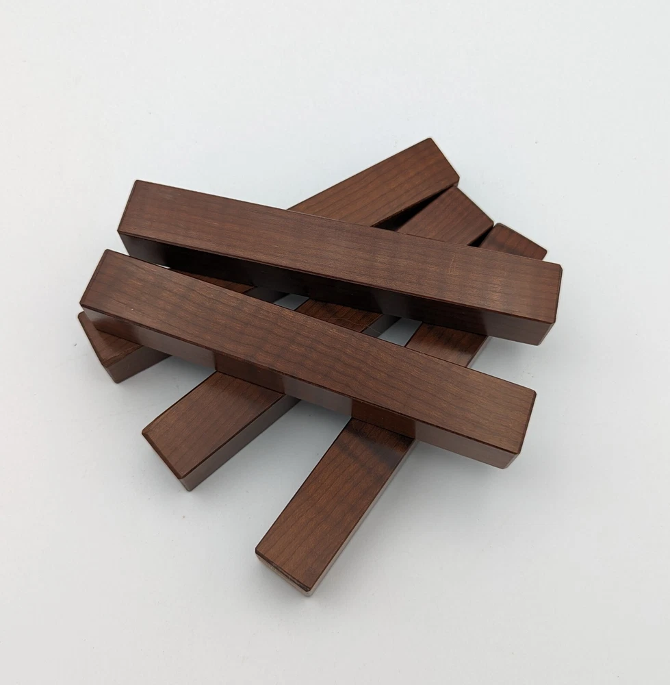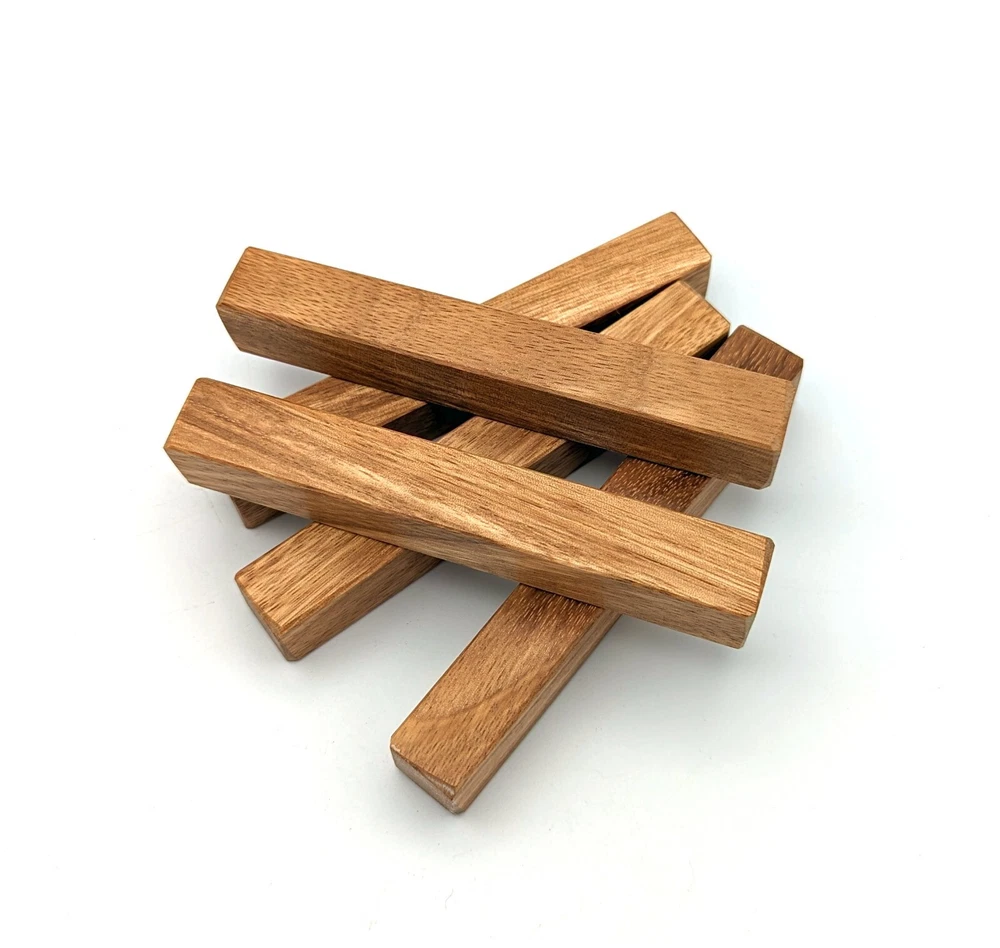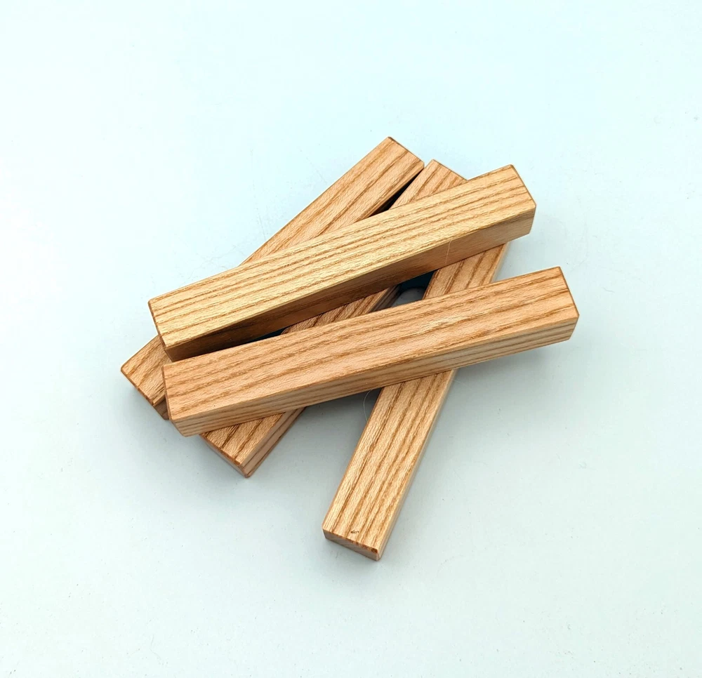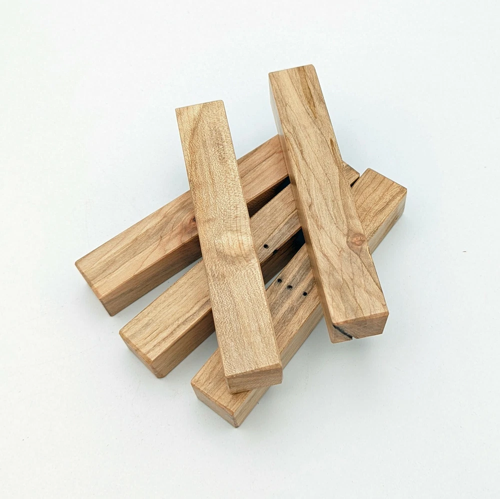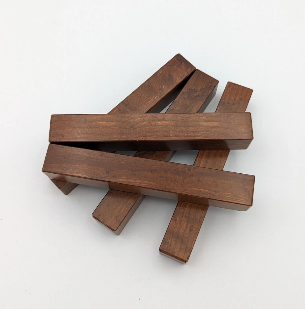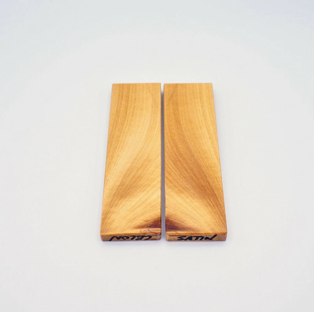 Choose the species from the drop-down. Why long blanks? Think about it. How much waste do you generally have using a single 5" blank for a single pen? When turning pens, I almost always cut the blanks 10" so that I can get 3 pens from a single blank. I'm now offering them to you! Price is for a single blank. Shipping starts at $4.99. The photos are from stock I cut, sanded to 320, then buffed with the Beall system. The blanks in the photos are for reference only. The items for sale are generally from the same stock. Measurements are approximate and may vary by +/- 1/8" Some blanks may contain inclusions and voids. Since I cut these myself, other sizes are available. Please message me if you desire another size or shape. If you would like to consider a bulk purchase, please contact me. Here is a list of our available species: Argentine Lignum Vitae: Extremely dense and durable, perfect for crafting high-end, long-lasting pen blanks. Ash - Black: Strong grain pattern, offers a bold and striking appearance for pen blanks. Ash - French: Tight grain with a subtle appearance, great for creating classic and elegant pens. Ash - White: Light color with fine texture, ideal for a clean and polished pen finish. Beli: Distinctive striping, adds visual interest and an exotic look to pen blanks. Bhilwara: Dense and durable with rich hues, suitable for creating long-lasting and visually appealing pens. Birch - African Bog: Dark, aged wood, creates a unique, antique feel for pens with a touch of history. Birch, Caramelized: Warm tones and smooth texture, perfect for crafting elegant and refined pens. Birch - Curly: Beautiful figuring adds dynamic visual movement, making pen blanks stand out. Bloodwood: Deep red color, offers a dramatic and luxurious look for striking pen blanks. Bocote: Eye-catching grain patterns, ideal for creating stunning and exotic pen designs. Boxwood - Castello: Fine-grained and pale, perfect for intricate and detailed pen work. Brazilian Blackheart (Pau Santo): Rich, dark tones, ideal for creating sophisticated and sleek pen blanks. Brazilian Tigerwood: Bold striping, adds a wild and exotic appearance to pen blanks. Brownheart: Smooth texture with a warm hue, perfect for creating understated and elegant pens. Bubinga: Reddish-brown with fine figuring, adds a touch of luxury to pen designs. Bubinga - Figured: Highly figured, making for eye-catching and intricate pen blanks. Camel Thorn: Dense and hard, offers durability with a striking red hue, perfect for long-lasting pens. Canarywood: Bright yellow with red streaks, creates vibrant and lively pen blanks. Catalpa: Light and easy to work with, great for beginners and natural finishes in pen crafting. Cerejeira: Fine texture with a golden hue, offers a classic and refined look for pen blanks. Cerejeira - Crotchwood: Intricate crotch figuring, ideal for creating unique and eye-catching pens. Ceylon Satinwood: Golden sheen with a fine texture, perfect for high-end and luxurious pens. Chakte Viga (Paela): Bright orange with fine grain, creates bold and distinctive pen blanks. Cherry: Warm red tones, classic and popular choice for crafting all types of pens. Cherry - Figured: Dynamic figuring enhances the traditional look, adding depth to cherry wood pens. Cocobolo: Rich color with striking patterns, ideal for crafting luxurious and durable pens. Crepe Myrtle (Pyinma): Fine grain with a warm hue, perfect for detailed and smooth pen work. Crepe Myrtle (Pyinma) - XG: Extra-figured, offers enhanced visual depth and complexity to pens. Ebiara (Red Zebrawood): Striped appearance, perfect for creating exotic and vibrant pen blanks. Ebony, Bolivian (Coffeewood): Dark and dense, ideal for sleek, sophisticated pen designs. Ebony - Brazilian (Gombeira): Deep black color with a smooth texture, excellent for premium pen blanks. Elm: Attractive grain and medium hardness, perfect for creating classic and durable pens. Etimoe: Reddish-brown with a tight grain, adds subtle elegance and richness to pen blanks. Granadillo: Reddish-brown with a fine texture, excellent for detailed and durable pen designs. Granadillo - Figured: Enhanced figuring adds visual interest and depth to Granadillo pen blanks. Hackberry: Light-colored with subtle grain, ideal for custom finishes and versatile pen designs. Hackberry - Spalted: Unique spalting patterns, creates stunning and one-of-a-kind pen blanks. Hickory (reclaimed): Strong and durable with a rustic appearance, perfect for crafting rugged pens. Holly: Bright white, perfect for creating contrasting or detailed work in pens. Imbuia: Rich, dark wood with a pleasant aroma, ideal for creating elegant and luxurious pens. Ipe: Extremely dense and durable, great for crafting heavy-use and long-lasting pens. Ironwood - Moluccan: Incredibly hard with a deep brown color, perfect for creating durable and long-lasting pens. Itauba: Golden-brown with a smooth texture, ideal for creating warm and elegant pen blanks. Jarrah: Reddish with a rich grain, great for classic and refined pen designs. Jatoba (Brazilian Cherry): Extremely hard with a deep red hue, perfect for high-durability and striking pen blanks. Kentucky Coffee Tree: Light color with a fine grain, ideal for easy finishing and classic pen designs. Kiaat (Muninga): Attractive golden-brown with interlocking grain, adds character to pen blanks. Koa: Rich color with fine figuring, perfect for creating beautiful, high-end pens. Lacewood: Distinctive flecked grain, ideal for crafting eye-catching and textured pen blanks. Leopardwood: Spotted appearance, perfect for creating unique and striking pen designs. Limba - White: Light-colored wood with a subtle grain, perfect for creating clean and minimalist pens. Locust - Honey: Warm golden hue, ideal for creating pens with a rustic and natural charm. Louro Preto: Dark, rich wood with fine texture, perfect for creating elegant and polished pens. Louro Preto - Figured (wormy): Unique figuring adds character and depth to Louro Pret