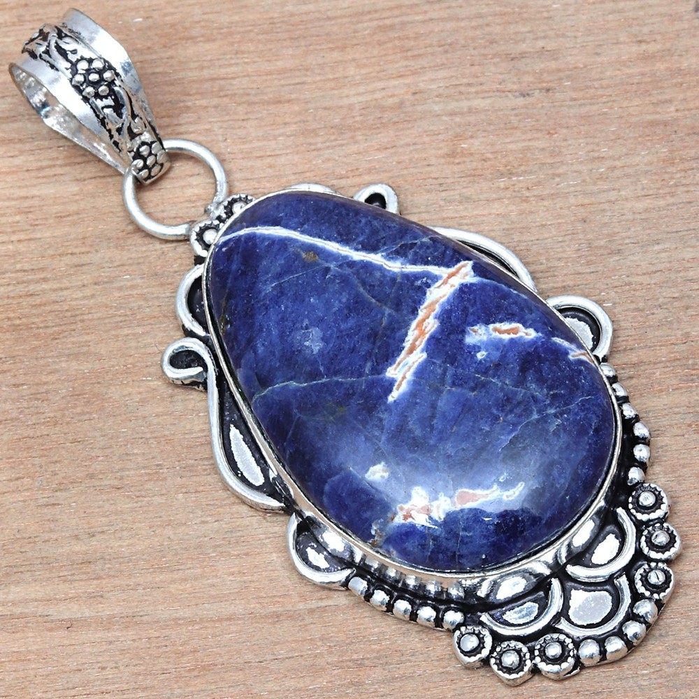 Pendant Blue Sodalite Gemstone Handmade Gift For Her Silver Jewelry 2.25"
