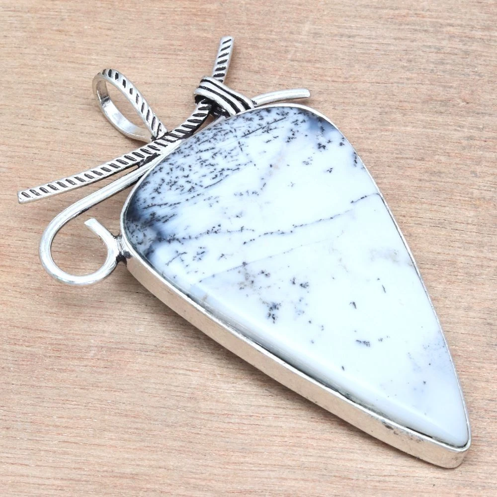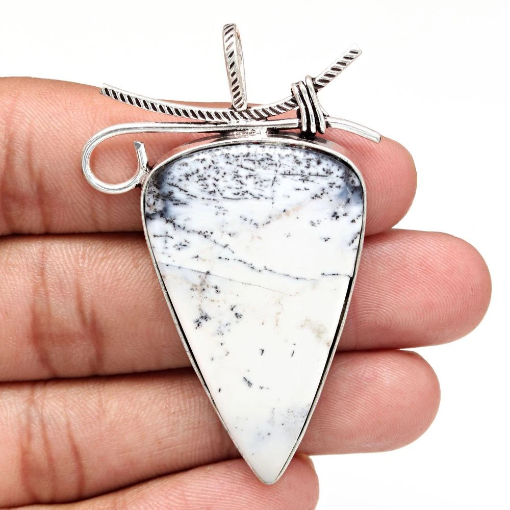 Pendant Dendritic Opal Gemstone Handmade Mother's Day Silver Jewelry 2.25"