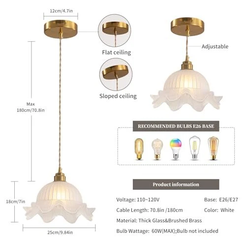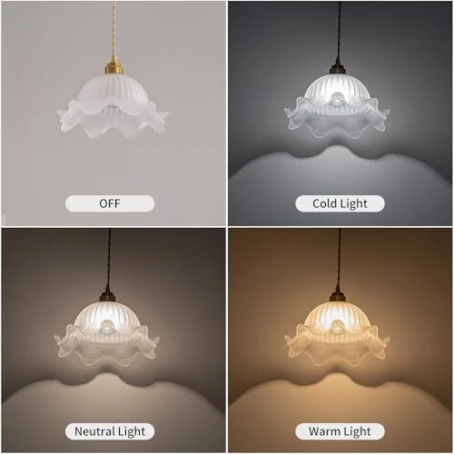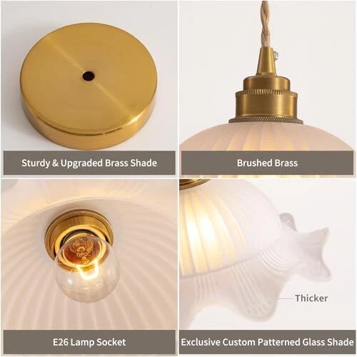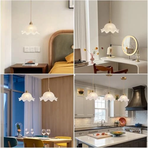 Return Policy Fast Delivery Trusted seller Pendant Lights Kitchen Island, 9.84" White Brass Kitchen Island Lighting with Flower Glass Shade, Adjustable Small Modern Vintage Pendant Lights, Island Lights for Kitchen Dining Room Hallway Product Description 【Unique Design】This unique pendant lights kitchen island combines retro and modern design to create a classic kitchen island lighting. It not only provides illumination, but also is a very beautiful decoration. The glass texture is very thick and clear, with good transparency. The light emitted through the lampshade is very charming and romantic, which will enhance the beauty of the entire space and improve your quality of life. 【High quality materials】The pendant lights is made of thick glass with clear patterns, not easily broken, good transparency, and conforms to modern aesthetic design. Its shape can complement various home styles. The metal part is made of thick material with copper plating on the surface, making the product more durable. The power cord adopts braided wire, adding a retro atmosp. This is a very romantic and exquisite kitchen pendant lighting over island. The ceiling is very sturdy, whether hung horizontally or diagonally, it can bloom with beautiful light and shadow. 【Product details】 The size of this brass pendant light is designed based on many factors, making it very comfortable for use in rooms, kitchens, or restaurants. The perfect size is neither too big nor too small. The lampshade size is 9.84 "Dia.x7.08" H, and the canopy size is 4.7 ". The power cord length is 70.8", and you can adjust it according to your needs. The lamp holder is E26, and you only need to purchase your favorite light bulb from the store to install it. You can also install a dimmer switch to adjust the brightness of the light (excluding light bulbs and switches) 【Wide Application】This glass pendant light not only has excellent lighting functions, but can also serve as a visual focal point for interior decoration. Its retro design style can be widely applied in many fields, whether it is the living room, dining room, kitchen, bedroom of a family residence, or the restaurant, caf é, art exhibition, museum, etc. of a commercial place, it can create a unique atmosp. 【 and good service】 kitchen pendant light has 2-years product warranty, if you have any questions about the pendant lighting, please feel free to contact us, our online service is available 24 hours. Shipping Returns Payment Shipping Shipping is FREE to all addresses other than APO/PO boxes in the lower 48 states. All our stock ships from US-based warehouses. Shipped via USPS or UPS (depending on location and package weight) Unless stated otherwise, all orders will ship within 24-72 hours of your payment being processed. Check our feedback to see the great reviews of FAST shipping we offer. Returns Seller does not accept returns Payment We currently accept payment via eBay managed payments only. Once payment is cleared, we will dispatch your shipment within 1-3 business days. Please refer to the "Shipping" tab for more information regarding shipping speed to your destination.