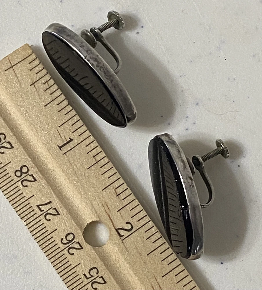 Metal:Sterling SilverStyle:Screw On BacksMetal Purity:925Estado del artículo:UsadoBrand:Del RioMain Stone Shape:OvalClosure:Screw BackType:EarringsColor:BlackCountry of Origin:MexicoShape:OvalOverall Dimensions:N/AMain Stone:OnyxCountry/Region of Manufacture:Mexico