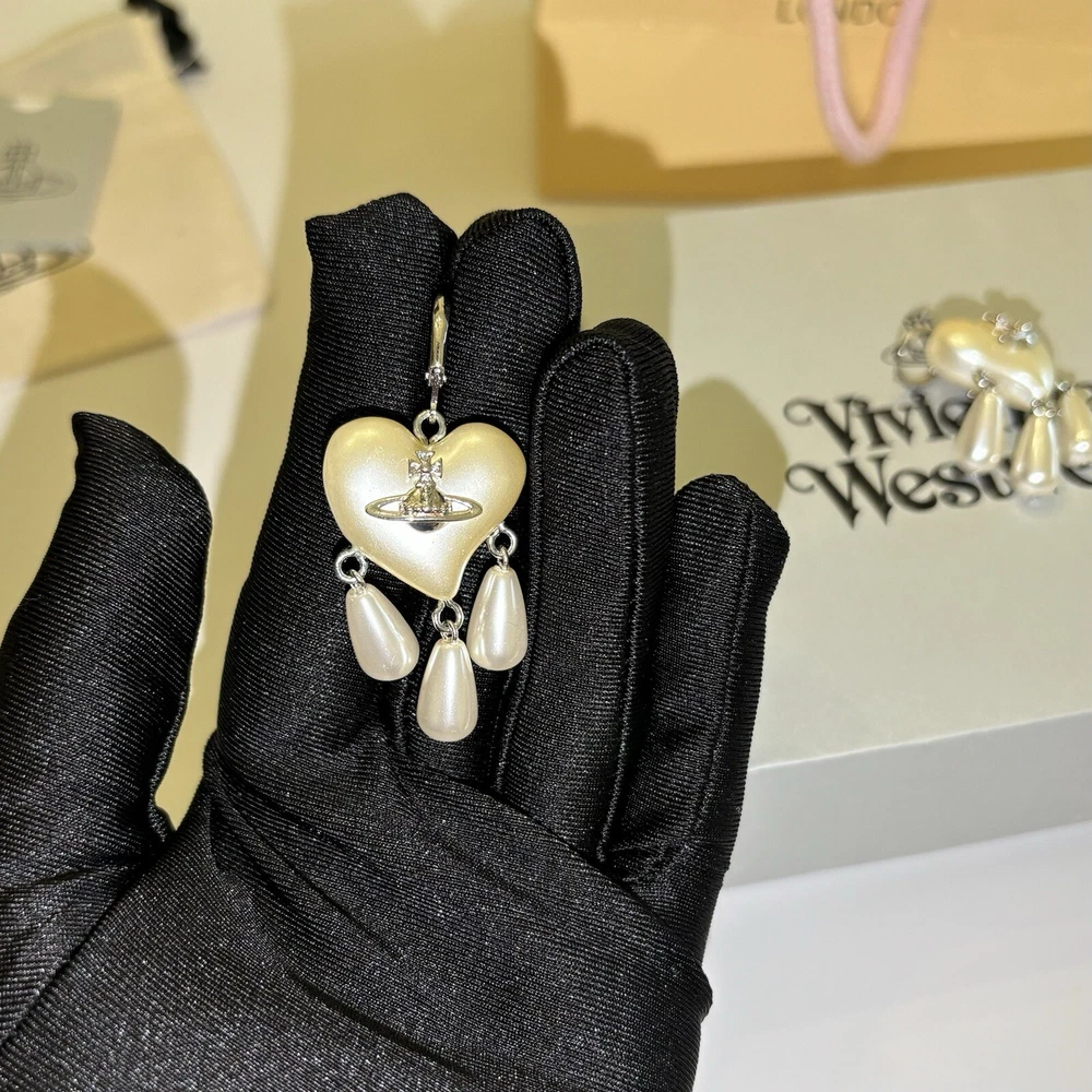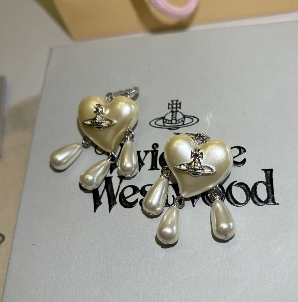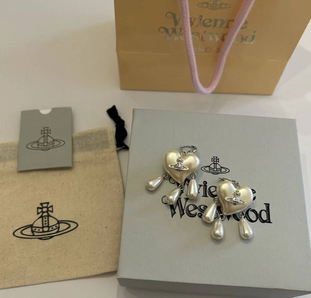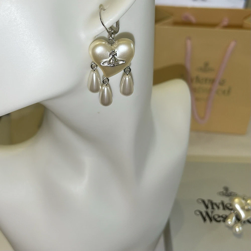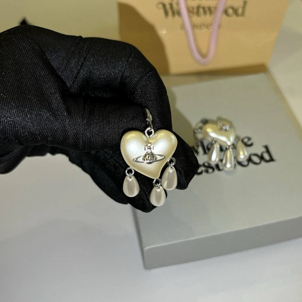 Pendientes Vivienne Westwood Gota Atrapasueños Corazón Perla Con Embalaje