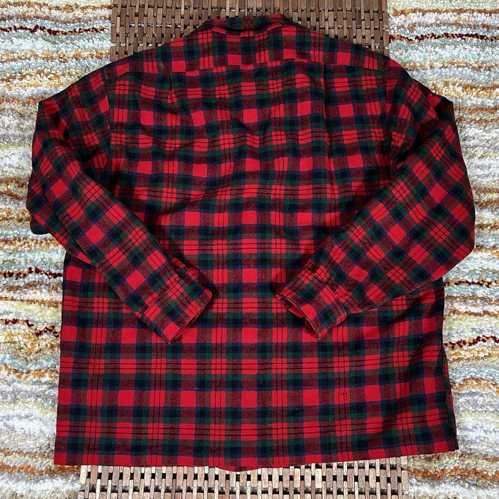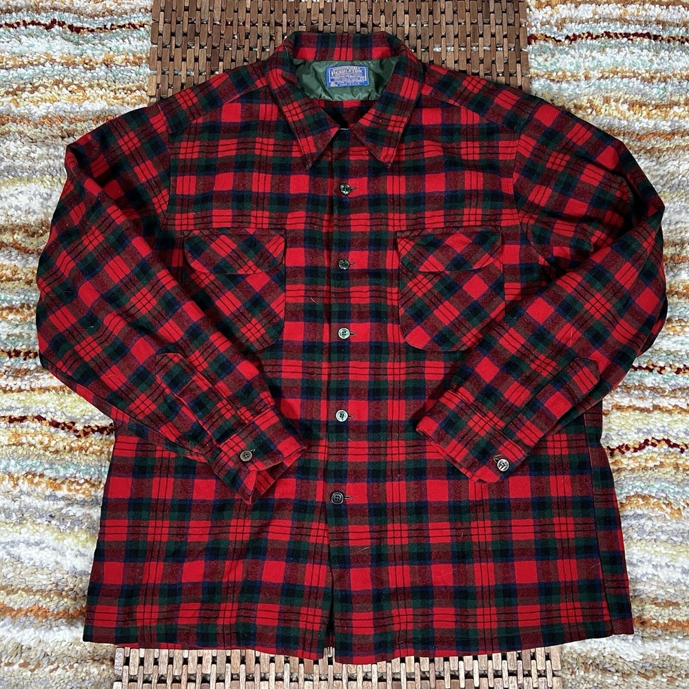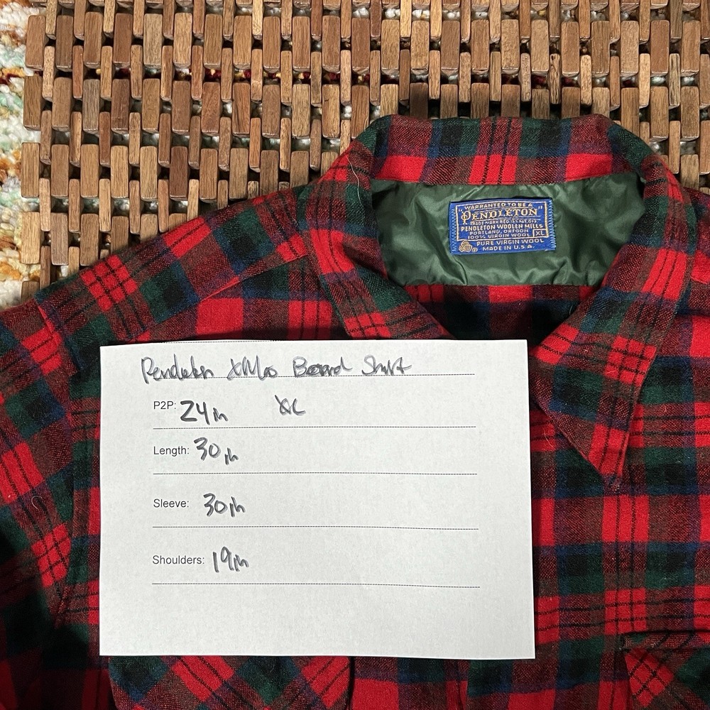 This Pendleton Board Shirt features a classic plaid pattern with a collared neckline and long sleeves. The shirt is made of limited edition wool flannel material with button closures and accents. It comes in a size XL with a regular fit and point collar style. The shirt is vintage and has a timeless appeal, perfect for any occasion. The shirt is part of the Pendleton Board Shirt product line and is a must-have for any fashion-conscious man.