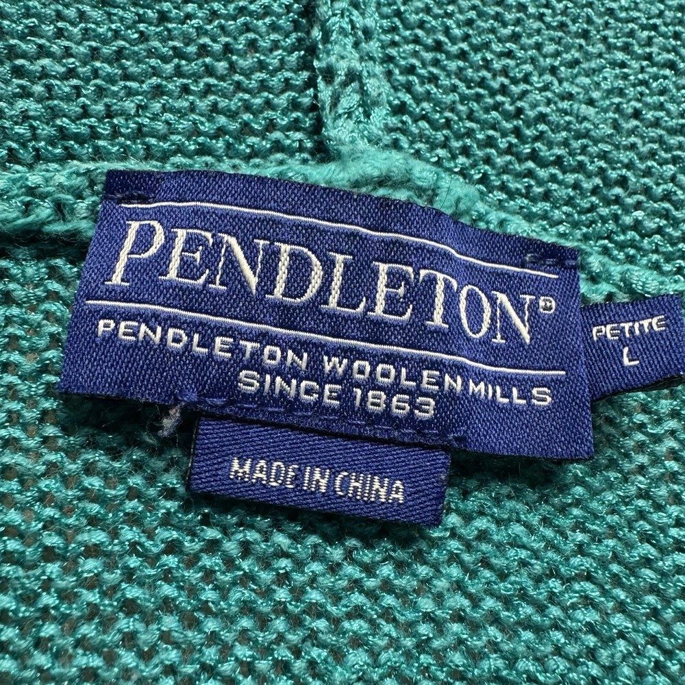 Pendleton Hooded Open Knit Cardigan Sweater Hoodie Womens Large Petite Blue Condition/Details: Please see pictures for condition and measurements. I recommend measuring a similar item you own to make sure this item fits. If you want additional measurements, please let me know. SIZE: Large MEASUREMENTS: Bust - 20", Length - 24" FAQ When will it ship? Within 1 business day of when I get your payment, not including weekends or federal holidays. Can I return it? Yes, I accept returns within 30 days of the original purchase date for a full refund. It has to be in the same condition as received in. However buyers pay for shipping for returns. Are any of your product in a smoke / pet environment? All items are stored in a smoke and pet free environment. What if I have a question or a problem? If you have any questions, please give me a message on eBay!