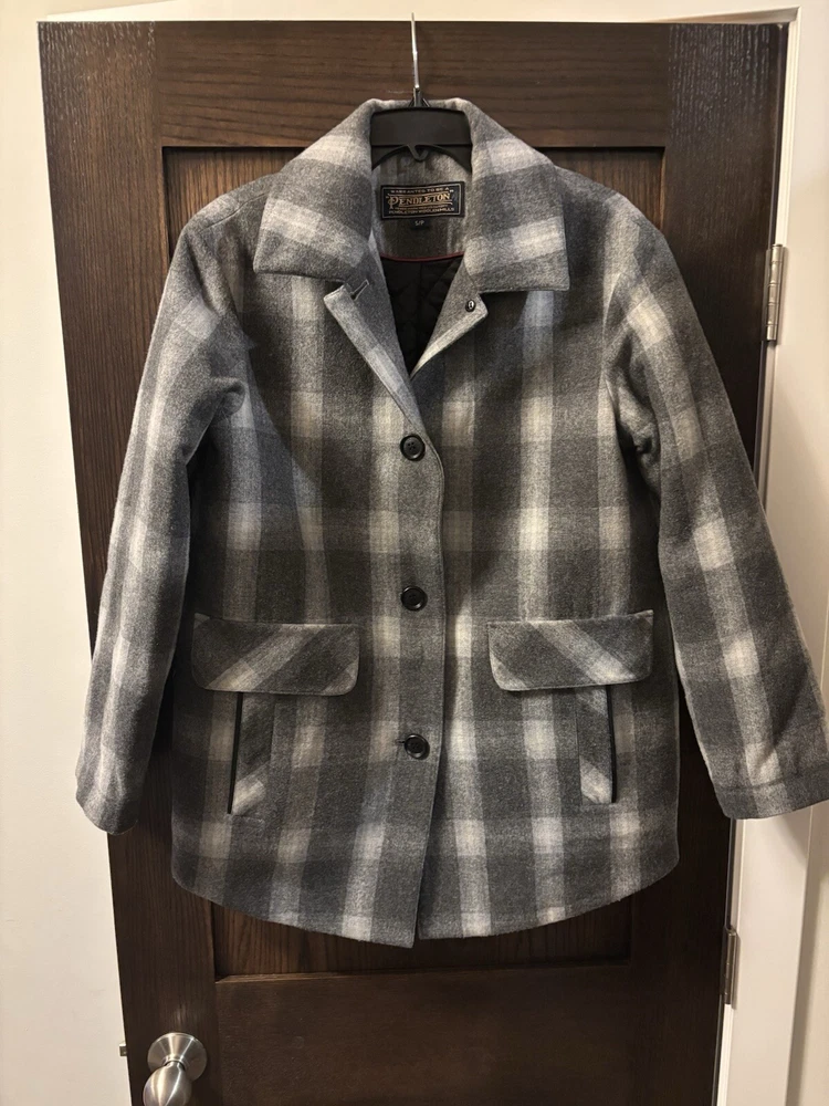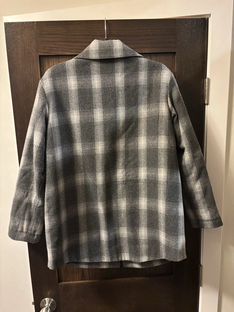 Wrap yourself in the timeless elegance of this Pendleton Women’s Coat, featuring a classic gray plaid pattern that exudes a sense of casual sophistication. The overcoat is crafted from luxurious wool, ensuring warmth and comfort with every wear. Designed with practicality in mind, it boasts both flap and side pockets to keep your essentials secure and within reach. The coat's button-front closure adds a touch of traditional charm, while the regular size S fits seamlessly into your wardrobe, making it a versatile choice for various occasions. Whether you're heading to the office or enjoying a weekend outing, this stylish piece from Pendleton's collection is a perfect blend of fashion and function.
