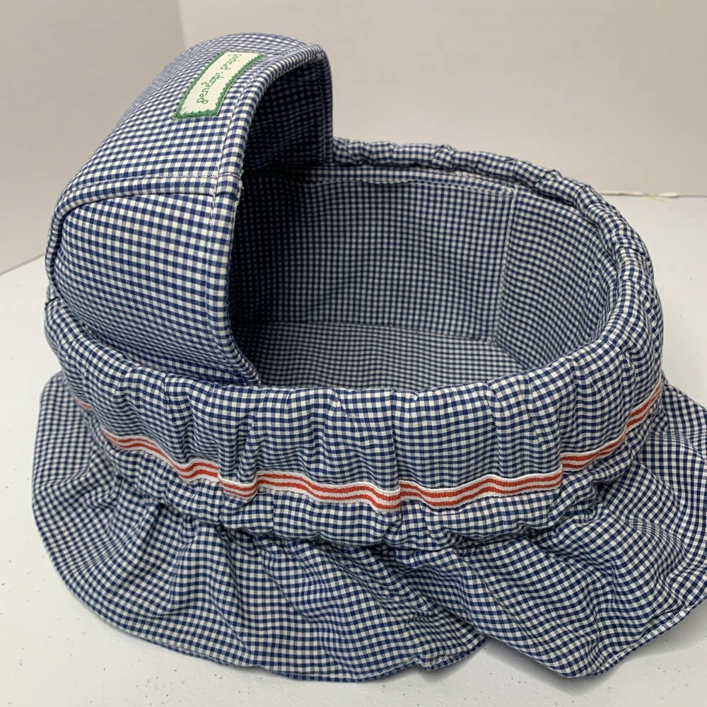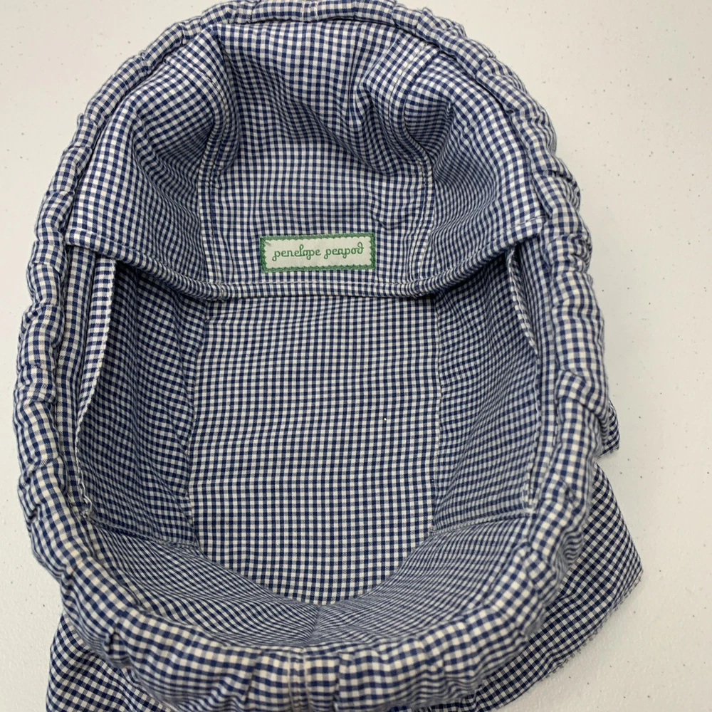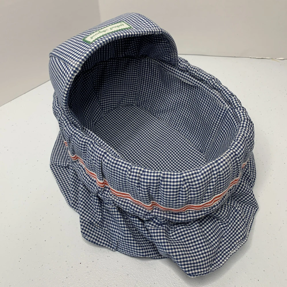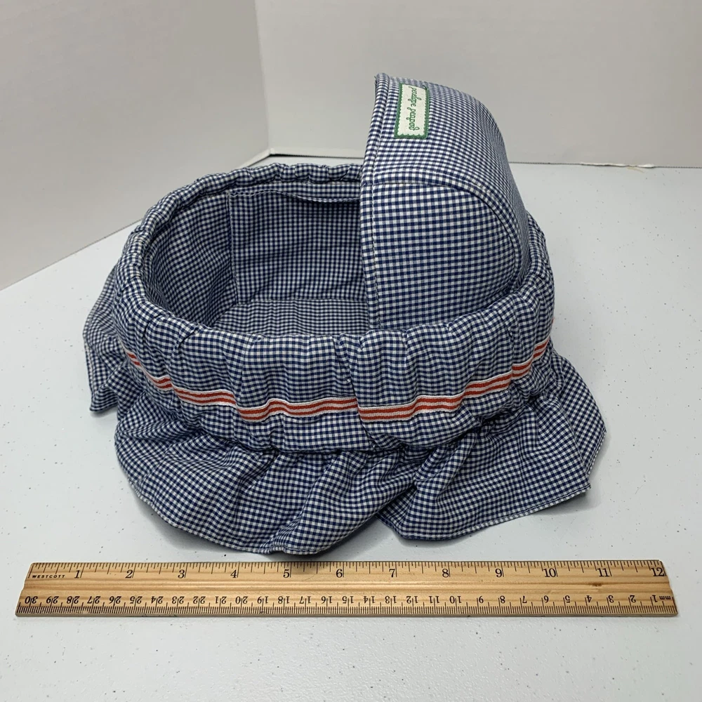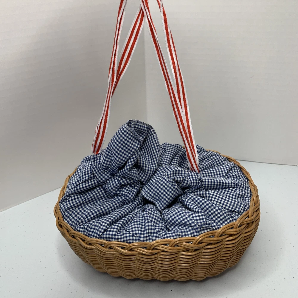 Blue checkered bassinet from Penelope Peapod. No doll included. See how it converts to bag/purse in pictures. See all photos
