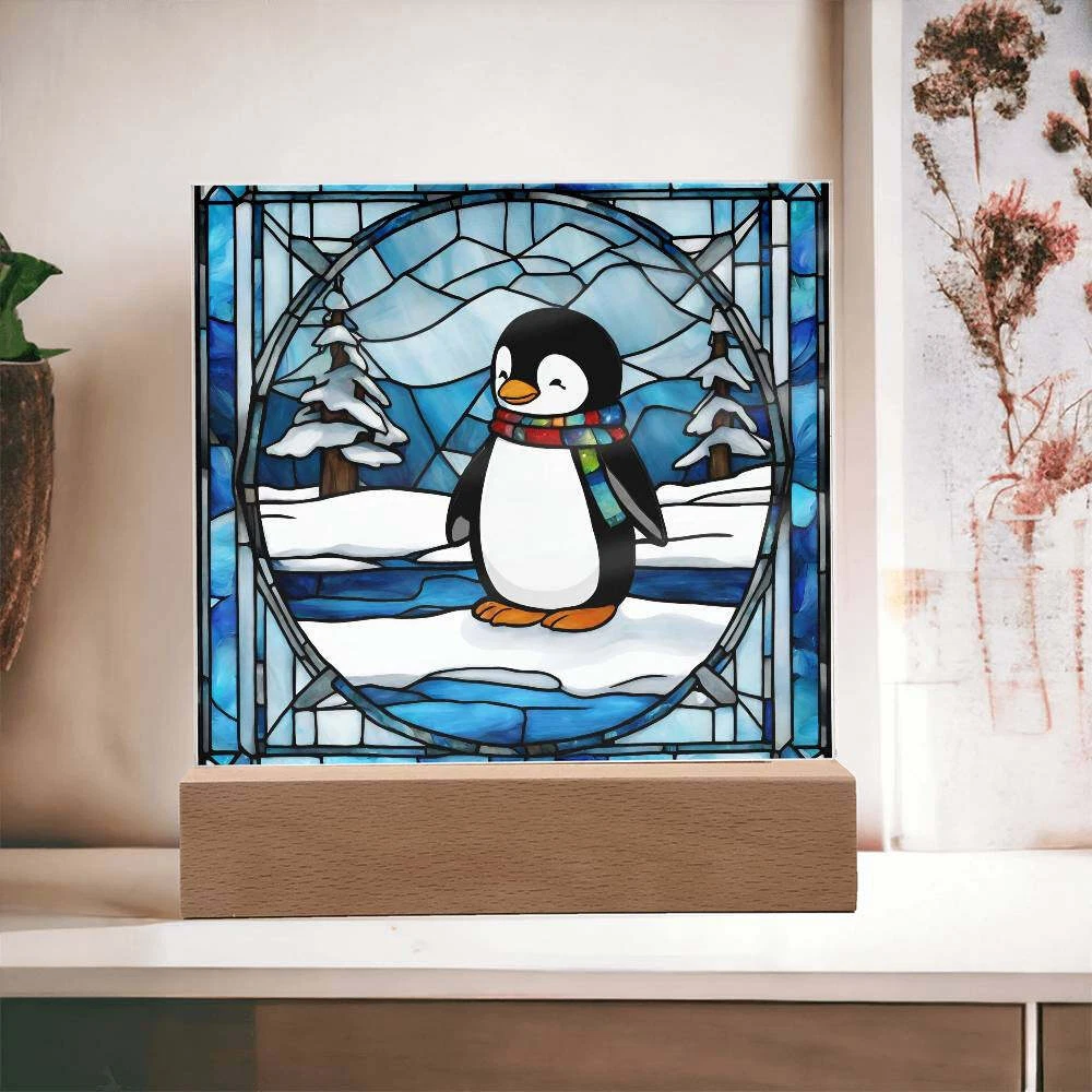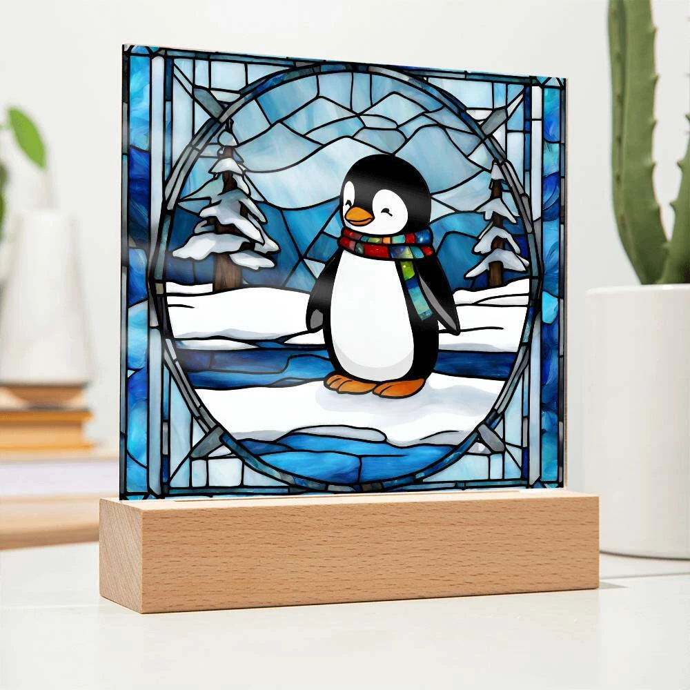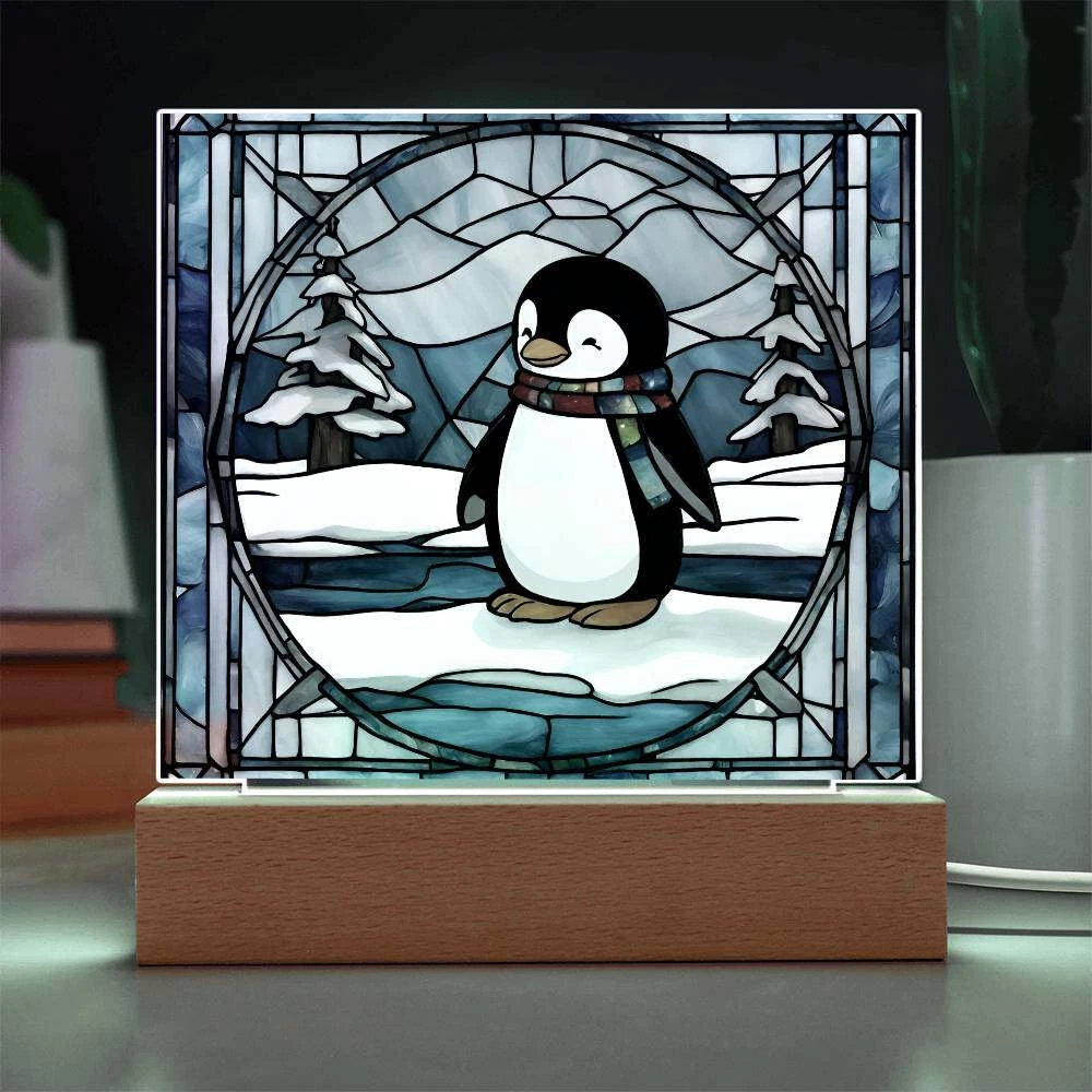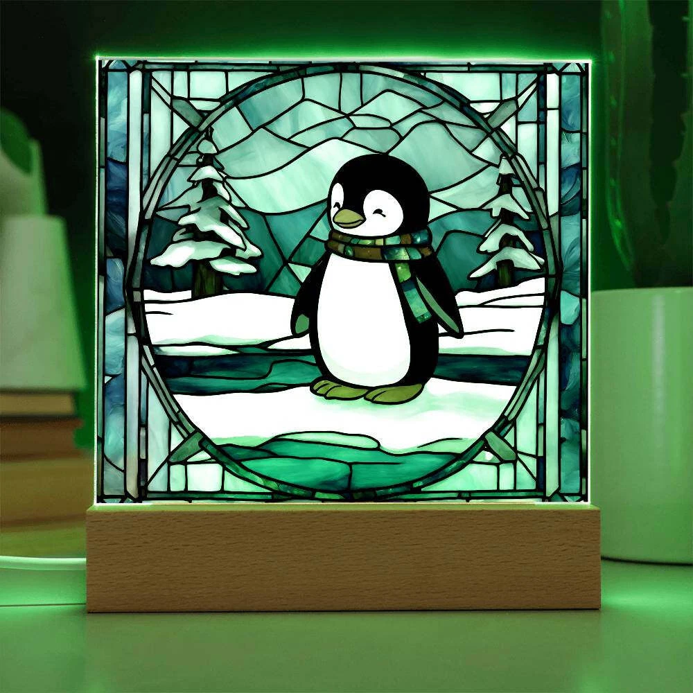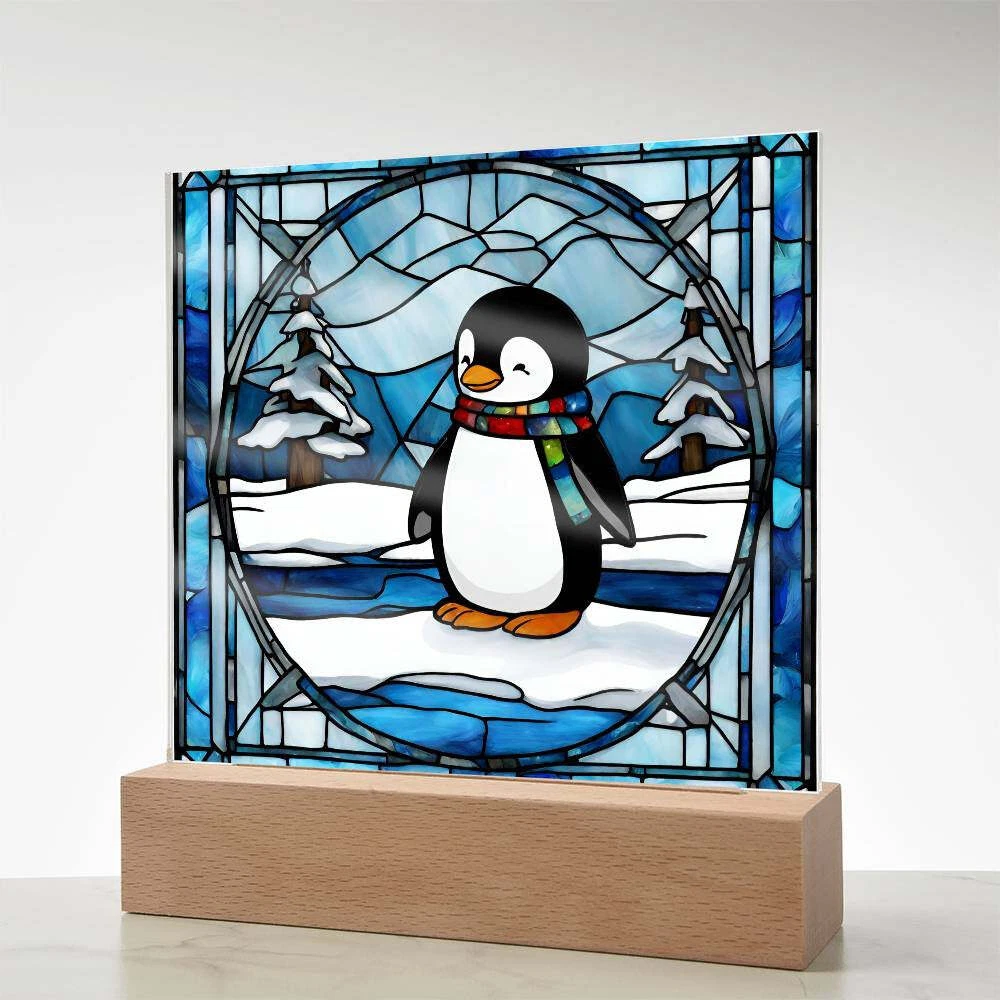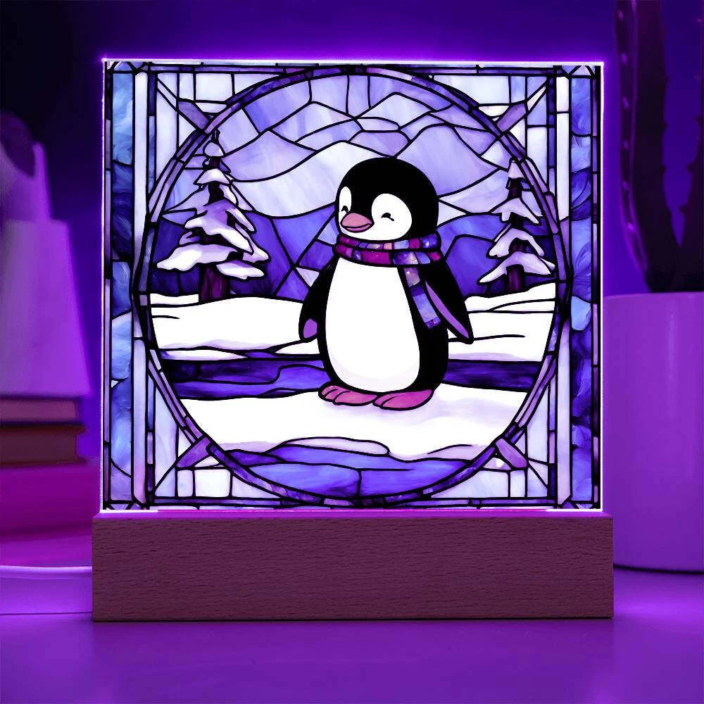 Penguin acrylic faux stained glass plaque. Combine modern technology and a heartfelt message with our Square Acrylic Plaque ! This design is printed on crystal-clear premium acrylic and easily becomes the centerpiece of any room. And the contemporary design wouldn't be complete without its sleek wooden base, elevating the display that will instantly become a conversation starter. Create a memorable presentation when you upgrade to the LED wooden base! This is the ideal present for your beloved partner, family members, or dear friends on special occasions like anniversaries, birthdays, or any occasion where you want to express your love and appreciation in an unforgettable way. Let your loved ones know how much they mean to you by purchasing today! Your plaque will be made from high quality acrylic and will feature a professionally printed design. This present makes for a truly unique and sentimental gift that will be treasured for years to come! Product specifications: Premium acrylic Size with wooden base: 6.5" (165mm) height x 6.5" (165mm) width Acrylic Depth: 0.1" (5mm) Wooden base: 1.2" (30mm) height x 6.5" (165mm) width x 1.8" (45mm) depth (Optional) Wooden base with colorful built-in LED lights Sharp, detailed printed design Each order is lovingly packaged and ready to be cherished for a lifetime!