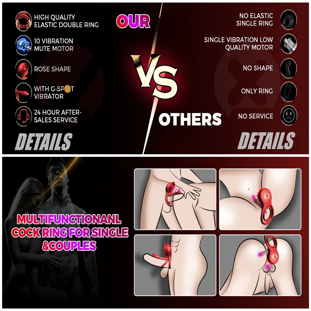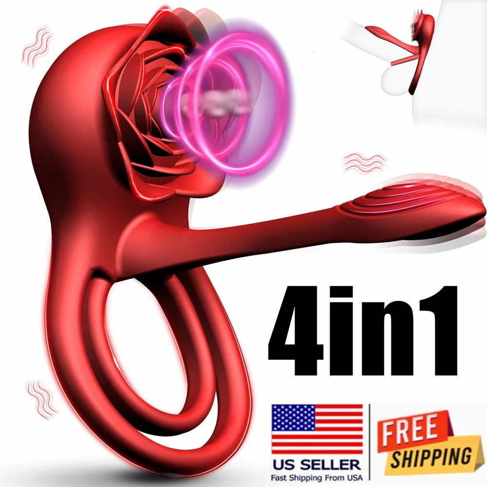 Rose Vibrating Cock Ring G Spot Clit Penis Dildo Stimulator Sex Toys Men Couple Your privacy is important to us. All packages are shipped in discreet, unmarked packages Feature: Synchronous Quartet Stimulus for Penis, Testicles, C Spot, and G Spot- Paired with 2 rings for erection and constriction,the rose vibrator closely stimulates the C-spot. The front-end vibrator fits the penis and unleashes intense vibration to G spot! Thickening His Penis, Amplifying His and Her Delight- The 15°curved design in the front-end vibrator brings the perfect fit for penis and is ultra-soft for ultimate comfort for both. Enjoy his thickening penis and enter a new level of sex pleasure. Rose-shaped Couples Vibrator for Layered Stimulation- With its petal design tailored for sensitive areas, the female vibrator offers multi-layered provocation. Central stamen for precise clitoral targeting, creating widespread sensations in the body. Built-in Powerful Dual Motors & Intense 9 Vibrations- Equipped with two motors, one for gentle clitoral arousal and the other for a more intense massage to the penis and G spot. Sync the external and internal stimuli with adjustable 9 vibrations. 2-in-1 Vibrating Cock Ring Wraps Shaft and Perineum Firmly for Stable Pleasure- Two vibrating penis rings, a scientifically designed 0.3-inch space, are linked at one point for stable pleasure. Its uneven size perfectly loops you in the right places. All-in-one Couple Vibrator, Multiple Benefits- Combined with the erect cock ring, thick penis sleeve, and multiple sensitive stimulation couples sex toys, this all-encompassing sex toy offers an all-in-one solution for various sex play ways. Multiple Sex Positions Fun- Whether it's the missionary, doggy style, or male-male intimacy, its flexible design allows for seamless integration into any position to stimulate any sensitive points, ensuring maximum stimulation and pleasure. Soft Stretchy High-Quality Materials -Crafted from soft, stretchy silicone, this sex toys for men comfortably fits all penis sizes. Its durable and flexible design ensures a snug, comfortable fit without breaking, even when stretched extensively. Longer, Harder, Stronger- The male sex toy, with an adjustable dual-ring design, comfortably secures both penis and testicles. Enhance erections and prolong climaxes by restricting blood flow, thereby increasing hardness, stamina, and performance. DC Charging Port and Whisper Quiet - This penis vibrator is quiet, waterproof, and easy to clean, featuring a convenient USB magnetic charging port. It comes in discreet packaging with a storage case and is recommended for use with water-based lube. specification: Thread material: ABS + Silicone Color: Red Type:Vibrating Powered by: USB magnetic charging Image Size: As the picture shows note: There could be some slight differences in the color tone of the pictures and the actual item. Please allow 1-4mm differs due to manual measurement, thanks. Package Included: Vibrator USB Charging Cable Instruction Manual Your privacy is important to us. All packages are shipped in discreet, unmarked packages