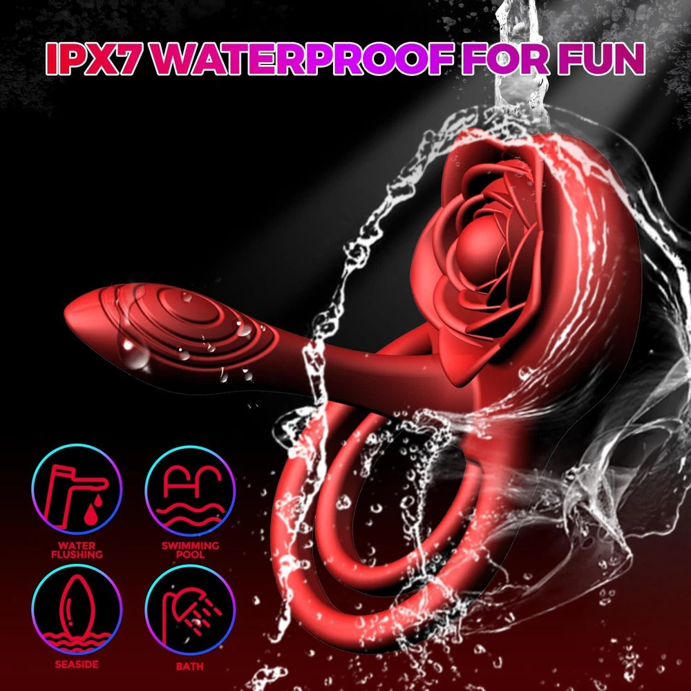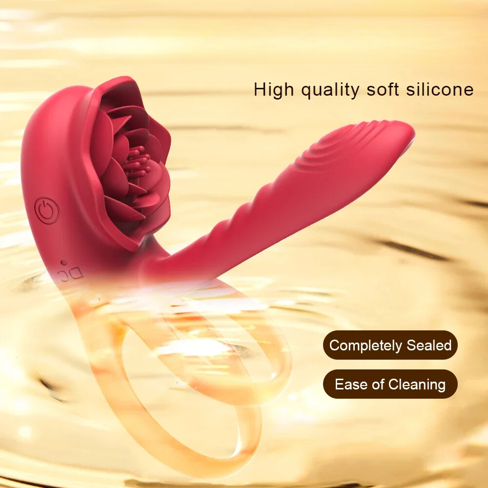 Rose Clitoral Vibrator with Thrusting Dildo & Nipple Suckers for G-Spot Massage