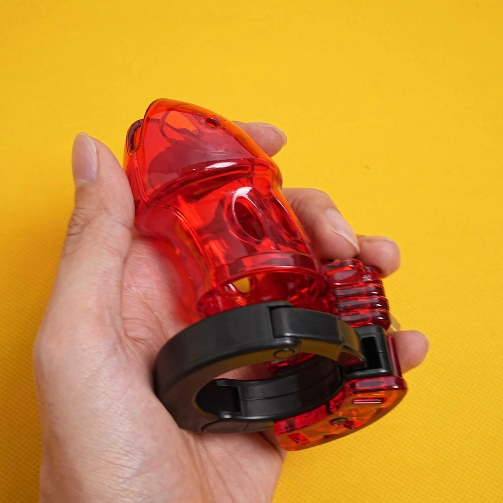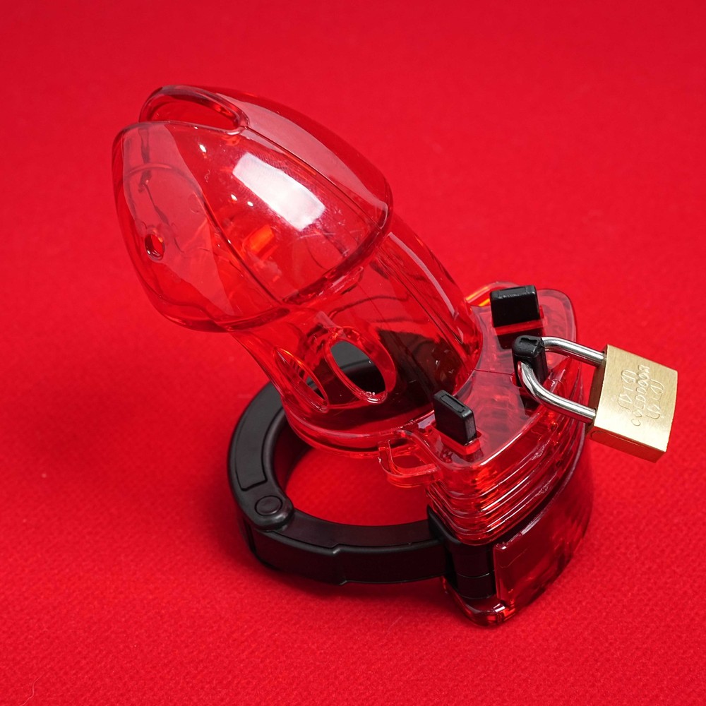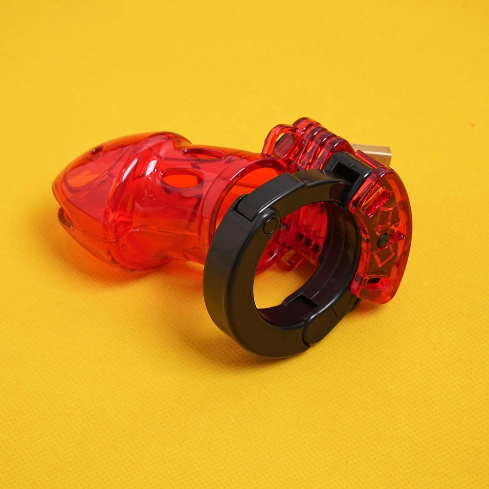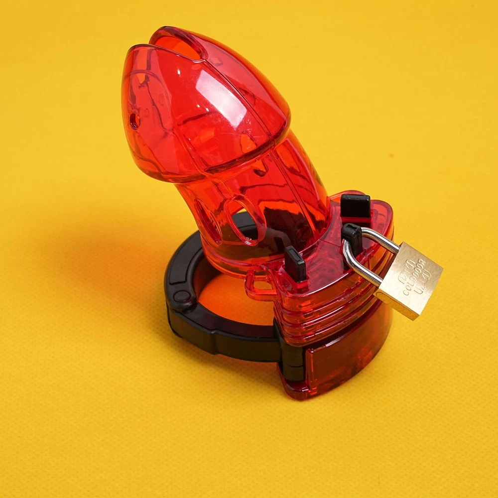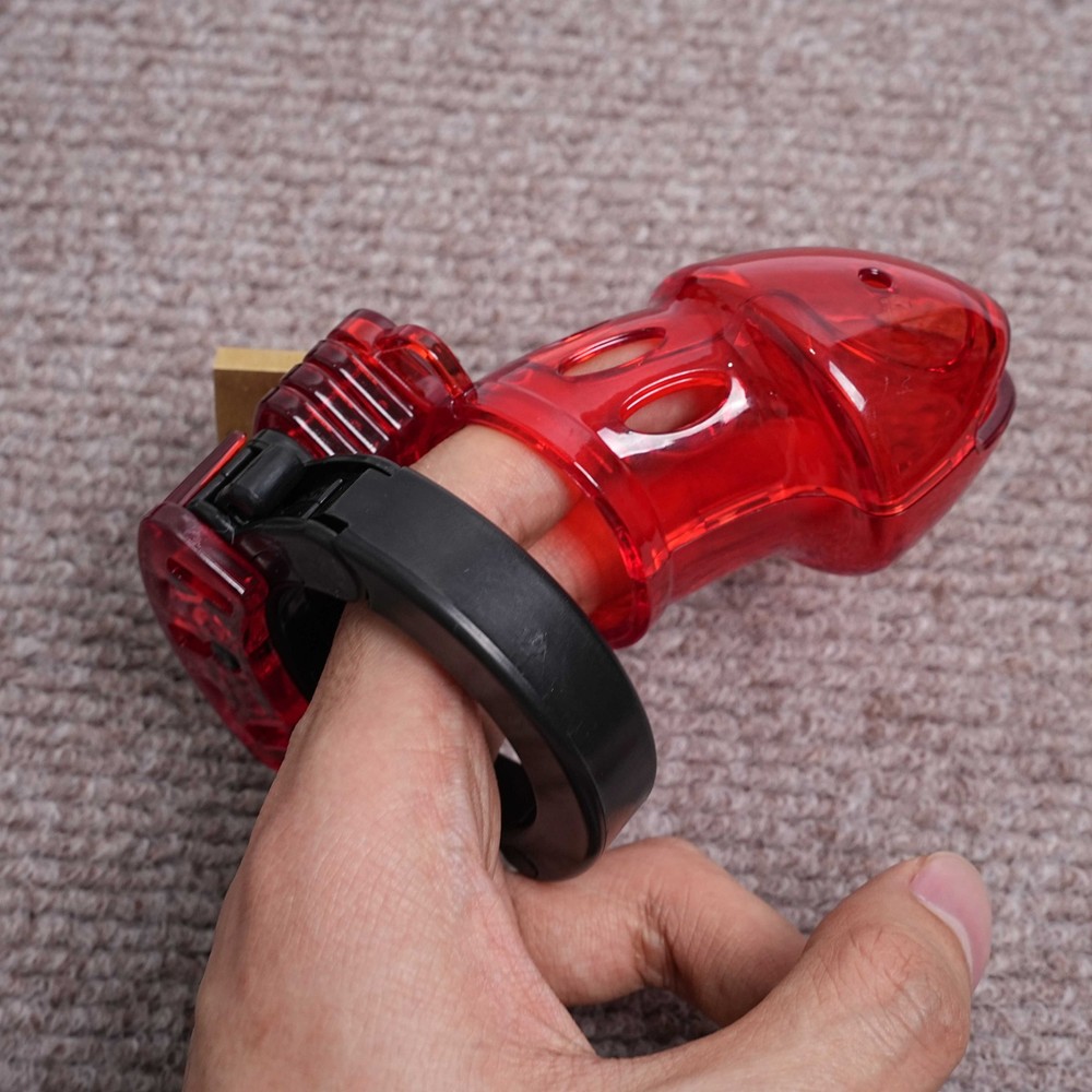 Private Shipping Penis Male Chastity Cage Cock Ring Plastic Adjustable Lockable Device Adults Men Restraints Sex Aid Production Description Material: Plastic Color: Red Size: Total cage length: about 9cm/3.55in Ring diameter: 3.8cm/1.5in Cage diameter( the widest part): 4.6cm/1.8in Net Wei ght: 85g More details, please refer to product picture. Package Include: 1* chastity cage