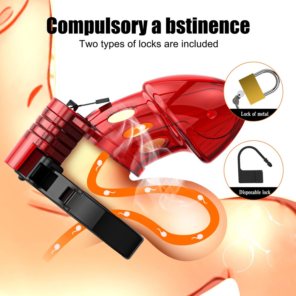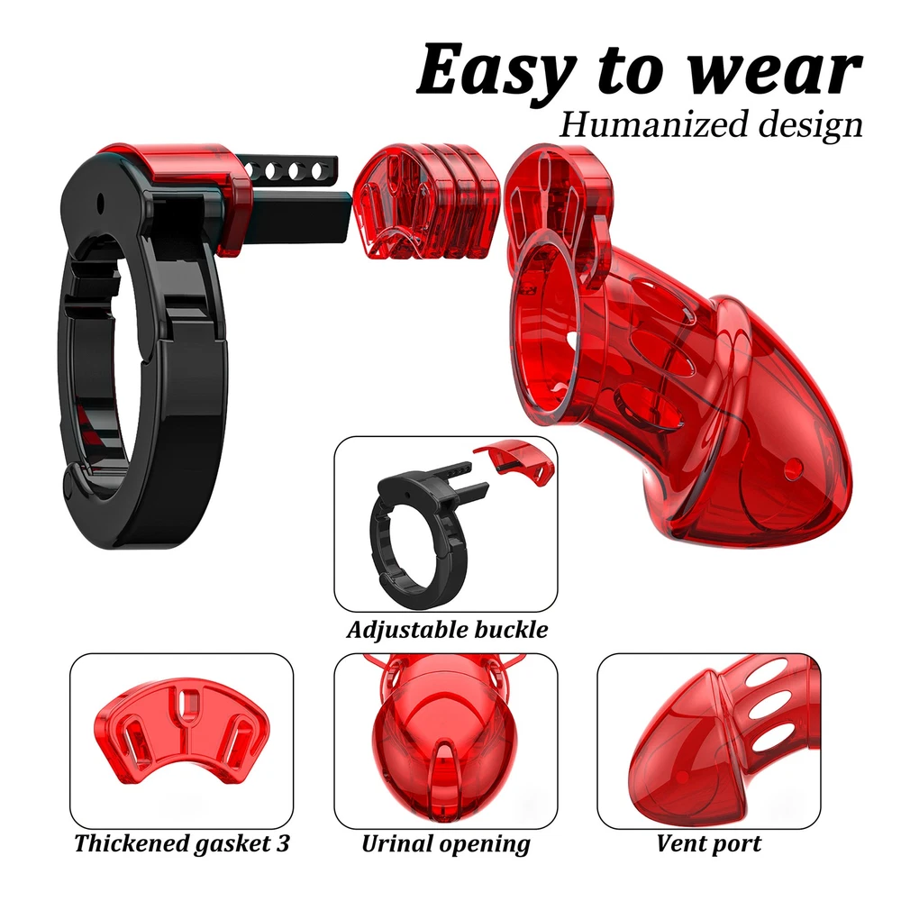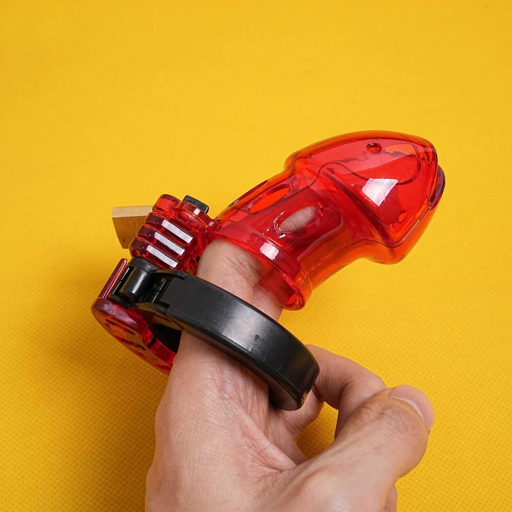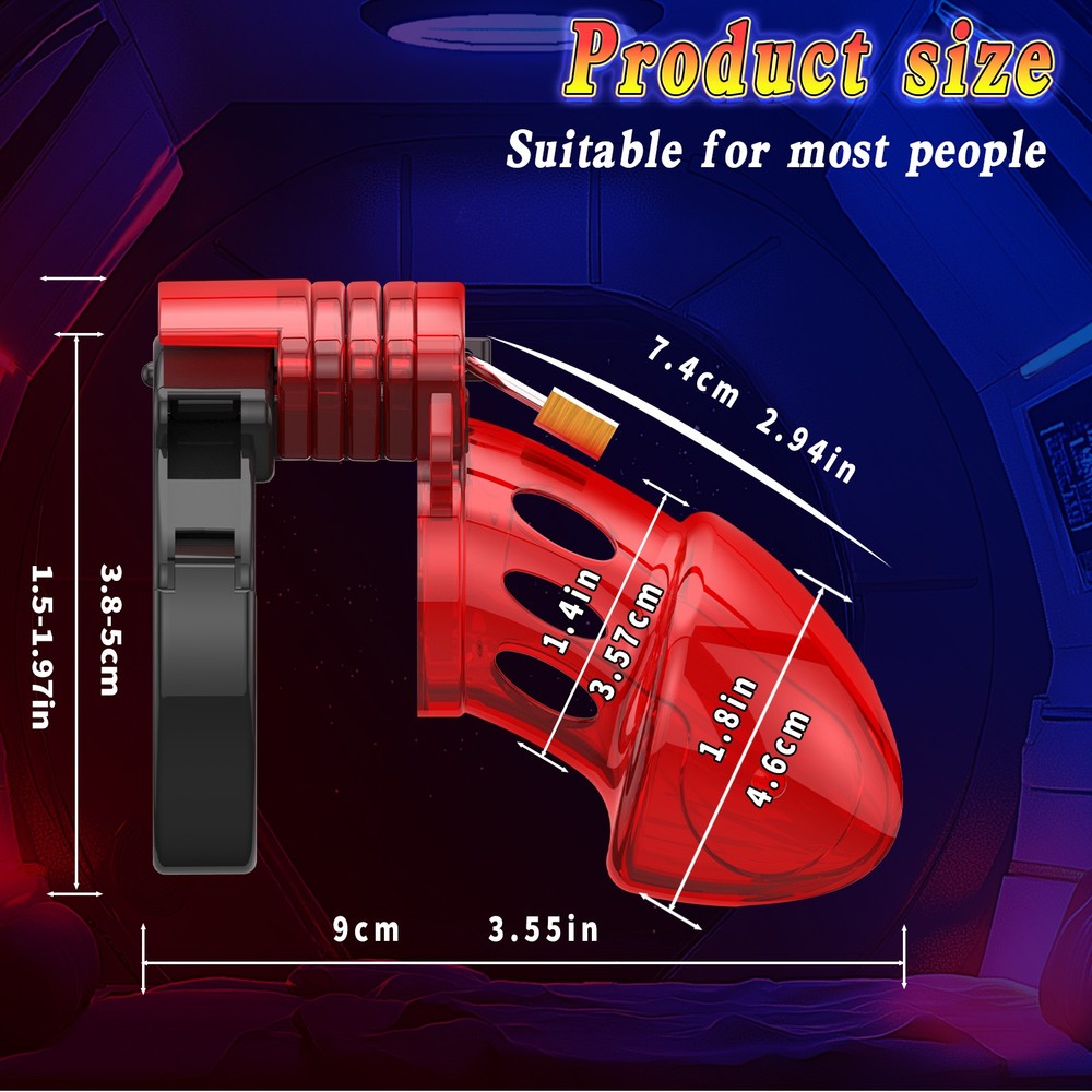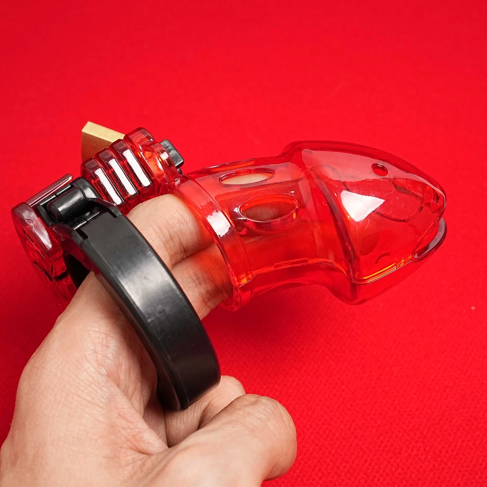 Private Shipping Penis Male Chastity Cage Cock Ring Plastic Adjustable Lockable Device Adults Men Restraints Sex Aid Production Description Material: Plastic Color: Red Size: Total cage length: about 9cm/3.55in Ring diameter: 3.8cm/1.5in Cage diameter( the widest part): 4.6cm/1.8in Net Wei ght: 85g More details, please refer to product picture. Package Include: 1* chastity cage