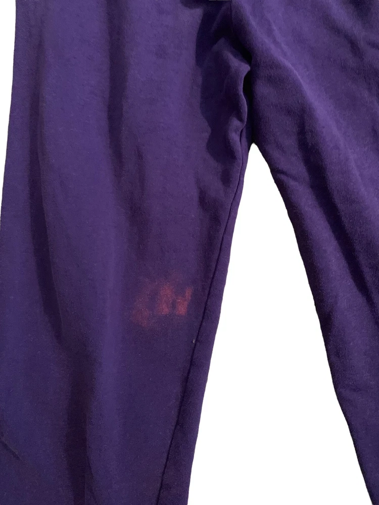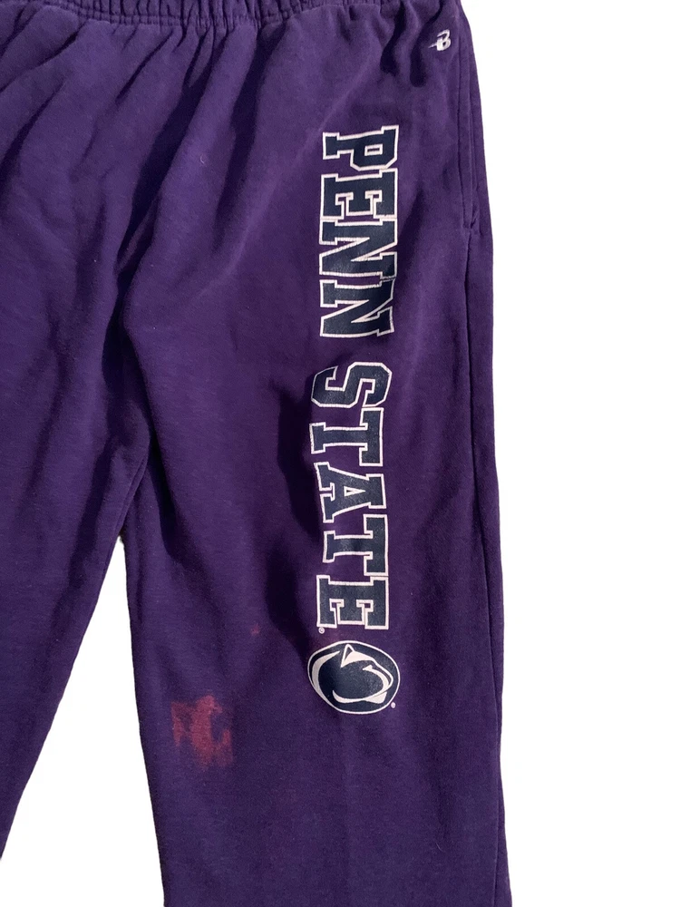 Penn State Unisex Sweatpants Size: XL Inseam-30". Waist (relaxed)28'. Rise- 13.5". Features & Accents: Purple, Heavyweight, Elastic Waist with Drawstring, Pull on, Wide Leg, Spell out of Penn State & Logo on leg. Condition. Pre owned with minor discoloration to leg area. Please see photos. Smoke Free Home. Same day shipping if purchased by 3:00 PM, EST. International Sales Ship through Ebay International Shipping Program. Free Returns. We truly try to disclose all information on items we list. However if we miss something, please contact us before leaving negative feedback and allow us to resolve the problem or issue a returns. Your choice. Thank you.