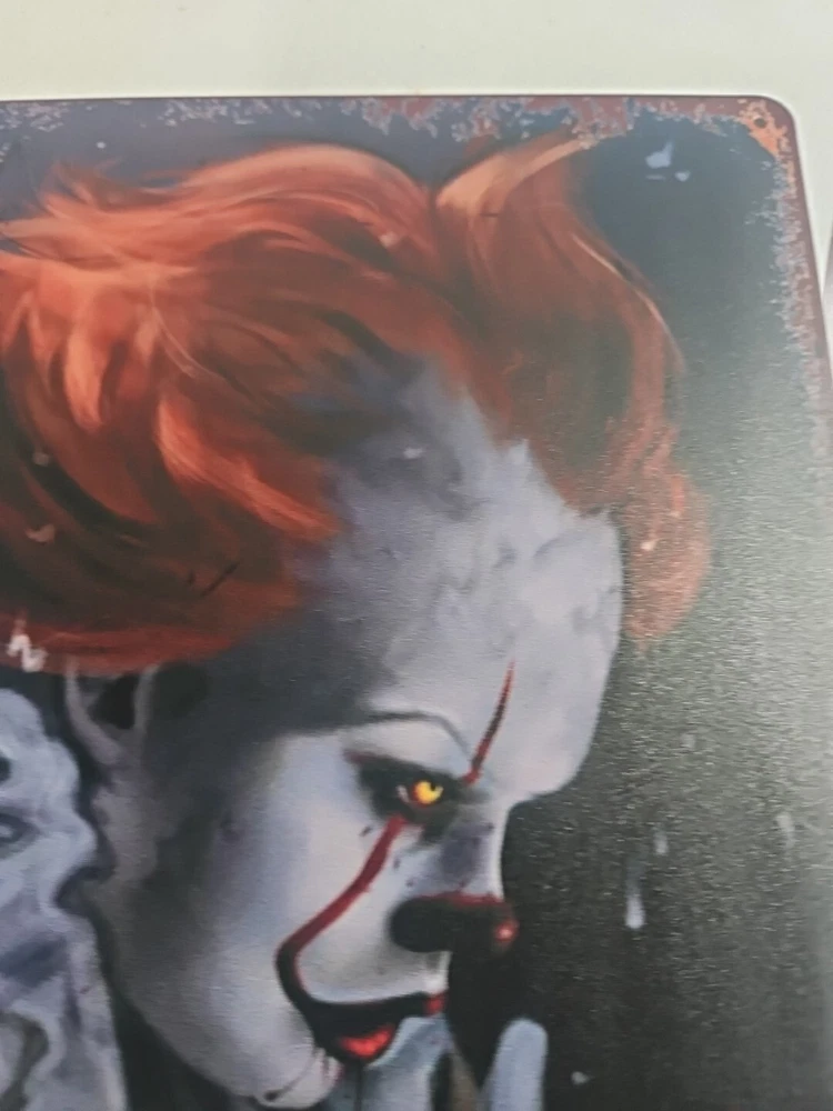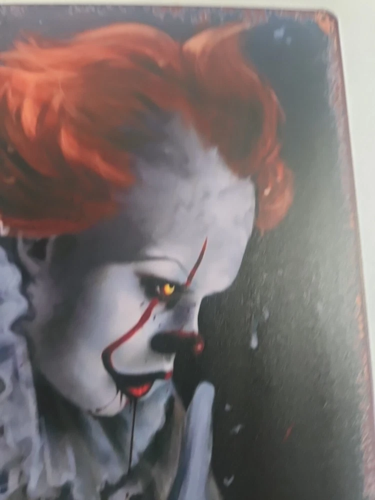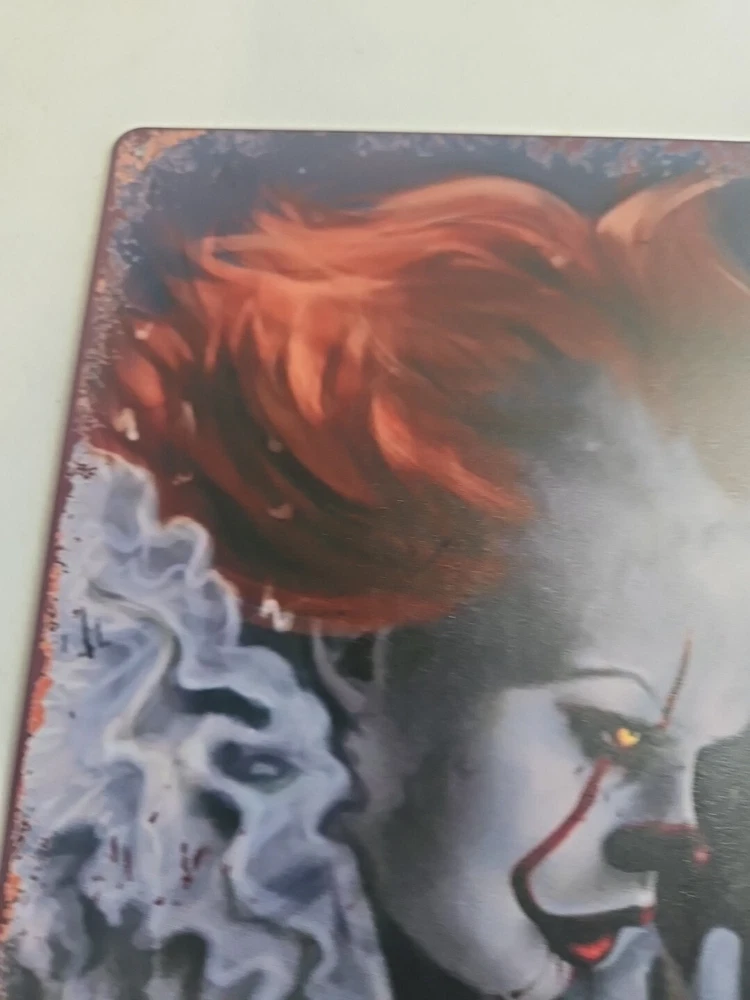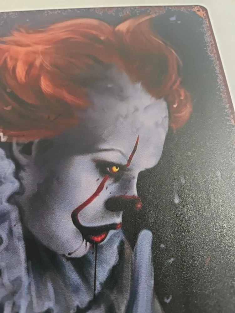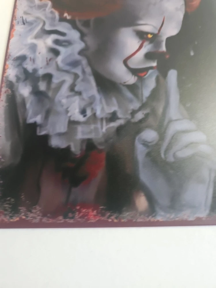 Add a touch of horror to your home décor with this rustic-looking 8x12 metal sign featuring the scary clown, Pennywise. The colorful and eye-catching design makes it the perfect addition to any room, whether it's your living room, bedroom, or even your garage. This sign is made of high-quality metal, ensuring that it will last for years to come. The sign is versatile and can be mounted on the wall, door or hung using the provided hanging features. It is ready to hang and comes with all the necessary accessories. The sign's size is perfect for indoor or outdoor decoration. Get ready to scare your guests with this unique and scary Pennywise sign.