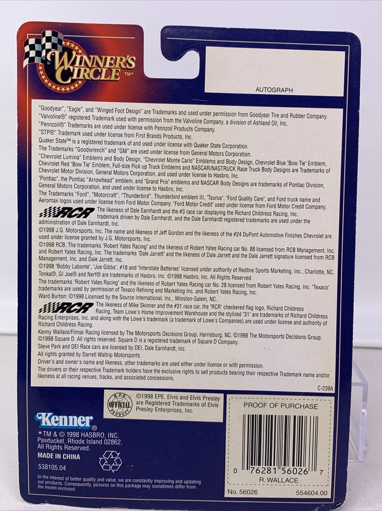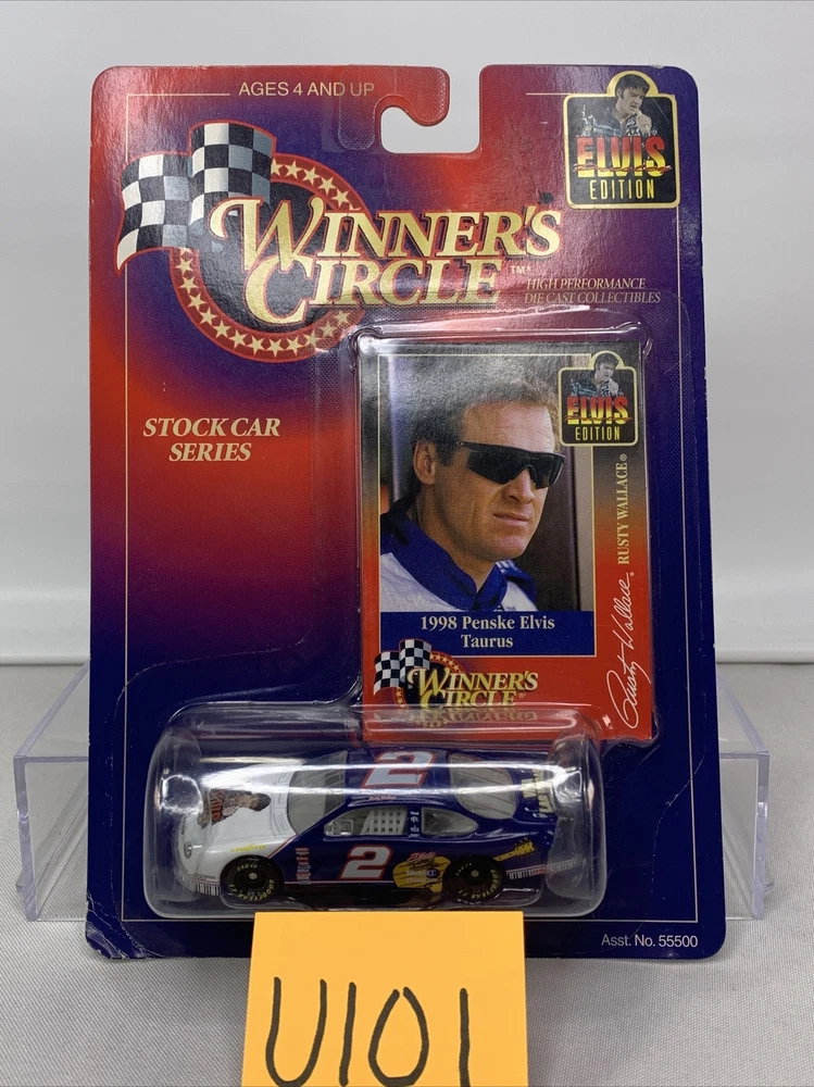 This Winners Circle Penske Rusty Wallace Elvis #2 1998 Ford Taurus 1:64 Die Cast U101 is a must-have for any NASCAR fan. The car is beautifully designed with multi-color paint and features Rusty Wallace's name on the driver side. The 1:64 scale model is made of die-cast material and comes in an unopened box, making it a great addition to any collection. This collectible item is part of the Stock Car Series and is a Ford Taurus model produced in 1998. It's perfect for display or as a gift for a loved one who NASCAR. Don't miss out on the opportunity to own this amazing piece of racing history.