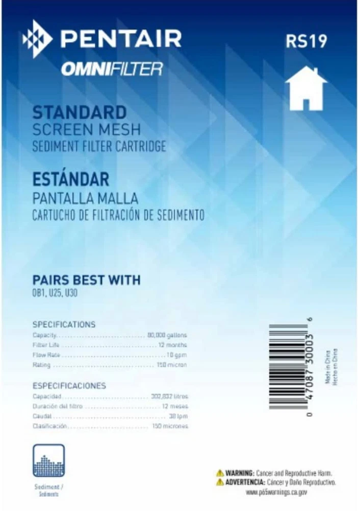 Store New Arrivals Add to Favorite View Feedback Contact Pentair RS19 Sediment Water Filter, 10-Inch, Standard Whole House Screen Mesh Sediment Cartridge, 10" X 2.5", 150 Micron, White Description Item model number RS19 External Testing Certification NSF Product Dimensions 2.5"D x 2.5"W x 10"H Material Pleated Polyester Country of Origin China Product Benefits Reduces Sediment Item Weight 0.3 Pounds Is Discontinued By Manufacturer No GREAT SEDIMENT PRE-FILTER for use on water that has large sediment particles (filters out particles down to 150 microns); works with well and city water applications PAIRS BEST WITH Pentair OMNIFilter U24, U25, U30, OB1 and WH5 10" Standard Filter Systems FITS 10" standard filter housings from most major brands and can replace any 10" x 2.5" sediment filter cartridge REUSABLE/CLEANABLE SCREEN SEDIMENT CARTRIDGE with removable end caps that can that allow for easy cleaning of trapped sediment inside and outside the cartridge (remove and clean every 3 months) 80,000 GALLON CAPACITY. Replace every 12 months or when you notice a drop in water pressure or water quality Pentair OMNIFilter RS19 filter cartridge uses a reusable/cleanable screen cartridge to filter out larger particles of sediment and dirt. A 150 micron mesh screen is bonded to a polypropylene support cage and has removal endcaps. The end caps can be removed to allow for easy cleaning of any trapped sediment inside and outside the cartridge. The cartridge can be reused a number of times and is great as a pre-filter in any home with water that has large particles of sediment that need to be removed. Great for well water and city water applications. ABOUT US We offer the best prices around on high quality products. Our E-store includes media such as books, movies, music and games while offering electronics, toys, sporting apparel, clothing, tools, general home, garden items and more. SHIPPING We are always working hard to ensure your package arrives as soon as possible. Please understand that some factors like weather, high postal traffic, and the performance of shipping companies are outside of our control. We offer free shipping to the lower 48 states and ship within 2 business days of payment, usually sooner. We do not accept P.O. Boxes. Please provide a physical address. For shipping outside of the continental USA, we only use eBay's Global Shipping Program.The item is shipped to KY and then sent to the rest of the world. International customers are responsible for all duties and taxes. Continue to check out in order to calculate costs for shipping the item to your country. Messages regarding eBay's Global Shipping Program MUST be directed at eBay EXCLUSIVELY. RETURNS We offer a 30-Day Return Policy on items which you are not completely satisfied with. You have the option for a full-refund or an exchange of the item. No returns are available on items shipped outside of the USA. PAYMENT We accept PayPal. CONTACT US This page content is yet to come Please ad us to your favorite seller and visit again later Thank You CUSTOMER SATISFACTION We try our very best to make sure every customer is completely satisfied. If there's a problem, message us! We're happy to help. WE ACCEPT Copyright © 2021 AutoDS. | All Rights Reserved