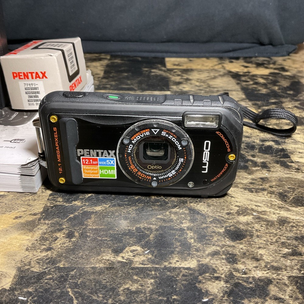 Capture your memories with this high-quality Pentax Optio W90 digital compact camera. With a maximum resolution of 12.1 MP, this camera produces outstanding image quality, and the green color adds a touch of style to your photography. The camera features built-in flash, auto focus, and waterproofing, making it perfect for capturing underwater photos. The lithium-ion battery ensures long-lasting use, and the compact size makes it easy to carry with you wherever you go. This camera comes with accessories to enhance your photography experience.