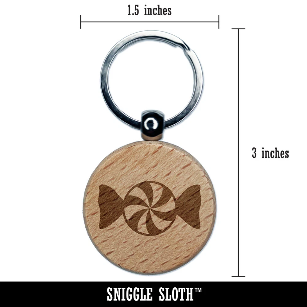 Peppermint Candy Engraved Wood Round Keychain Tag Charm