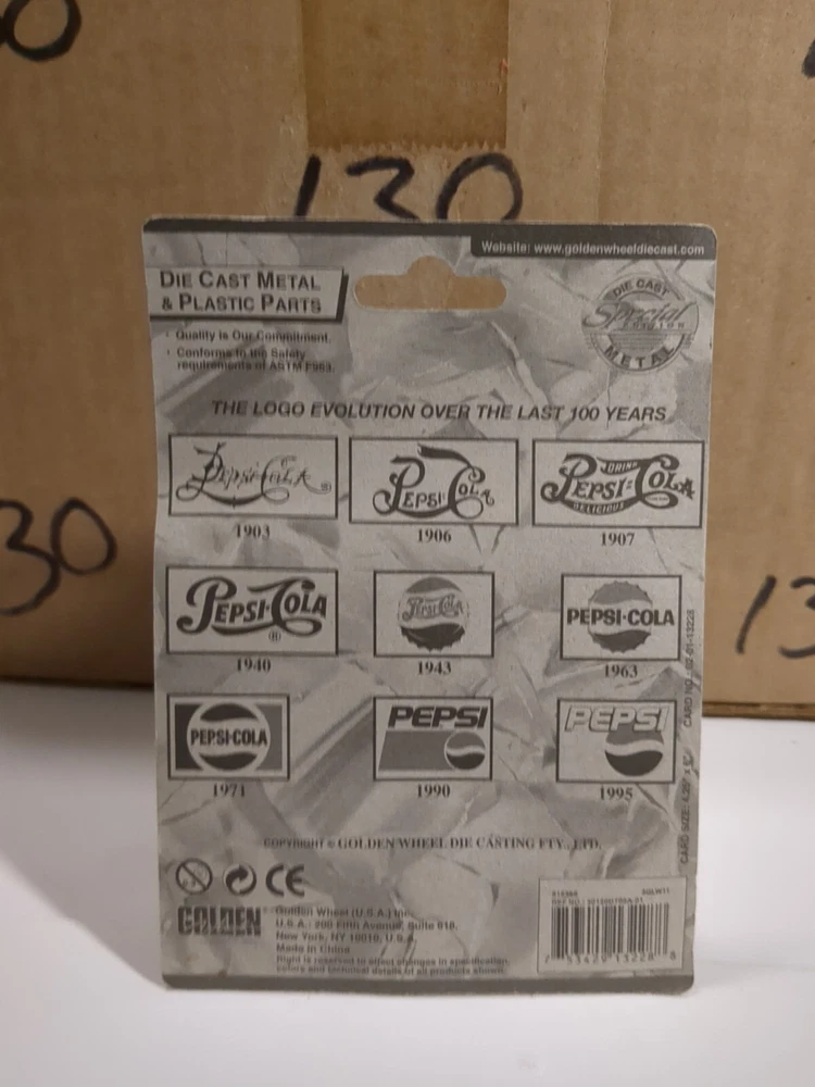 This vintage diecast car from Golden Wheel is a must-have for any car collector. With its colorful multi-color design and 1:64 scale, this advertising specimen is a rare find. The car comes in an unopened box, making it a perfect addition to any collection. The Pepsi Pick Up Truck Car is a special edition diecast vehicle that is suitable for children aged 3 years and above. Made of high-quality materials, this car is a durable and long-lasting toy. It is a great gift for any child who loves cars and trucks. See pics for condition