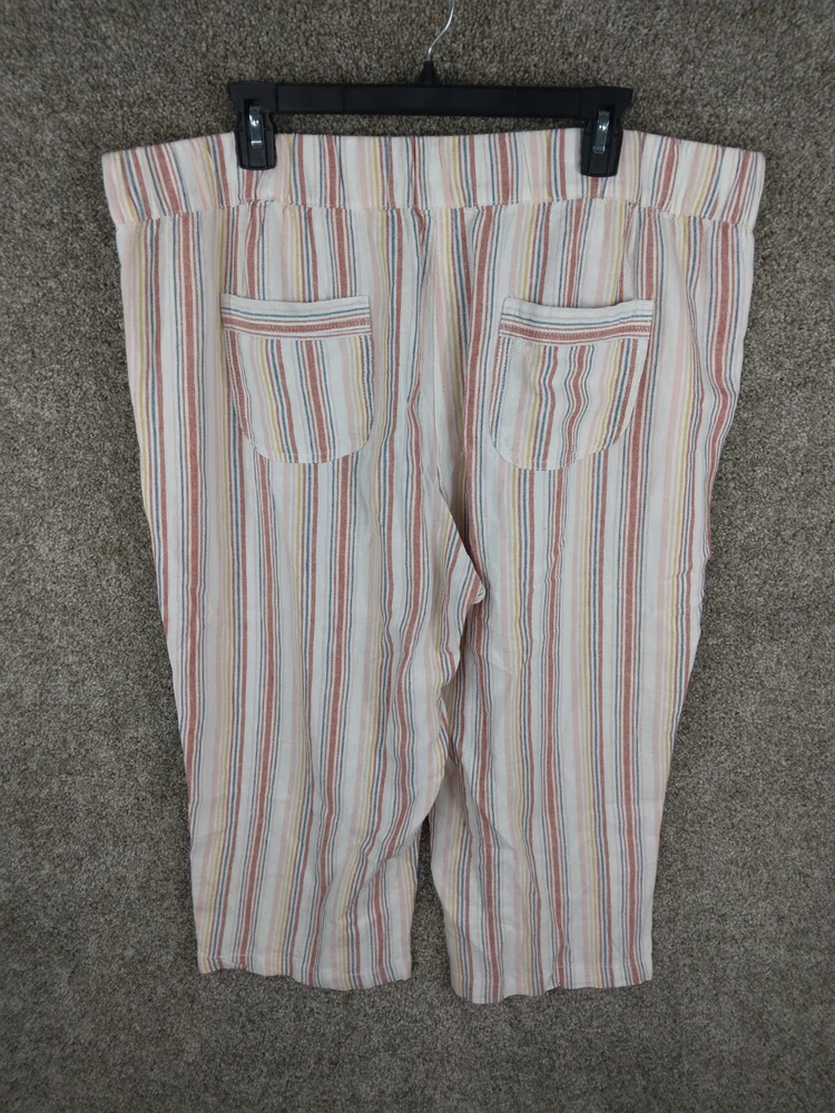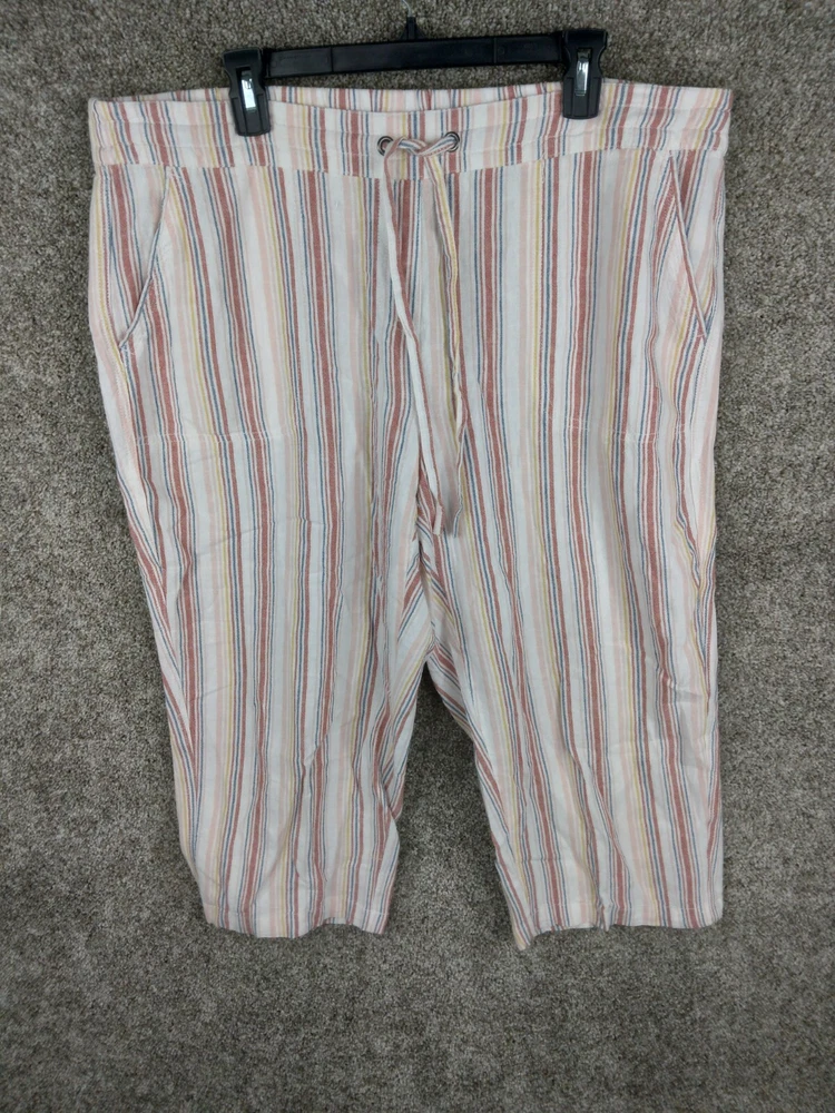 Per Se Linen Blend Pull On Capri Pants Women 1X Plus Multicolor Pinstripe