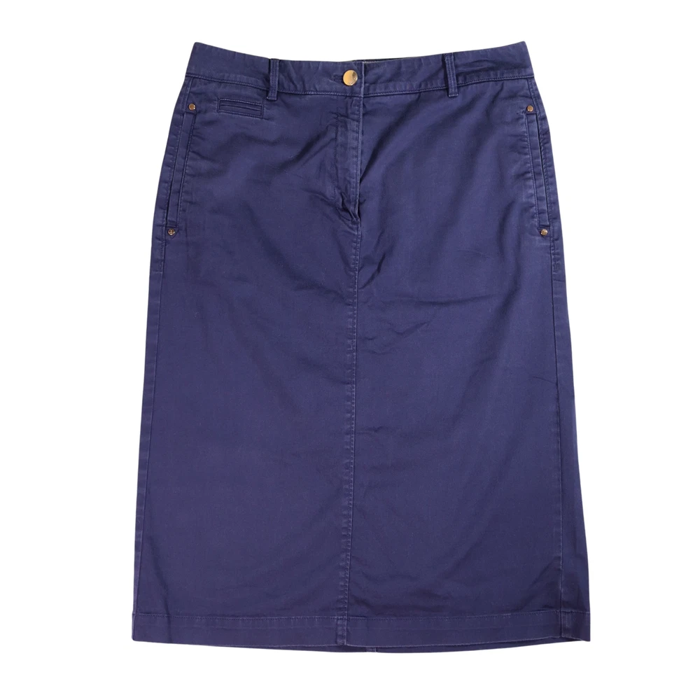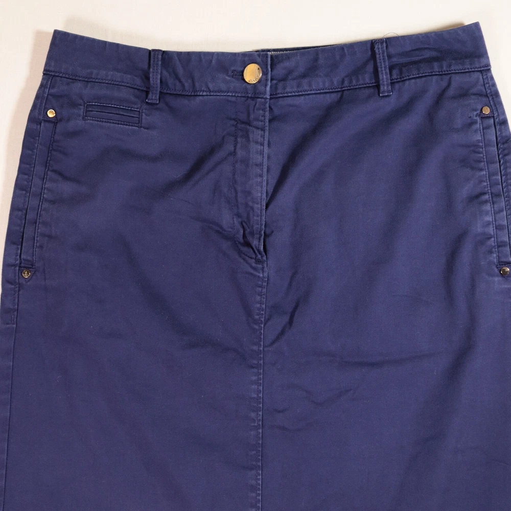 Per Una M&S Midi Skirt Women's UK 12 Navy Blue Pencil Cotton Stretch W31.5 L27 Per Una by Marks & Spencer Navy blue pencil midi skirt, with stretch Waistband with belt loops Canvas-y style material With pockets Gold coloured buttons and accent studs - scratching to main button Size UK 12 MEASUREMENTS (Flatlay, approx): -Waist: 15.75 inches / 40 cm -Length: 27 inches / 68.5 cm Most of our items are sent in 100% bio-degradable, recyclable mailing bags, or sometimes re-used packaging, to help the planet. UK shipping is Royal Mail Tracked 48 (unless otherwise stated) so you can keep up with the progress. Any questions, please ask - I normally reply within a few hours. Also, happy to consider offers.
