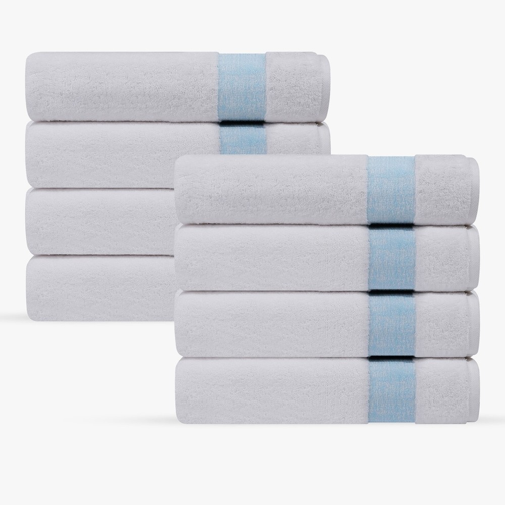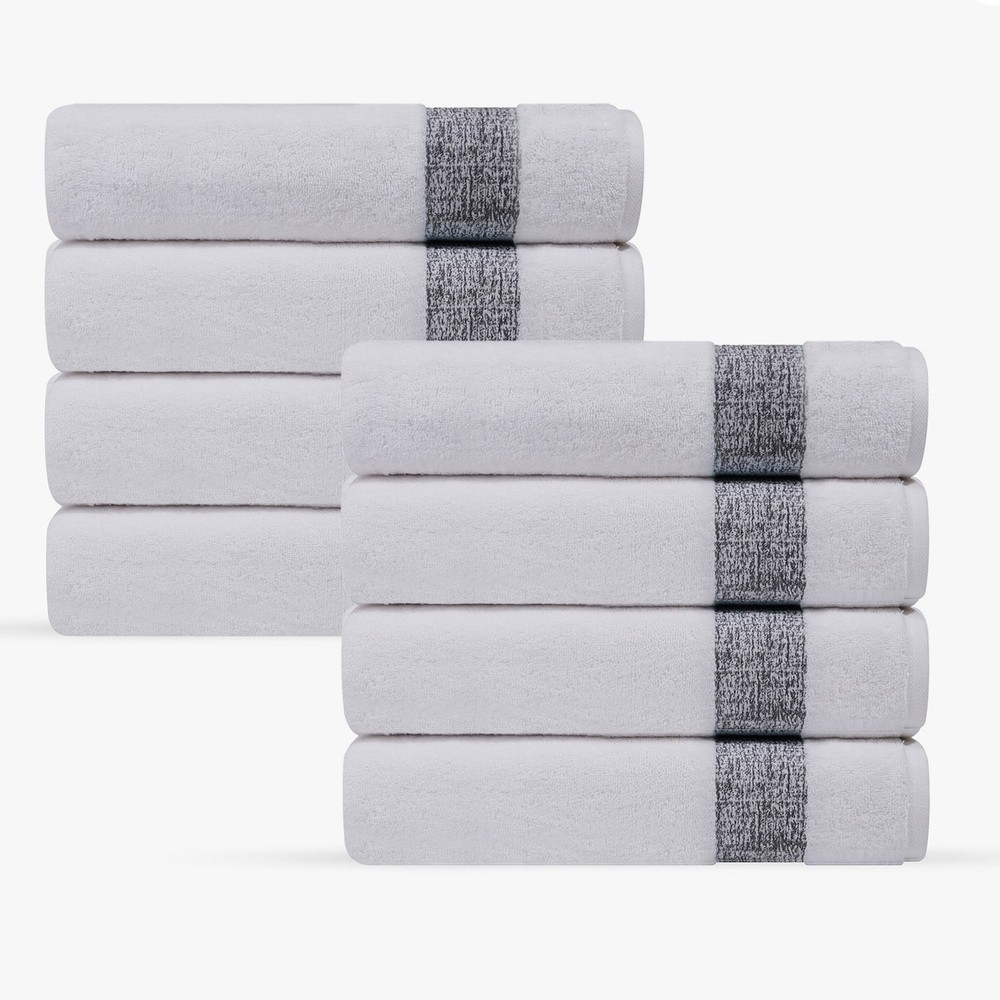 Add a touch of sophistication to your bathroom with our Pera Turkish Towel featuring a distinctive textured band. Crafted from the finest Turkish cotton, this towel combines luxurious softness with superior absorbency for an unmatched drying experience.Premium Turkish Cotton: Made from 100% high-quality Turkish cotton, this towel offers exceptional softness and durability, providing a plush feel against your skin.Distinctive Textured Band: The towel features a unique textured band in a contrasting colors, adding a stylish and modern touch to its classic white design.Highly Absorbent: Designed to absorb moisture quickly and efficiently, this towel ensures you dry off comfortably and swiftly.Durable & Long-lasting: Engineered to maintain its quality through multiple washes, this towel Free Shipping Over $49.99* Details Pera 8 pcs Turkish Hand Towels Set Product Description: Add a touch of sophistication to your bathroom with our Pera Turkish Towel featuring a distinctive textured band. Crafted from the finest Turkish cotton, this towel combines luxurious softness with superior absorbency for an unmatched drying experience.Premium Turkish CottonMade from 100% high-quality Turkish cotton, this towel offers exceptional softness and durability, providing a plush feel against your skin.Distinctive Textured BandThe towel features a unique textured band in a contrasting colors, adding a stylish and modern touch to its classic white design.Highly AbsorbentDesigned to absorb moisture quickly and efficiently, this towel ensures you dry off comfortably and swiftly.Durable & Long-lastingEngineered to maintain its quality through multiple washes, this towel retains its softness and absorbency over time.Generous SizeWith ample dimensions, this towel provides excellent coverage and comfort for all your drying needs.Versatile UseIdeal for use at home, in the gym, or at the spa, this towel's elegant design and functionality make it a versatile addition to your collection.OEKO-TEX® Made in Green certified to have been tested for harmful substancesSet IncludesEight premium Turkish hand towels. Size; Hand Towel28"L x 16"WTo keep your Turkish towels in the best condition, machine wash them in cold water with like colors, and tumble dry on low. Avoid using fabric softeners or bleach to maintain their absorbency and softness.