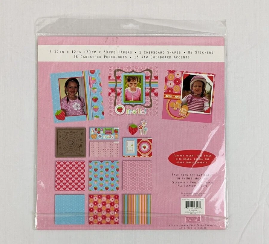 This is a Perfect Pages scrapbook page kit featuring a "So Sweet" theme with flowers and fruits. The paper pieces are 12" x 12" in size and come from China. This rare, brand-new kit includes pre-made pages and pieces for scrapbooking and paper crafts.