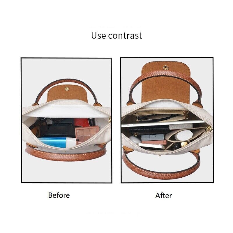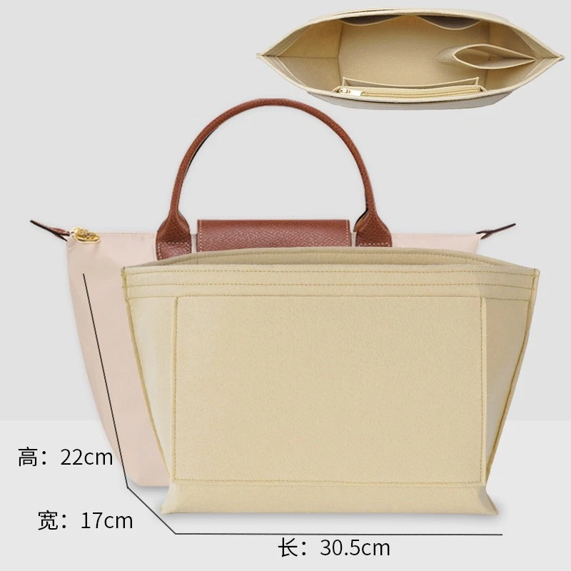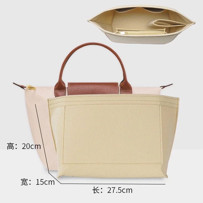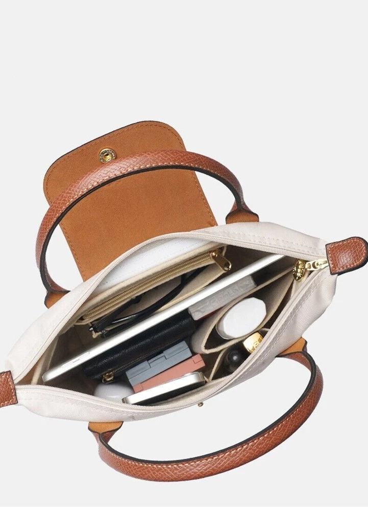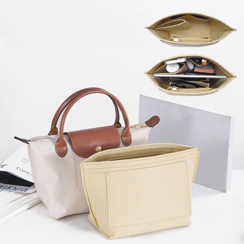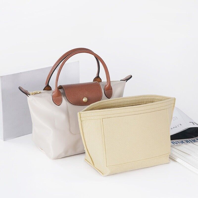 Perfect Purse Organizer Insert W/ Zippers For Longchamp Le Pliage S/M/L Beige
