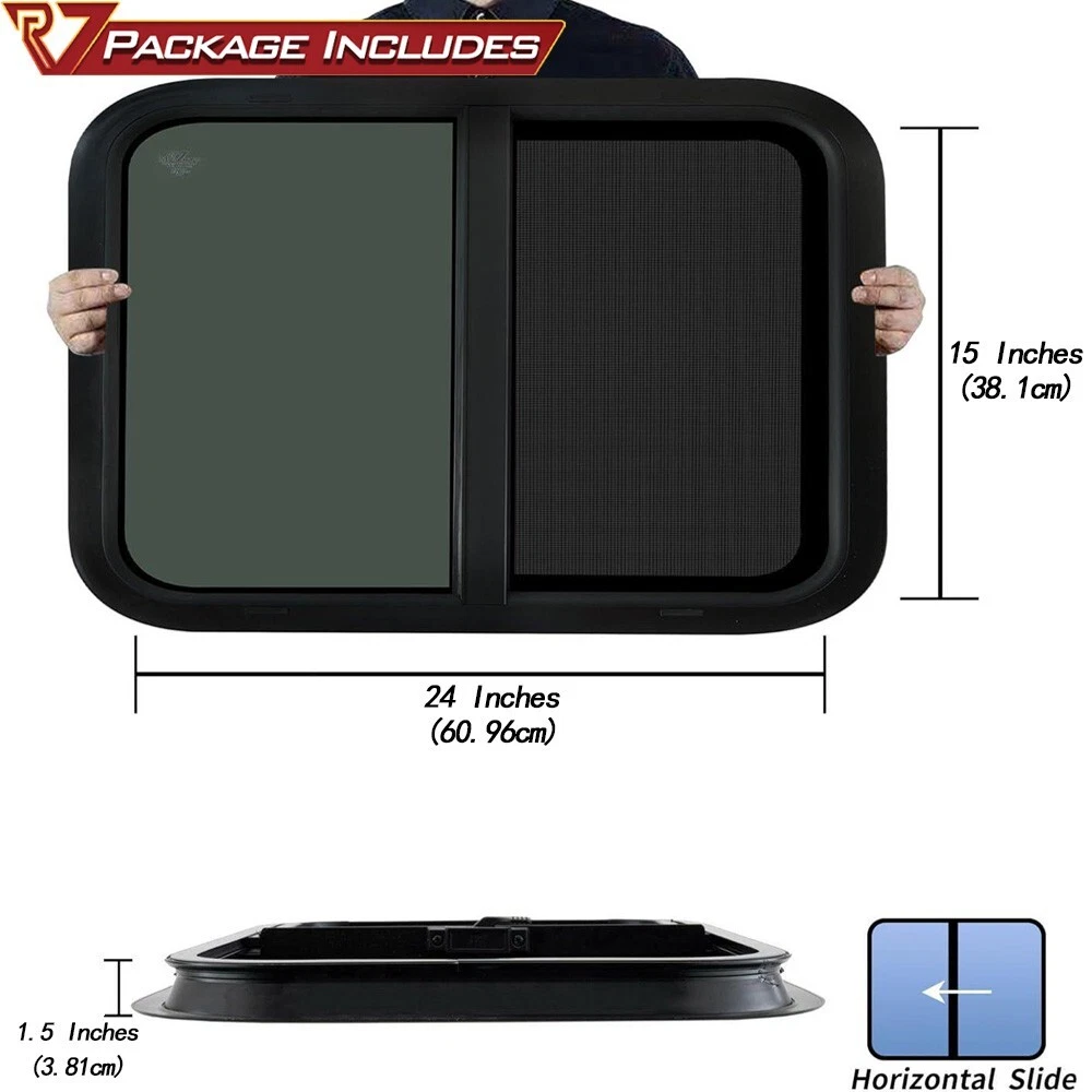 Item Weight: ‎9.23 pounds MPN: RVWINDOWS-2415-1 Part Type: Accessories Color: Tinted Glass Size: 24" Wide x 15" Height Accessories: With Trim Ring,Screen Warranty: 3 Year Country/Region of Manufacture: China DOT Certified, Water Test: Yes Manufacturer Part Number: RVWINDOWS-2415-1 Wall thickness: 1-3/4'' Wall Thickness Brand: RV Murts