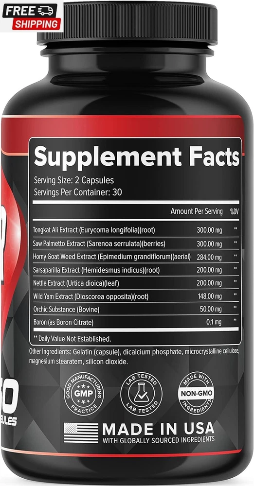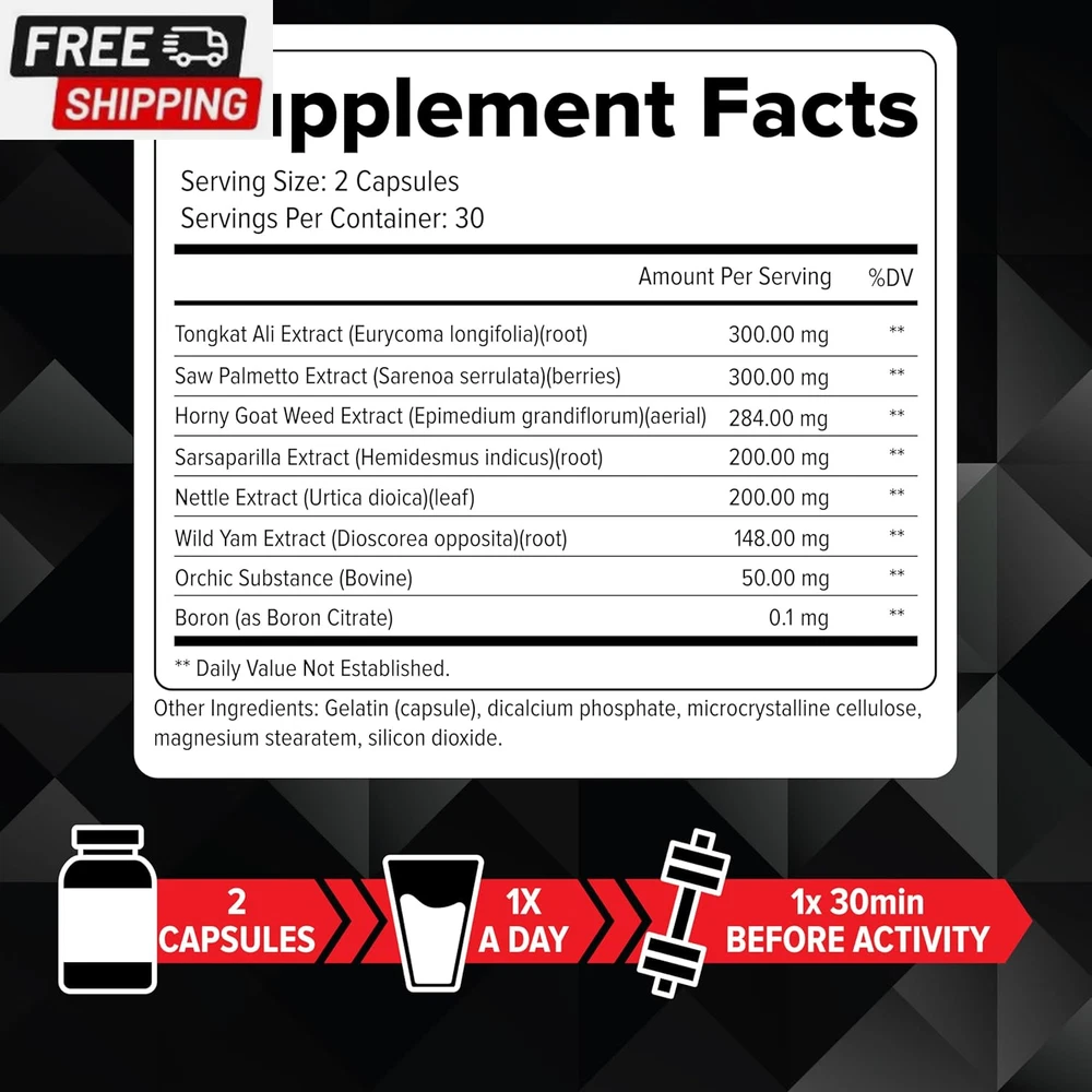 Fast Shipping On All Items 30 Days Money Guarantee Customer Support Excellent Service 100% Satisfaction Satisfaction Guaranteed Performance Booster for Men - Enhance Energy, Endurance, Stamina, Strength, Drive & Muscle Growth - Natural Male Enhancing Supplement with Tongkat Ali, Horny Goat Weed & Saw Palmetto - 60 Capsules Specification Unit Count 60 Count Number of Items 1 Servings per Container 30 Product Benefits Energy Management, Muscle Growth Item Weight 3.21 ounces Material Feature GMO Free Age Range (Description) Adult Diet Type Keto Item Form Capsule Package Dimensions 4.29 x 2.09 x 2.05 inches; 3.21 ounces 2.09 inches x 4.29 inches x 2.05 inches. Weight: 3.21 oz Item Description Product Description FDA Disclaimer: *These statements have not been evaluated by the Food and Drug Administration. This product is not intended to diagnose, treat, cure, or prevent any disease About us We offer the best prices around on high quality products. Our E-store includes media such as books, movies, music and games while offering electronics, toys, sporting apparel, clothing, tools, general home, garden items and more. Shipping We are always working hard to ensure your package arrives as soon as possible. Please understand that some factors like weather, high postal traffic, and the performance of shipping companies are outside of our control. We offer free shipping to the lower 48 states and ship within 2-3 business days of payment, usually sooner. We do not accept P.O. Boxes. Please provide a physical address. For shipping outside of the continental USA, we only use eBay's Global Shipping Program.The item is shipped to KY and then sent to the rest of the world. International customers are responsible for all duties and taxes. Continue to check out to calculate costs for shipping the item to your country. Messages regarding eBay's Global Shipping Program MUST be directed at eBay EXCLUSIVELY. Returns We offer a 30-Day Return Policy on items in which you are not completely satisfied with. You have the option of a full-refund or an exchange of the item. No returns are available on items shipped outside of the USA Satisfaction We try over very best to make sure every customer is completely satisfied. If there's a problem, message us! We're happy to help. Payment Options Shop With Confidence