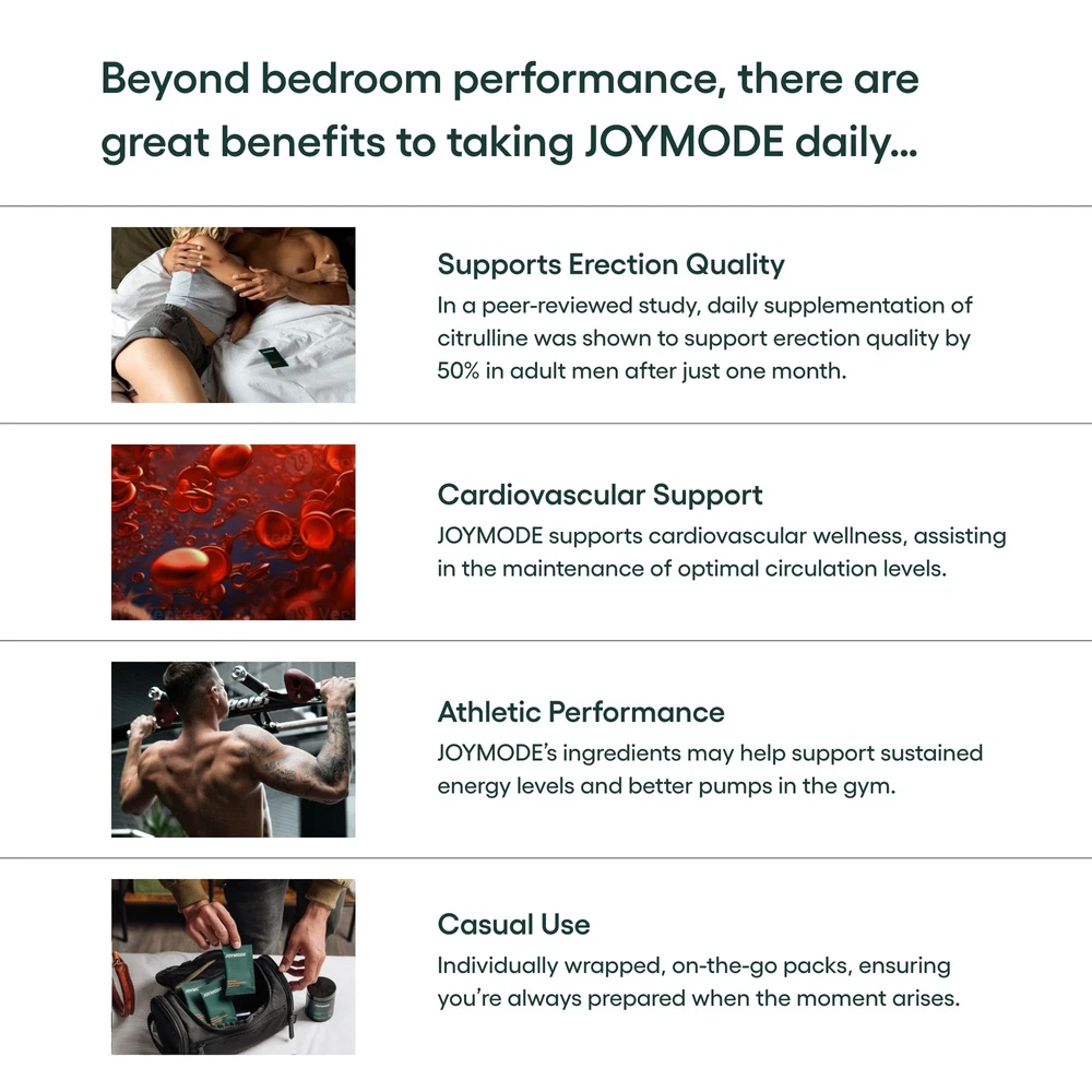 Performance Booster w/Arginine Nitrate, L-Citrulline, Vitamin C, and Ginseng - 30 Servings - Supports Nitric Oxide Blood Flow and Erection Quality Powered-Up Performance: Take your performance in the bedroom and gym to the next level with our Nitric Oxide Supplements for Men. It supports blood flow, performance, and general wellness. Natural Blood Flow Support: Designed by nutritional biochemistry PhDs, this nitric oxide supplement supports nitric oxide flow, efficient circulation, and oxygen utilization to ensure amazing performance in both the gym & bedroom. Potent Ingredients, Consistent Energy: Joymode’s Performance Booster is formulated with science-backed doses of natural ingredients like Arginine Nitrate, L-Citrulline, Panax Ginseng, & Vitamin C for maximum efficacy. It's the ultimate nitric oxide booster for men. Formulated by Experts: We want to ensure you get the best of the best! Our supplements are made in the USA, certified gluten-free, GMP certified, vegan, 3rd-party lab tested, and formulated by scientists & biochemistry PHDs for quality that you can trust. Need Help or Have Questions? If you are unhappy with your purchase, please reach out to us through buyer-seller messaging. We’re here to address any concerns and improve your overall experience, no questions asked. Formulated with science backed doses of natural ingredients like Arginine Nitrate, L-Citrulline, Panax Ginseng & Vitamin C for maximum efficacy. Shipping We offer FREE shipping on all orders! We ship within Three business days of payment, usually sooner. We use a selection of shipping services such as UPS, FedEx, USPS etc. We only ship to the lower 48 states, no APO/FPO addresses or PO Boxes allowed. Local pickups and combined shipping options are not provided at this time. Return You can return a product for up to 30 days from the date you purchased it. Any product you return must be in the same condition you received it and in the original packaging. Please keep the receipt. Payment We accept payment by any of the following methods: PayPal Please pay as soon as possible after winning an auction, as that will allow us to post your item to you sooner! Feedback Customer satisfaction is very important to us. If you have any problem with your order, please contact us and we will do our best to make you satisfied. Contact Us If you have any queries, please contact us via ebay. We usually respond within 24 hours on weekdays. Please visit our eBay store to check out other items for sale! Thank you for shopping at our store.