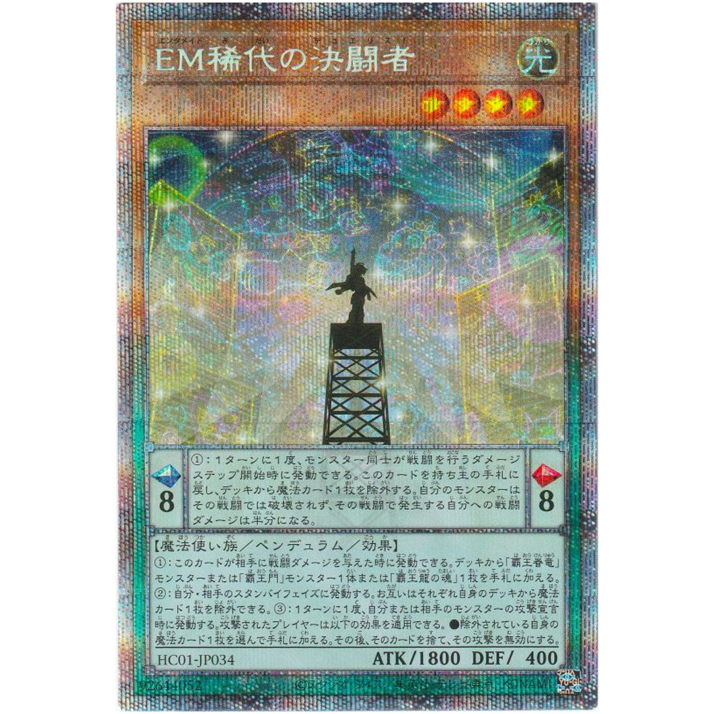 Item Discription HC01-JP034 Performapal Greatest Duelist Front Back Card Name : Performapal Greatest Duelist Character : Performapal Greatest Duelist Rarity : Prismatic Secret Rare Card Number : HC01-JP034 Set : History Archive Collection Type : Effect Pendulum Monster Language : Japanese Card Condition : Near Mint Purchased cards will be clipped with cardboard, waterproofed, and shipped without any scratches or folds. Cards over $20 will be packed even tighter with a loader for each card. Shipping Policy Free shipping worldwide. Free shipping does not include tracking. There is an additional cost of US $4 for tracking. If you purchase cards totaling US $30 or more, you will receive a free tracking number. All of the products will be shipped from Japan. Economy Shipping Air mail ( no tracking ) Free Shipping Delivery time : About 2-4 weeks Standard Shipping Air mail ( with tracking ) US $4 Delivery time : About 2-4 weeks Expedited Shipping FedEx or EMS or DHL ( with tracking ) US $24 Delivery time : About 1-2 weeks Payment Policy We accept all major credit cards and Paypal payments. Return Policy We hope you will love your purchase, houever if you need to return it, we have a 30 day return policy. International Buyers Import duties, taxes, and charges are not included in the item price or shipping cost. These charges are the buyerʼs responsibility. Please check with your countryʼs customs office to determine what these additional costs will be prior to bidding or buying. If the cancellation is due to the buyer, wewill charge a fee. If there is a remote charge for your address, we will charge you for additional shipping. We are honored to receive the eBay Japan Awards 2022! I am thrilled to share that my store has won the eBay Japan Awards 2022 ! This amazing accomplishment wouldnʼt have been possible without our wonderful customers. A heartfelt thank you for your ongoing support. We will continue to improve our services, offering a diverse selection of items and top-notch customer care Thank you for helping us achieve this prestigous recognition, and we look forward to serving you in the future! Copyright ©️ 2023 Animart Japan