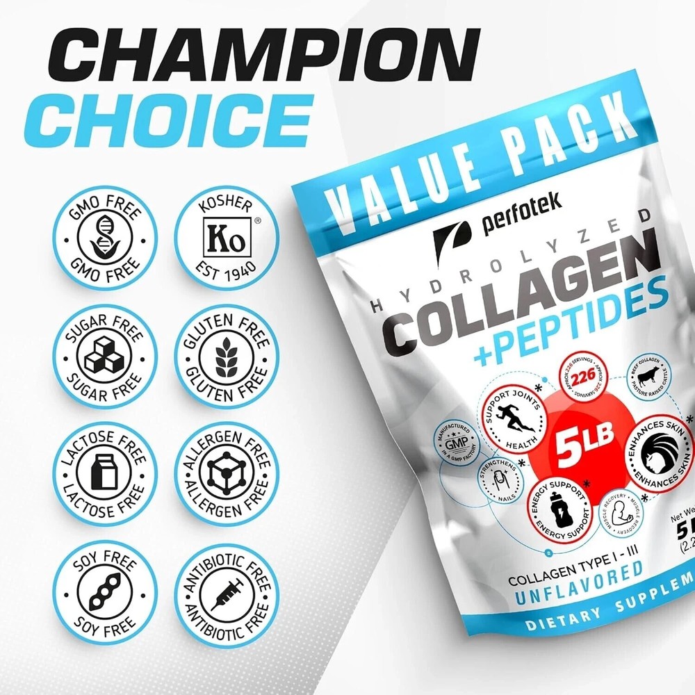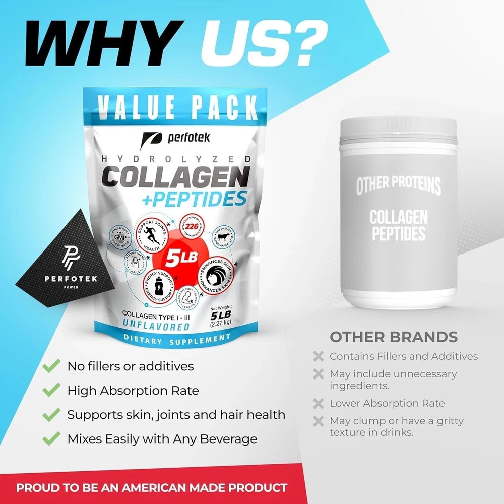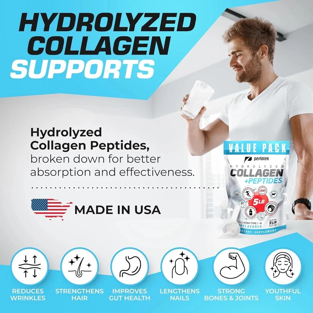 Perfotek Collagen Powder for Women & Men (5Lb) – Types I & III – Unflavored – Easy to Mix – MADE IN USA Size: 5 lb (2.27 kg) Types: I & III Flavor: Unflavored Form: Powder Origin: Made in USA Key Benefits Holistic Wellness Support – Strengthens hair, nails, and overall well-being. Premium Collagen Sourcing – Grass-fed, pasture-raised, top-quality peptides. Joint Health & Flexibility – Perfect for active lifestyles. Seamless Mixing – Dissolves easily in hot or cold drinks. Proudly Made in the USA by a family-owned business. How to Use Add one scoop into water, coffee, shakes, or any beverage of choice. Enjoy daily for best results. 🌟 Check Out More Great Deals from This Seller 🌟 View All My Listings Click the button above to see all available items from my store.