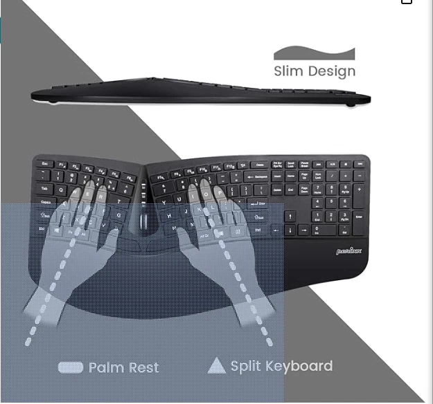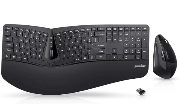 Perixx Periduo-605, Wireless Ergonomic Split Keyboard and Vertical Mouse Combo, Adjustable Palm Rest and Membrane Low Profile Keys, Black, US English Layout (11633)
