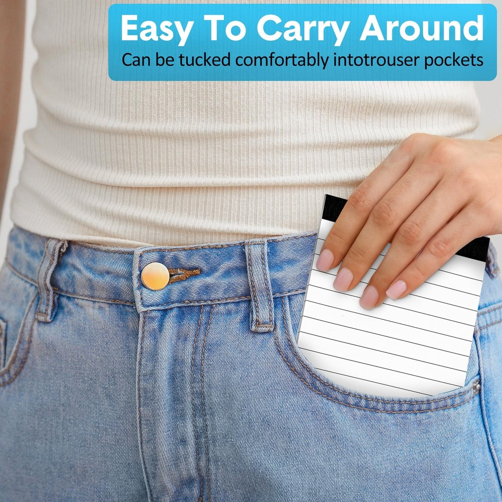 Features: Idea Gift: Give the gift of organization and inspiration with these small notepads. They're suitable for students, colleagues, or anyone who loves to stay organized and creative. Various Occasions: Whether for work, school, or personal use, these small legal pads are a versatile tool for anyone who needs to take notes or jot down ideas in meetings, lectures, brainstorming sessions, and more. Specifications: Material: paper, cardboard Color: black, white Size: 4 x 6 inches Package includes: 100 x Small Notepads Refills Warm notes: Please allow a little error on the size due to manual measurement. Valuable Package: you will receive 100 small notepads, so you get plenty of space to jot down your thoughts, to-do lists and reminders, enough for your daily writing and note taking needs Compact and Convenient: the 4 x 6 inches notepads bulk make them easy to carry around while still providing ample space for note taking, slip legal pads into your pocket, purse, or backpack and always have a place to write down your ideas Reliable Quality Paper: each small lined notepad features quality 80gsm paper that is thick enough to withstand heavy use, smooth on the surface, the single sided printed paper prevents ink from penetrating between pages, ensuring a clean and clear writing experience Easy to Tear: these memo pads are perforated for easy tearing individual sheets without leaving a messy edge, equipped with sturdy and thick cardboard pads, the note pads provides you with neat and orderly lines to keep your records organized and legible Versatile Use: whether you're at home, in offices, at school, or on the road, these small note pads 3x5 are suitable for keeping track of your daily tasks, brainstorming ideas, or even practicing your handwriting, these small writing pads are also the good helper for waiters and waitresses