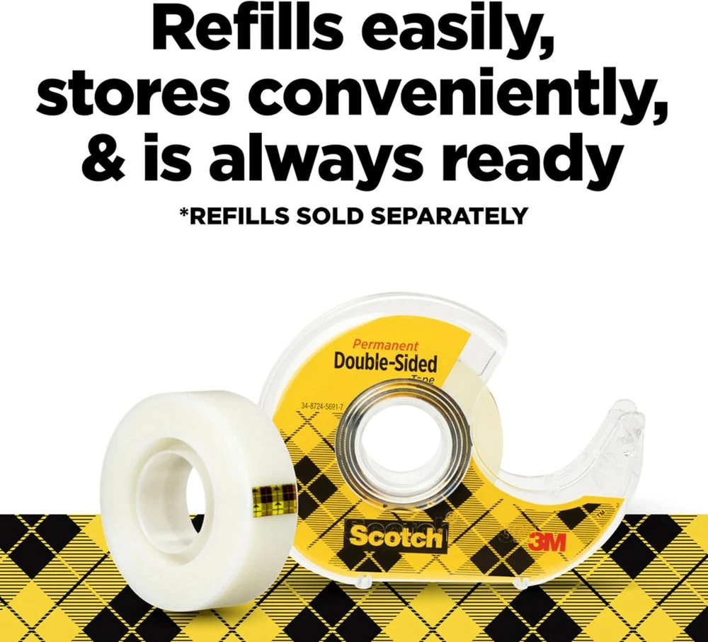 Store New Arrivals Add to Favorite View Feedback Contact Permanent Double Sided Tape, Card Making and Holiday Scrapbooking Supplies, Alternative to Gift Wrap Tape for Wrapping Presents, 0.50 In. X 500 In., 6 Rolls with Dispensers Description Item model number 6137H-2PC-MP Number of Items 1 Material Type Plastic Ink Color Clear Unit Count 6.0 Count Product Dimensions 4"L x 4.69"W x 3"Th Material Plastic Manufacturer Part Number 6137H-2PC-MP Adhesive Format Double Sided Is Discontinued By Manufacturer No Item Thickness 0.5 Millimeters Water Resistance Level Not Water Resistant Adhesive Location both_sides Item Weight 7.4 ounces Item Resistance not_resistant Surface Recommendation Drywall Adhesive Side Count 2 Compatible Material Craft Color Clear Size 6 Rolls DOUBLE SIDED TAPE FOR HOLIDAY GIFTING: 6 rolls of Scotch Double Sided Tape with 6 Tape Dispenser offer a neat, clean, strong and long-lasting way to hold gift wrap and gift bags together, making it essential this holiday season MESS-FREE BONDING ADHESIVE: Both sides of the tape are coated with permanent adhesive for a strong, secure hold without the drips, clogs and air bubbles similar to white glue, making it a great alternative to other adhesives traditionally used on presents INVISIBLE TAPE: This double-sided clear tape holds things together without being seen, making it essential for gift wrapping, holding Christmas boxes together and other activities that require bonding this Christmas season TAPE WITH NO LINING, HAS PROTECTIVE WRAP: While the tape does not have a peel away liner, unlike scrapbook tape, there is an 8" protective liner that needs to be removed before tape can start dispensing IDEAL FOR HOLIDAY SUPPLIES: Perfect for creating scrapbooks, easy ornaments, Christmas cardmaking, paper crafts, gift wrapping, collages, mixed media art and Christmas party decorations TAPE DISPENSERS INCLUDED: Tape glides off these easy-to-use Scotch tape dispensers (included) smoothly PACKAGE CONTENTS: One package with six dispensers containing six tape rolls that are 0.5 in. x 500 in., with a 1-in. core SCOTCH BRAND: The best projects start with the #1 selling home and office tape Scotch Permanent Double Sided Tape with a Tape Dispenser offers a neat, clean, strong and long-lasting way to discreetly hold holiday decorations together. This clear tape is a great choice for Christmas gifts containing craft kits for adults and kids, acting as a convenient double sided tape for scrapbooking or card making. You can also use this photo-safe tape to create holiday collages, Christmas cards or a seasonal photo album. Both sides are coated with permanent adhesive, giving a strong, secure hold and providing a less messy alternative to glue and other adhesives. The tape itself has no peel away liner, unlike scrapbooking tape, but you will need to remove the protective liner before dispensing the tape. The tape dispenser (included) fits neatly into holiday gift bags and is always ready to help get the job done with easy-glide application. The best projects start with the No. 1 selling home and office tape (based on 2022 NPD data). By choosing to use the right tape, you’re choosing to create a better result. Scotch Brand offers a full line of tapes specifically designed for the various demands of the project or job. ABOUT US We offer the best prices around on high quality products. Our E-store includes media such as books, movies, music and games while offering electronics, toys, sporting apparel, clothing, tools, general home, garden items and more. SHIPPING We are always working hard to ensure your package arrives as soon as possible. Please understand that some factors like weather, high postal traffic, and the performance of shipping companies are outside of our control. We offer free shipping to the lower 48 states and ship within 2 business days of payment, usually sooner. We do not accept P.O. Boxes. Please provide a physical address. RETURNS We offer a 30-Day Return Policy on items which you are not completely satisfied with. You have the option for a full-refund or an exchange of the item. No returns are available on items shipped outside of the USA. PAYMENT We accept PayPal. CONTACT US This page content is yet to come Please ad us to your favorite seller and visit again later Thank You CUSTOMER SATISFACTION We try our very best to make sure every customer is completely satisfied. If there's a problem, message us! We're happy to help.