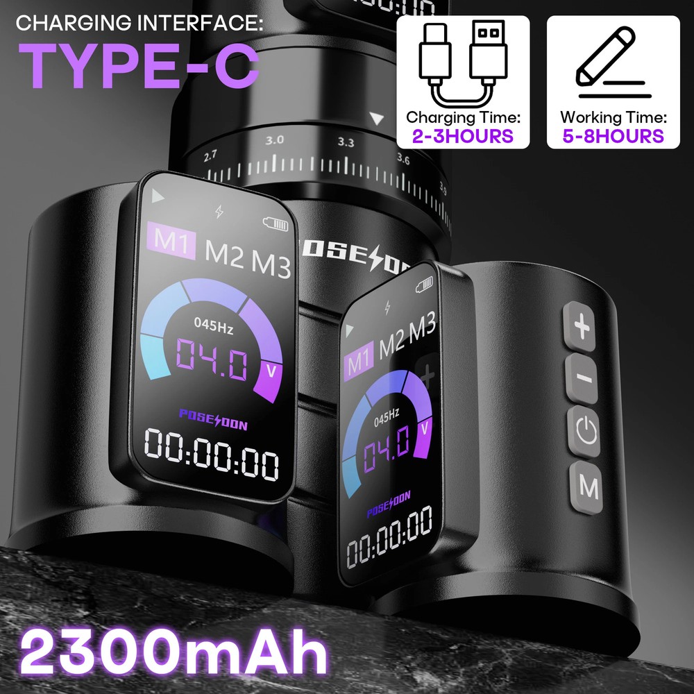 Product ParamentItem:HM144 Material:Aluminum Output Voltage:4-12V Suggest Voltage:6-9V Working frequency:12000RPM Color:Black Used for:Embroidery tattoo Please power on current below 2A Selling point 1.Quiet stability, strong movement motor, needle stability 2.New hand-slip anti-slip design, comfortable pen grip, good hand feeling, not tired for long time use 3.Tattoo machine pen has exquisite workmanship, high hardness and lightweight, unibody 4.There is an aluminum alloy protective layer at the interface of the needle cylinder and the tattoo pen, which is tightly combined and more wear-resistant. 5.Used for Embroidery tattoo Kit Weight:about 1000 Tattoo Machine Kit: Tattoo Pen *1 POSEIDON Tattoo Cartridge Needles *20 5cm Black Bandage*1 Tattoo Clean Pad*4 Gloves*2Pair Tattoo Transfer Paper*4 Tattoo practice leather*1 Tattoo Repair Patch*1 Tattoo ink Cup:medium size*20 /small-sized*20 POSEIDON INK 30ML*1