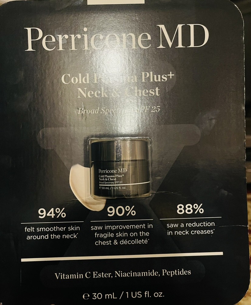 NEW Perricone MD Cold Plasma Plus+ Neck & Chest Broad Spectrum SPF 25 AUTHENTIC*. Factory sealed! Brand New! NEW Perricone MD Cold Plasma Plus+ Neck & Chest Broad Spectrum SPF 25 Reach out for fasssttt shipping options!