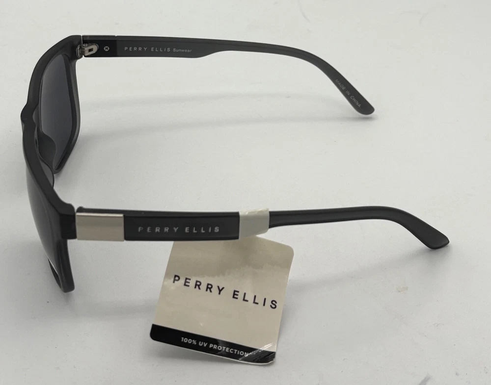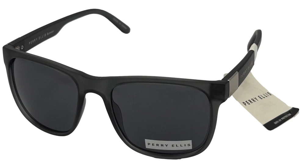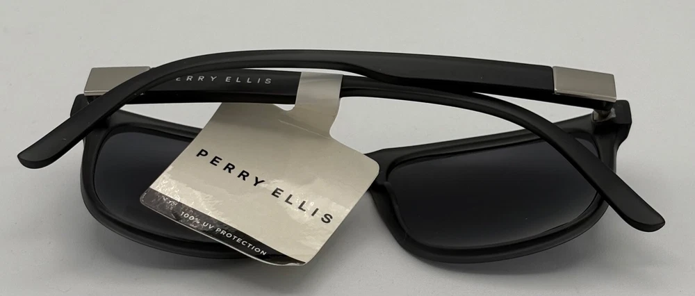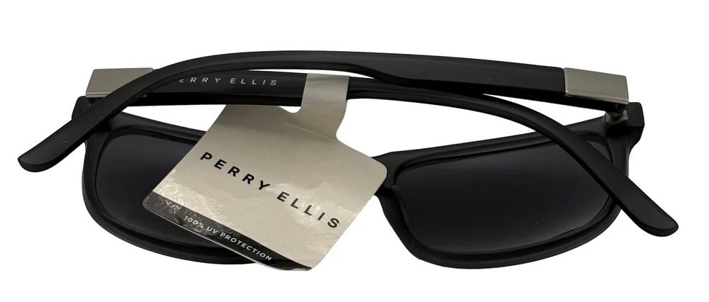 This Perry Ellis Men's Sunglasses feature a sleek Matte Black Plastic frame with Brown Plastic lenses in a Square style. The model PE102 offers 100% UV protection, making it a stylish and functional accessory for sunny days. With a designer theme, these sunglasses are a fashionable choice for men looking to elevate their eyewear collection. The temple length is 145mm, providing a comfortable fit for everyday wear. Size: 51. 18. 145 Height: 50mm Classic style 100% UV Protection Regular Retail: $75.00 You Pay: $24.99, Only Now