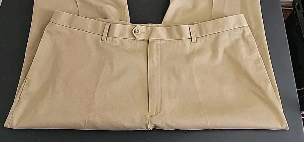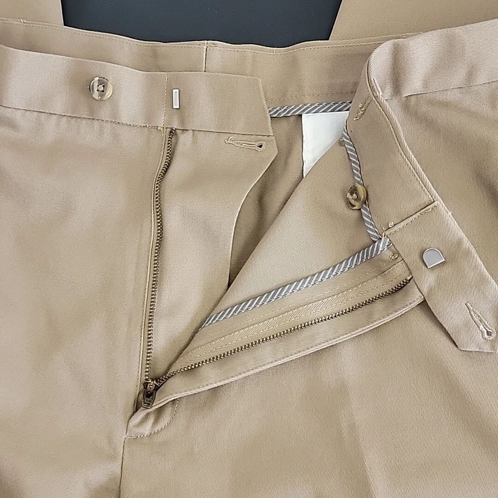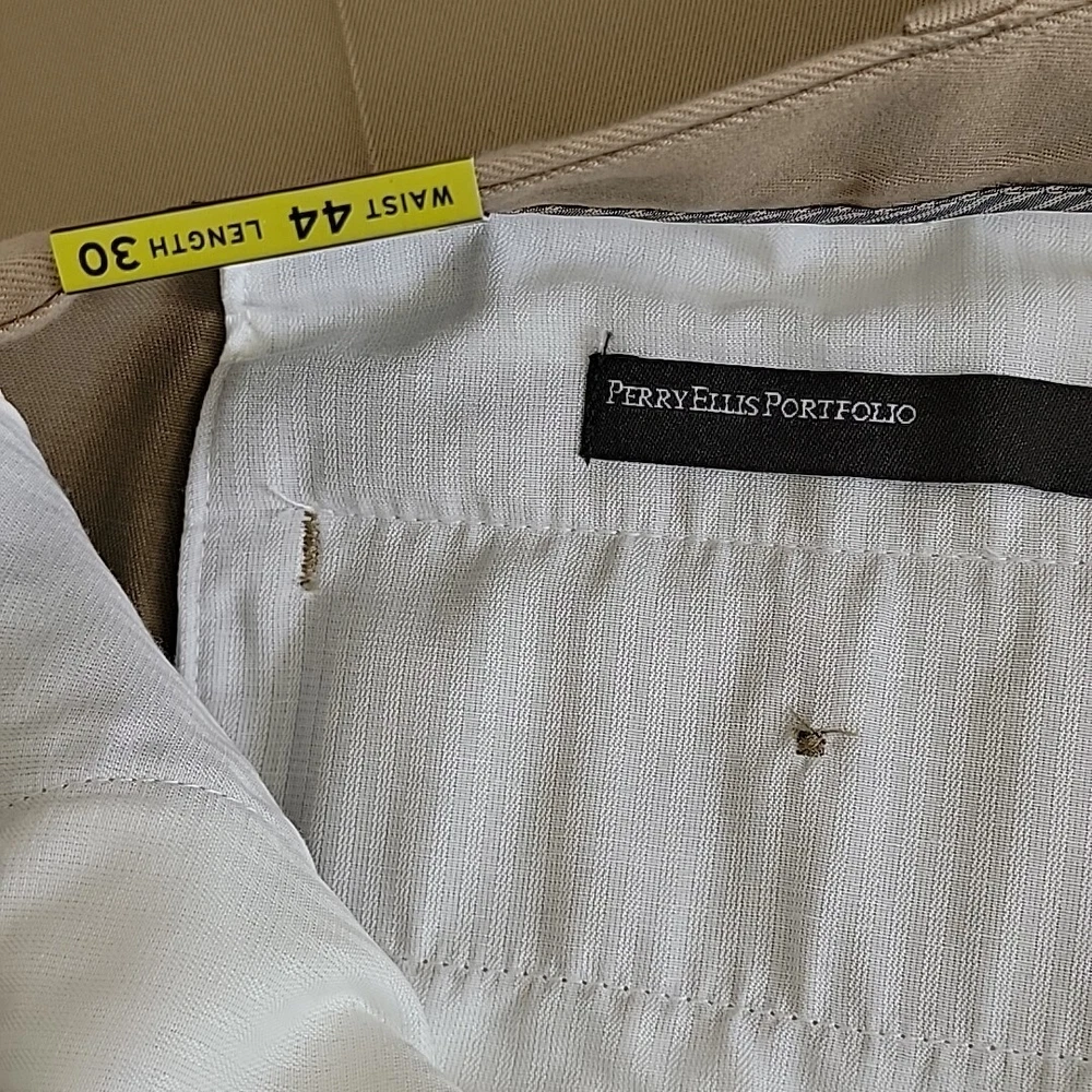 Look sharp and stylish in these Perry Ellis Portfolio Men's Dress Pants. These pants are perfect for any occasion, whether it's for business, workwear, casual or party/cocktail events. Made of comfortable and durable cotton fabric, these pants feature a high rise waist and a straight leg style that will provide you with a classic and timeless look. These pants come in a stylish antelope color(tan) and are available in size 44. They also have convenient features such as slash pockets, no-iron and wrinkle-free materials, and permanent crease. These pants are machine washable and are perfect for easy care. Ideal for any season, these Perry Ellis Portfolio Men's Dress Pants are a must-have addition to your wardrobe.