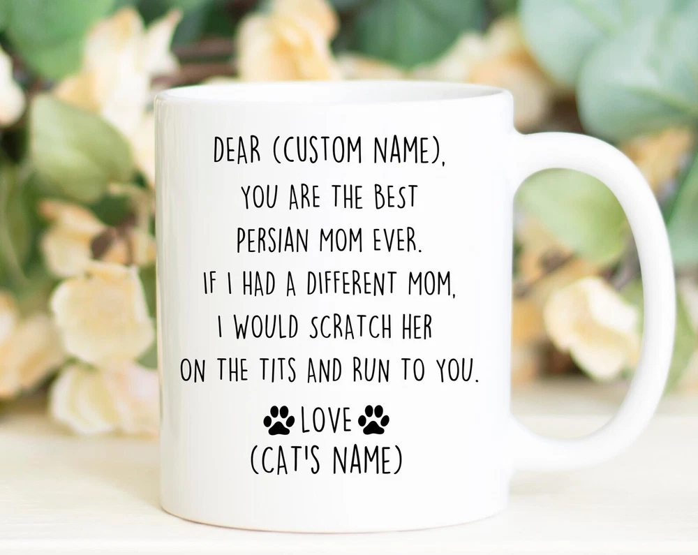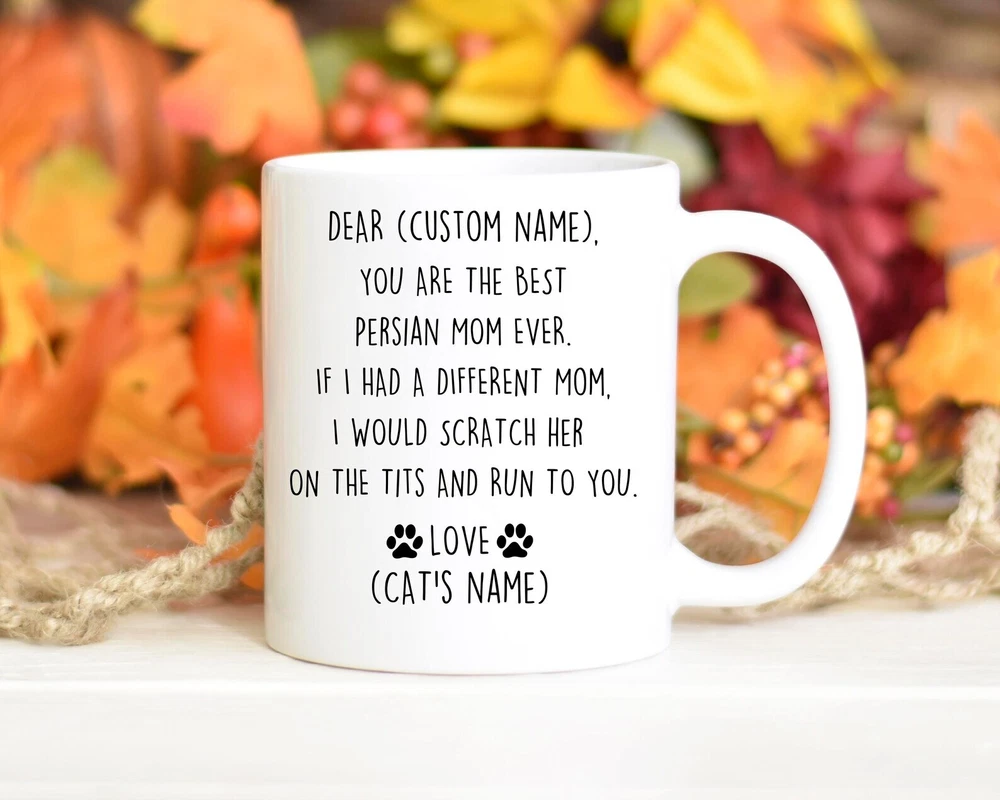 Persian Cat Mom Birthday Gift Persian Cat Mom Christmas Gift Iranian Cat Mom Valentine Gift Persian Cat Mom Appreciation Persian Mom Mug Product Details.. This high quality 11oz. ceramic white mug has a premium hard coat that provides crisp and vibrant color reproduction sure to last for years. Perfect for all hot & cold beverages. The highest quality printing possible is used. It will never fade no matter how many times you wash it. Material: 100% Ceramic. Print both sides. Dishwasher and Microwave Safe. High Gloss + Premium White Finish. Printed in the U.S.A. Personalized & Custom. We support personalized and custom mug to add custom, when placing an order, you can add notes to the "order note" in shipping address section. Also you can contact us directly via message. Shipping Info. Ready to ship in 1 to 2 business days, All products are made-to-order and proudly printed in the United States. Shipped by USPS and DHL, You will receive your order in 5-7 days. Replace & Refund. All products are defective during shipping broken, chipped will be replaced free of charge. You are not satisfied with the product, we will refund 100% money to you. If any other issues arise, please do not hesitate to message, we would be more than happy to assist you.