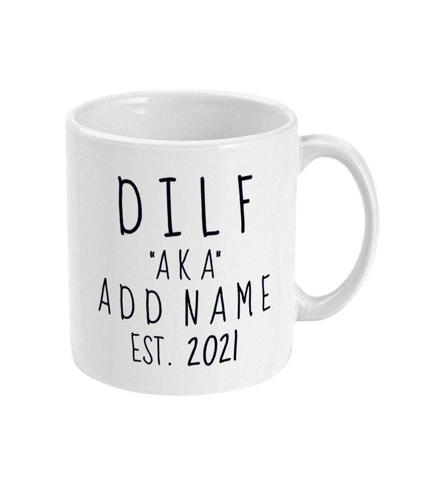 Personalised Dilf Mug New Dilf Gift New Dad Gift Est. 2021 New Baby Father To Be Product Details.. This high quality 11oz. ceramic white mug has a premium hard coat that provides crisp and vibrant color reproduction sure to last for years. Perfect for all hot & cold beverages. The highest quality printing possible is used. It will never fade no matter how many times you wash it. Material: 100% Ceramic. Print both sides. Dishwasher and Microwave Safe. High Gloss + Premium White Finish. Printed in the U.S.A. Personalized & Custom. We support personalized and custom mug to add custom, when placing an order, you can add notes to the "order note" in shipping address section. Also you can contact us directly via message. Shipping Info. Ready to ship in 1 to 2 business days, All products are made-to-order and proudly printed in the United States. Shipped by USPS and DHL, You will receive your order in 5-7 days. Replace & Refund. All products are defective during shipping broken, chipped will be replaced free of charge. You are not satisfied with the product, we will refund 100% money to you. If any other issues arise, please do not hesitate to message, we would be more than happy to assist you.
