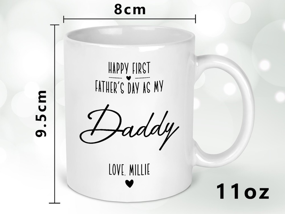 Happy First Fathers Day As My Daddy Personalised Photo Mug Product Details.. This high quality 11oz. ceramic white mug has a premium hard coat that provides crisp and vibrant color reproduction sure to last for years. Perfect for all hot & cold beverages. The highest quality printing possible is used. It will never fade no matter how many times you wash it. Material: 100% Ceramic. Print both sides. Dishwasher and Microwave Safe. High Gloss + Premium White Finish. Printed in the U.S.A. Personalized & Custom. We support personalized and custom mug to add custom, when placing an order, you can add notes to the "order note" in shipping address section. Also you can contact us directly via message. Shipping Info. Ready to ship in 1 to 2 business days, All products are made-to-order and proudly printed in the United States. Shipped by USPS and DHL, You will receive your order in 5-7 days. Replace & Refund. All products are defective during shipping broken, chipped will be replaced free of charge. You are not satisfied with the product, we will refund 100% money to you. If any other issues arise, please do not hesitate to message, we would be more than happy to assist you.