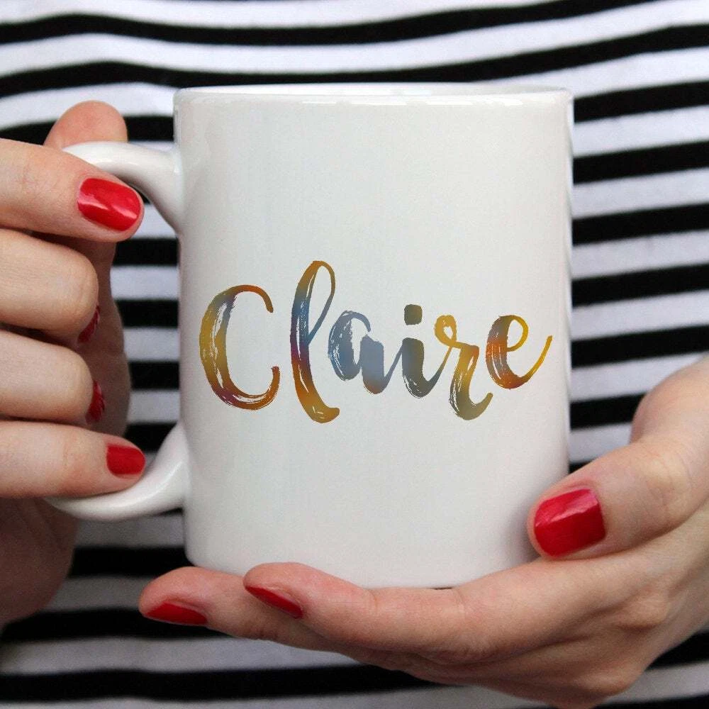 Personalised Name Ceramic Mug Product Details.. This high quality 11oz. ceramic white mug has a premium hard coat that provides crisp and vibrant color reproduction sure to last for years. Perfect for all hot & cold beverages. The highest quality printing possible is used. It will never fade no matter how many times you wash it. Material: 100% Ceramic. Print both sides. Dishwasher and Microwave Safe. High Gloss + Premium White Finish. Printed in the U.S.A. Personalized & Custom. We support personalized and custom mug to add custom, when placing an order, you can add notes to the "order note" in shipping address section. Also you can contact us directly via message. Shipping Info. Ready to ship in 1 to 2 business days, All products are made-to-order and proudly printed in the United States. Shipped by USPS and DHL, You will receive your order in 5-7 days. Replace & Refund. All products are defective during shipping broken, chipped will be replaced free of charge. You are not satisfied with the product, we will refund 100% money to you. If any other issues arise, please do not hesitate to message, we would be more than happy to assist you.