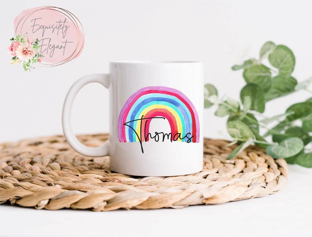 Personalised Rainbow Mug Personalised Cup Rainbow Gift Mug Cute Mug Rainbow Mug Product Details.. This high quality 11oz. ceramic white mug has a premium hard coat that provides crisp and vibrant color reproduction sure to last for years. Perfect for all hot & cold beverages. The highest quality printing possible is used. It will never fade no matter how many times you wash it. Material: 100% Ceramic. Print both sides. Dishwasher and Microwave Safe. High Gloss + Premium White Finish. Printed in the U.S.A. Personalized & Custom. We support personalized and custom mug to add custom, when placing an order, you can add notes to the "order note" in shipping address section. Also you can contact us directly via message. Shipping Info. Ready to ship in 1 to 2 business days, All products are made-to-order and proudly printed in the United States. Shipped by USPS and DHL, You will receive your order in 5-7 days. Replace & Refund. All products are defective during shipping broken, chipped will be replaced free of charge. You are not satisfied with the product, we will refund 100% money to you. If any other issues arise, please do not hesitate to message, we would be more than happy to assist you.