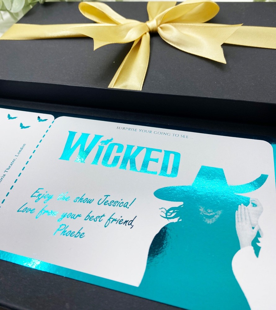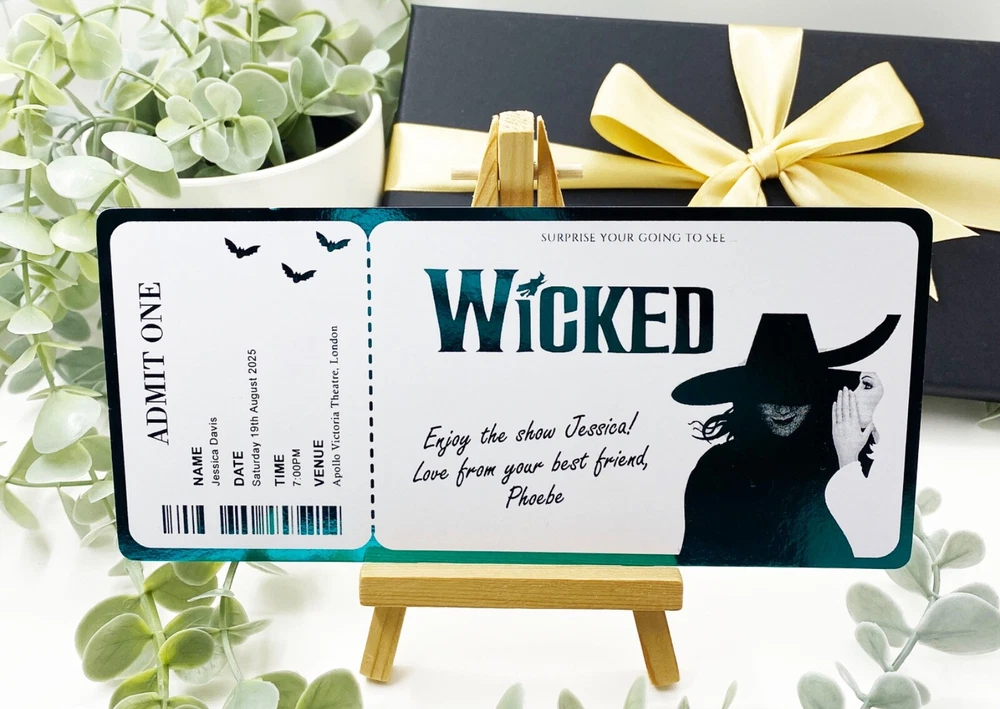 This personalized Wicked theatre gift ticket is absolutely magical! The foiled design is stunning and makes the reveal feel extra special. It’s such a creative way to surprise someone with tickets—they’ll love the keepsake almost as much as the show itself. Perfect for any occasion, the quality is top-notch and the personalization adds a heartfelt touch. A truly unforgettable gift for any theatre fan!