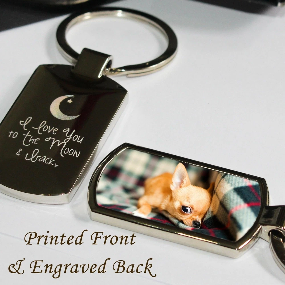 Personalised Gifts : PrintedGiftHouse Shop Other Products How to Order Design Options Personalised Chrome Keyring Photo Printed/Engraved Keepsakes collectable Gift ❤❤ Personalised engraved keyrings -Premium Quality gift at a bargain price. These Keyrings are made with hi quality chrome plated metal . Front of the keyring will be printed with your image , design in HD quality vibrant colour prints , these prints are scratch resistant, water proof and wont fade. You can select the back engraving option ,back of the keyring will be engraved with your art work, text , poem etc. Very unique premium quality product.Long lasting item. Engraved text is more visible in good light with movement and is shown up best when a dark surface is reflected into the keyring. Its not just the text we can engrave please ask ..We are using a high quality precision engraving technology specially designed for jewellers. Steps to Flow Select the shape of the keyring . Select engraving option Yes/ No. Send the images and text to eBay messages , or you can whatsapp to our contact number on the business contact details or you can email to our business email address(on the bottom of the page) but any problems please message us. Wait for the finished product in 1-3 days. If you are happy please leave us a Positive Feedback if not contact us ASAP. Note :Special Designs We can engrave any design art work , Roses , Hearts , Stars , Angels anything you want please ask .... FREE GIFT BOX : Your Key Ring will be sent in a nice little Gift Box . Options to Select ........................................ Keyring Shape We recommend the Rounded Rectangle Keyring Rounded Rectangle : These are the best selling keyrings. They have a lage area for engraving and printing and most populer. Heart Shape : Your image will be printed to the shape of a heart and the engravings too.Small area for engraving and printing.Great for women and lovers. Square : Nice looking shape , again small area for printing and engraving . Good for some images. Rectangle : Again its a rectangle shape and has a small area when comparing with rounded rectangle keyrings.Good for some images. Engraving Option HD engraving -Gives a premium look to the keyring Engraving - Yes We engrave your text , artwork on the back of the keyring. Rounded rectangle keyrings gives more area for engraving so please look at the images before you order you can get a idea.We can engrave any text , Poem , artwork .We have lots of little fancy items that can be engraved to you need so please ask. No- Engraving No engraving on the back.Just the printed keyring. Other Popular Items We have different types items please check our ebay shop How to send the Pictures We need your pictures to personalize them Send the images and text to eBay messages , You can attach them to ebay messages by 5 at a time , or you can whatsapp to our contact number on the business contact details or you can email to our business email address(on the bottom of the page) but any problems please message us. Processing Processing information We wouldn't send you a proof unless you ask for a one to speed up the process. (If a proof needed we will send you a one ASAP and wait for you to reply back) • But in some special occasions we may have to send you a proof just to reduce complications. Postage Postage and delivery Normally post via Royal mail 1st class (Next day delivery but not guaranteed). • Please send required details and images ASAP so that we can finish and deliver your order within 1-3 days(Postage can take up to 1-3 Days) .But we all ways try to post it in the same day . We also have a express delivery option (Special delivery next day guaranteed ) After completed the order After receiving the item we love to hear from you We love to receive your positive feedback after the order is done So please leave us your compliments that will help us to grow and offer you more things in future. Any Problems / Not satisfied ? We are always there if any problems with the order If there is any issues or you don't like the product please, please contact us we will guarantee to resolve your problem ASAP..Remember..Our customer is the KING. How to Send the Pictures : Send the images and text to eBay messages , or you can whatsapp to our contact number on the business contact details or you can email to our business email address(on the bottom of the page) but any problems please message us. Other Items Engraved Keyrings Wallet Cases Any Problems If you have nay problems before or after the order please email us any time .We will always reply to your emails within 24 hrs and guarantee to solve your issue .